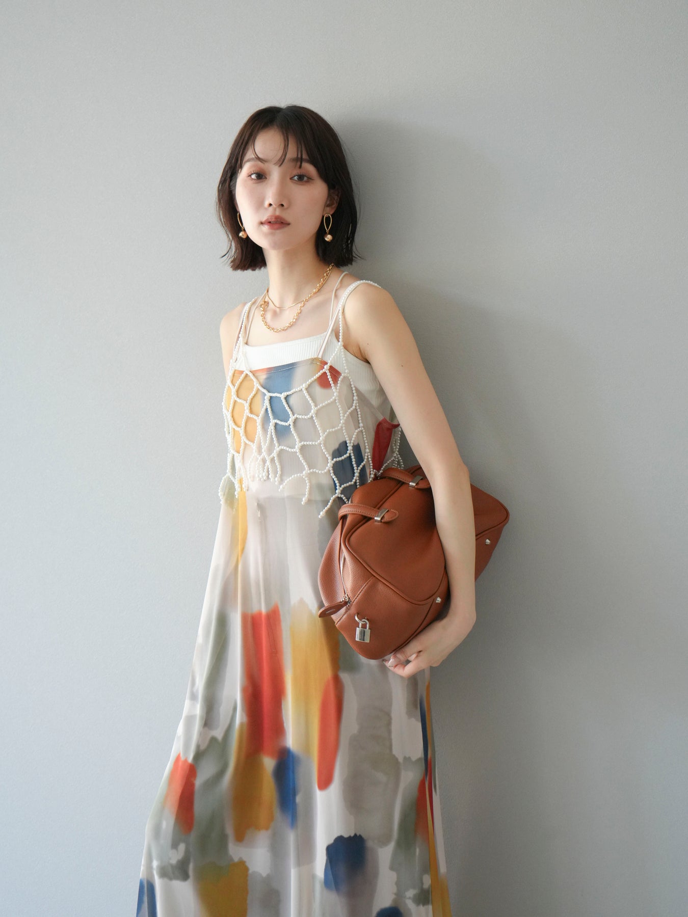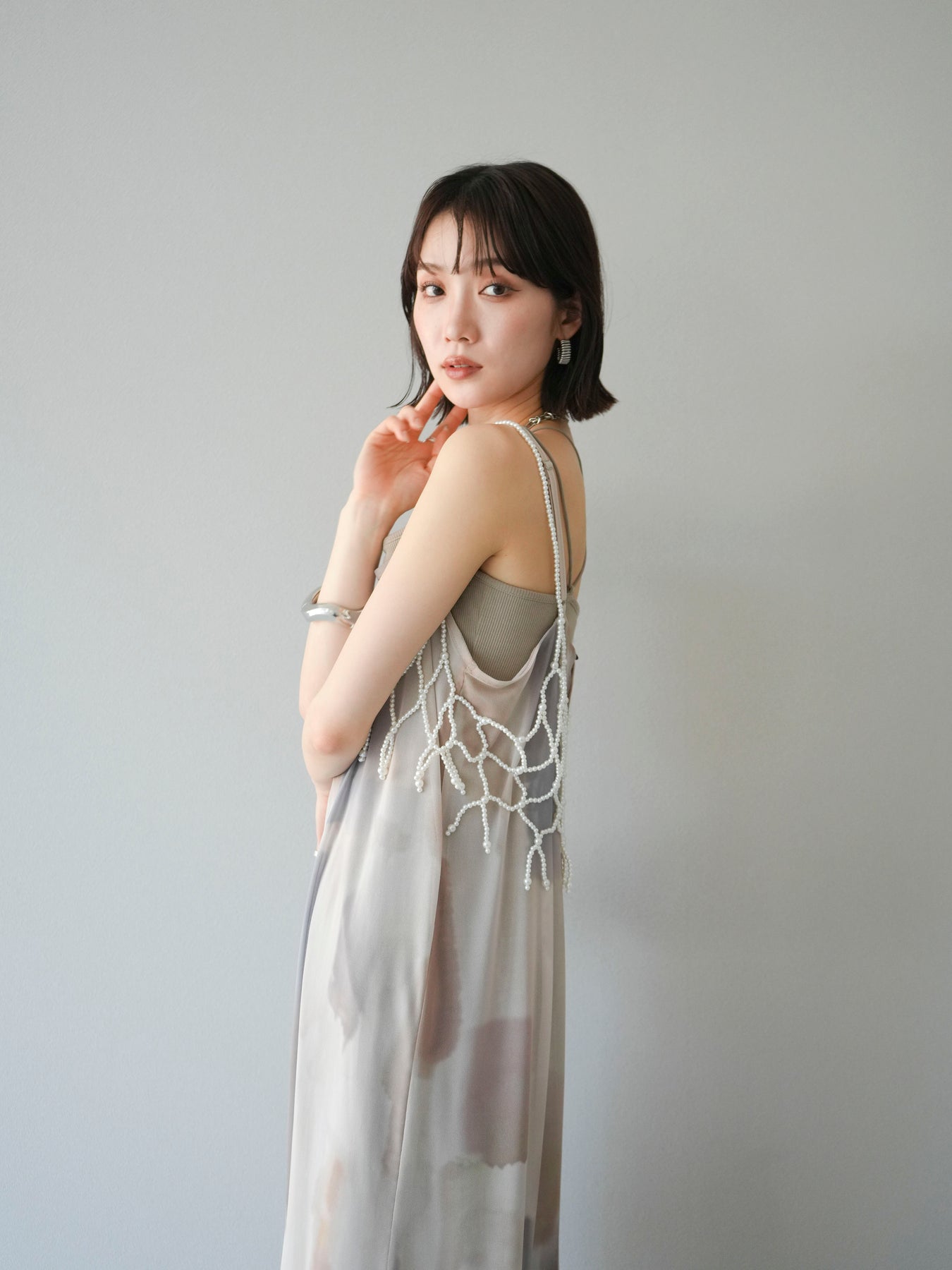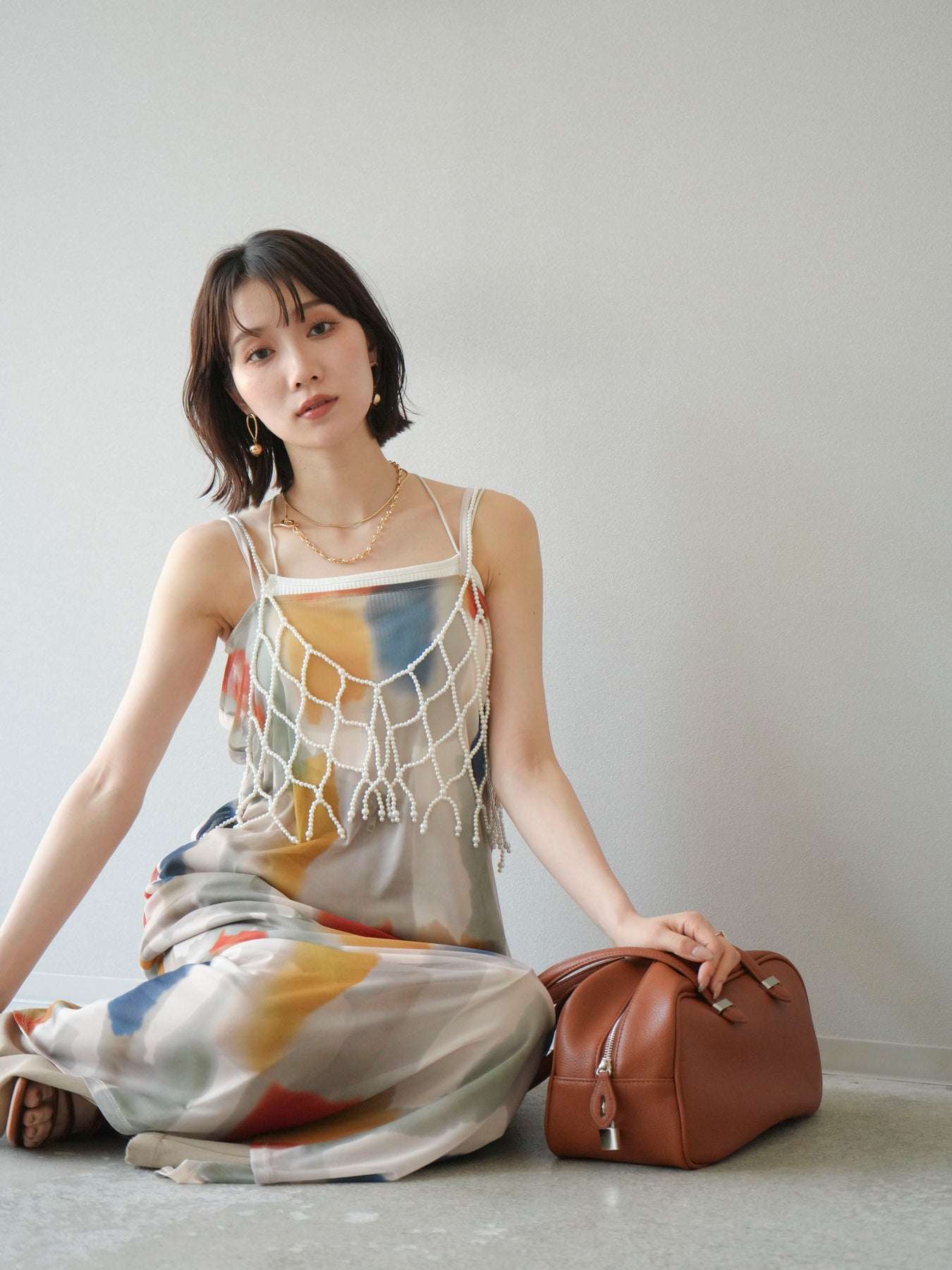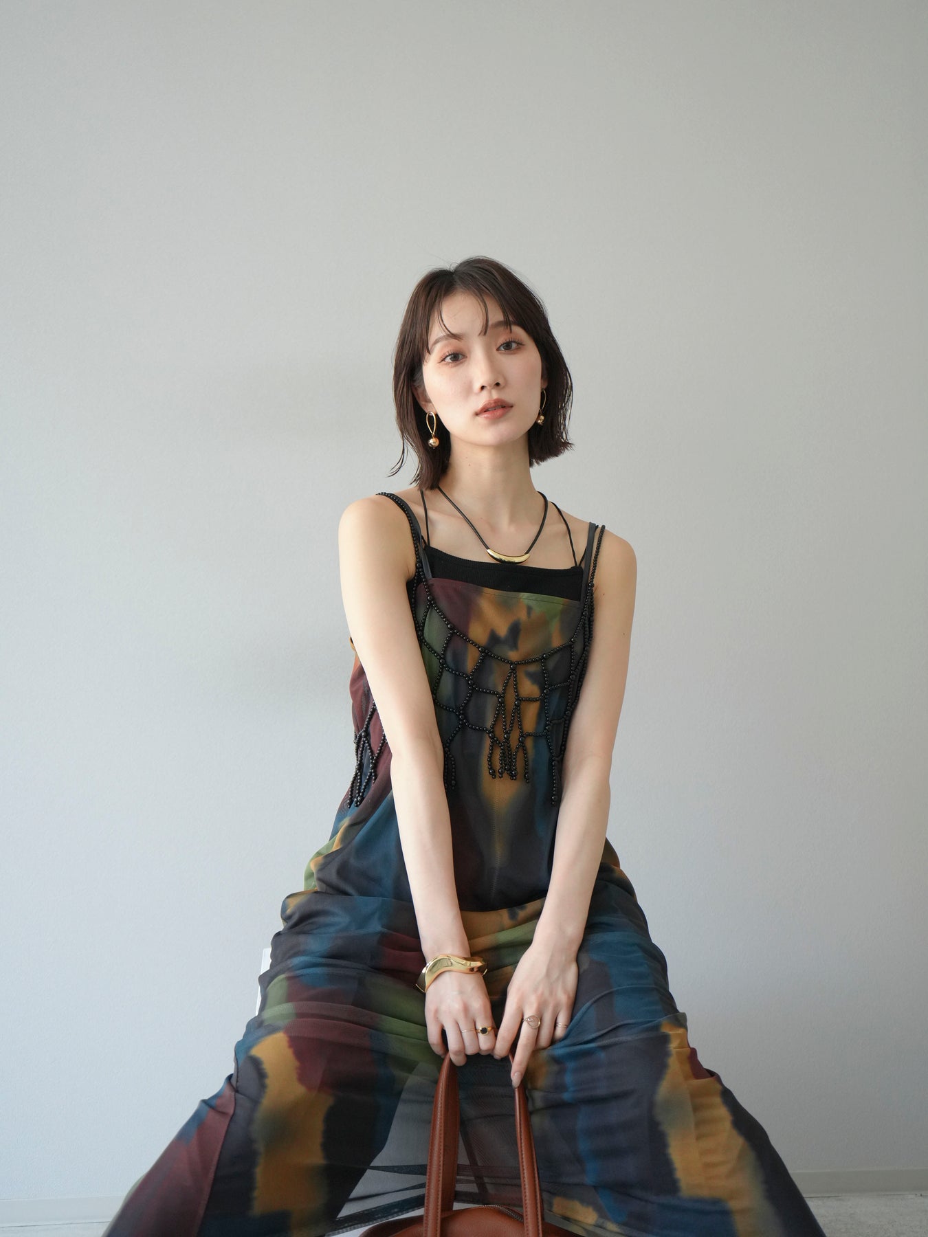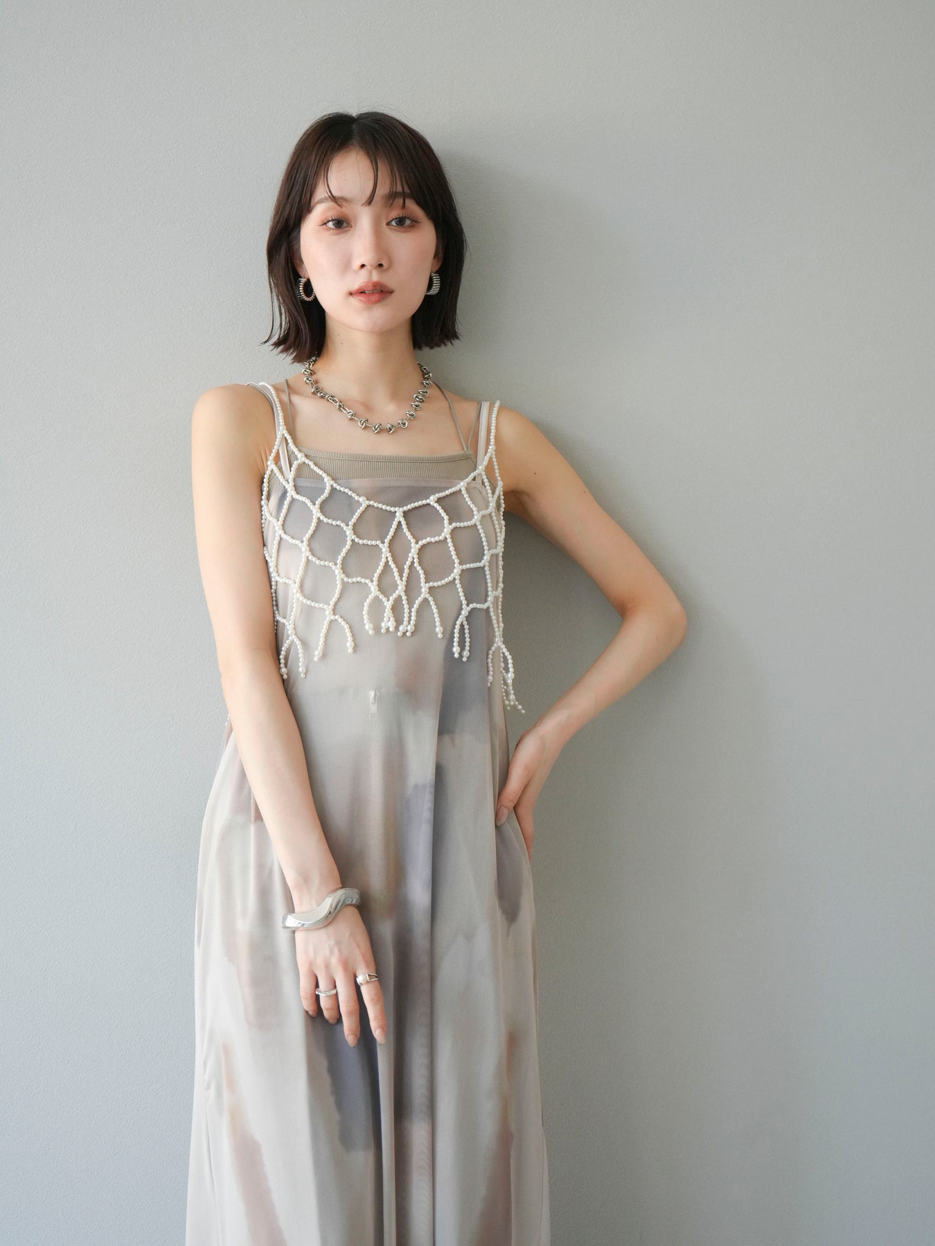 [SET]水彩アートシアーキャミワンピース+ビーズビスチェ(2set)