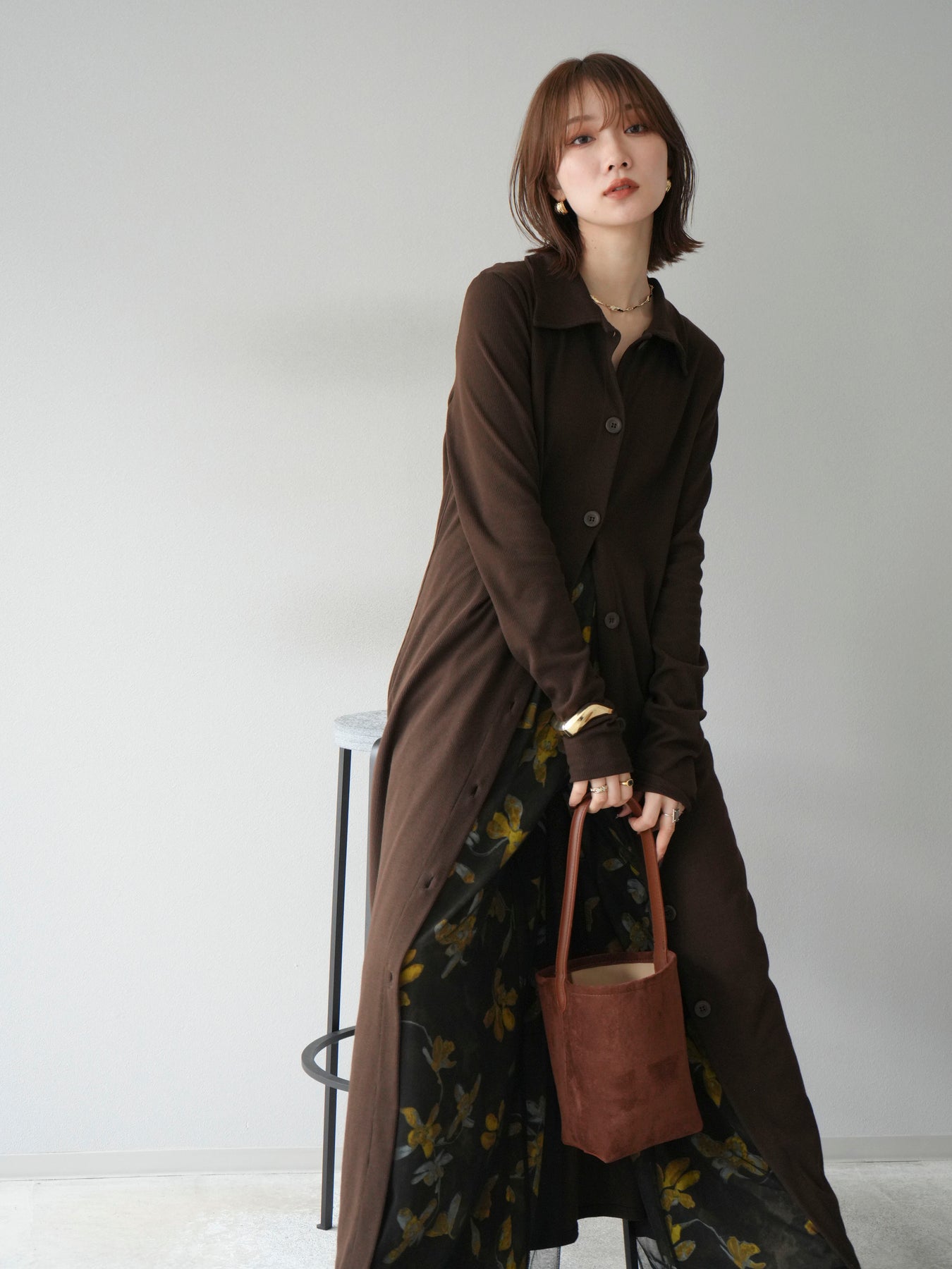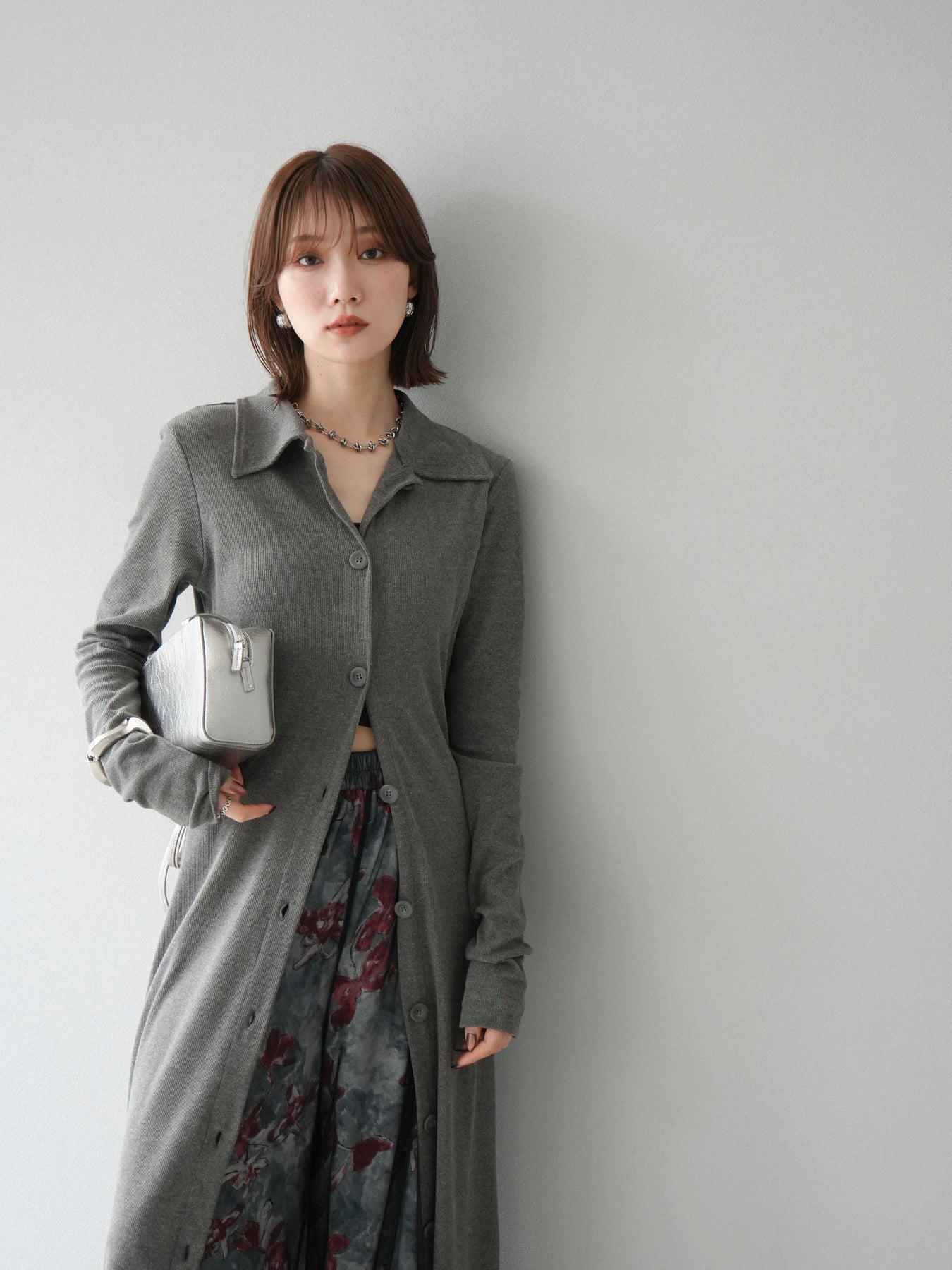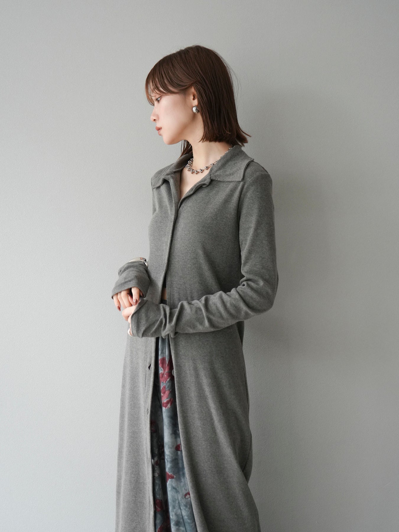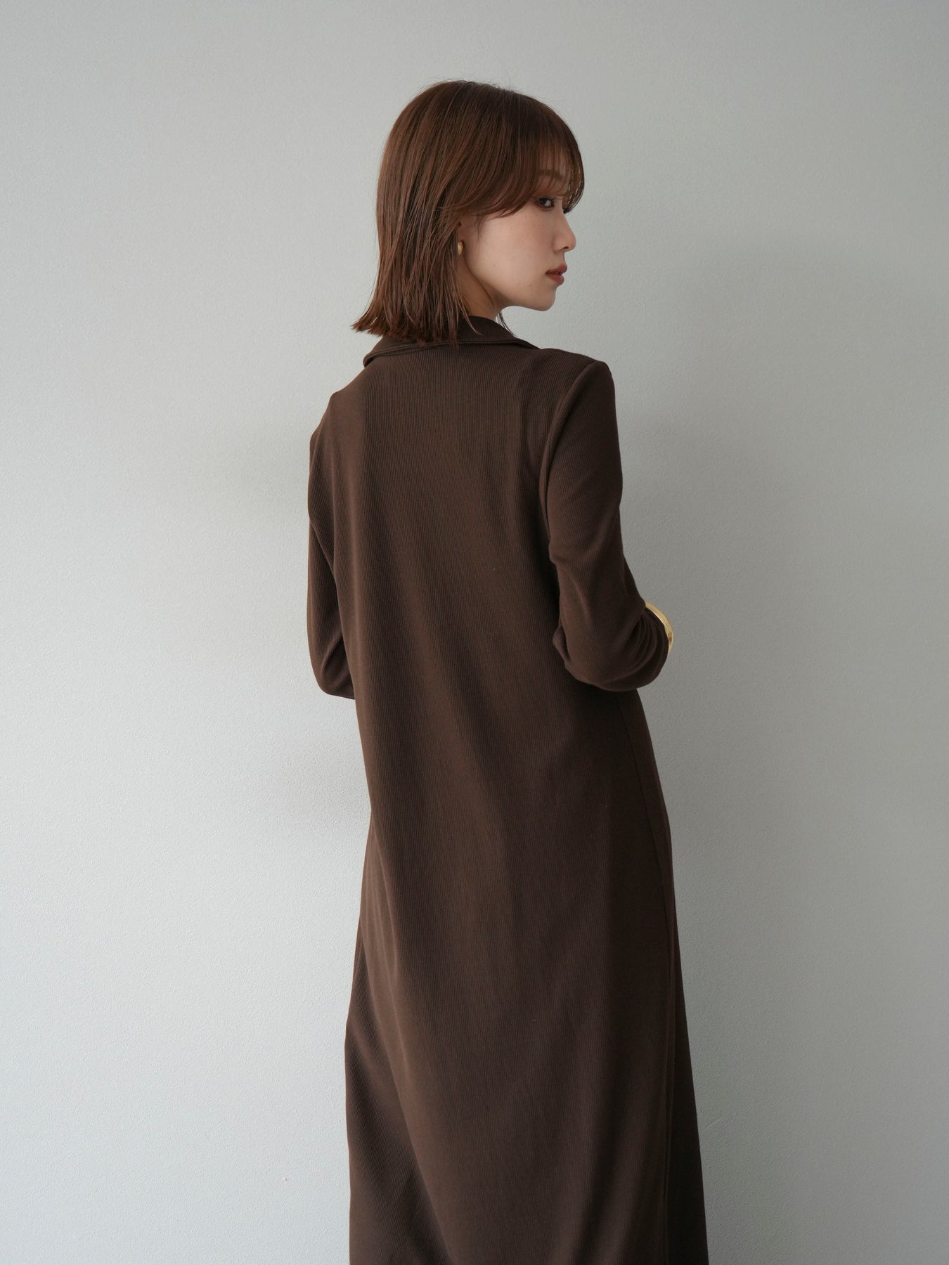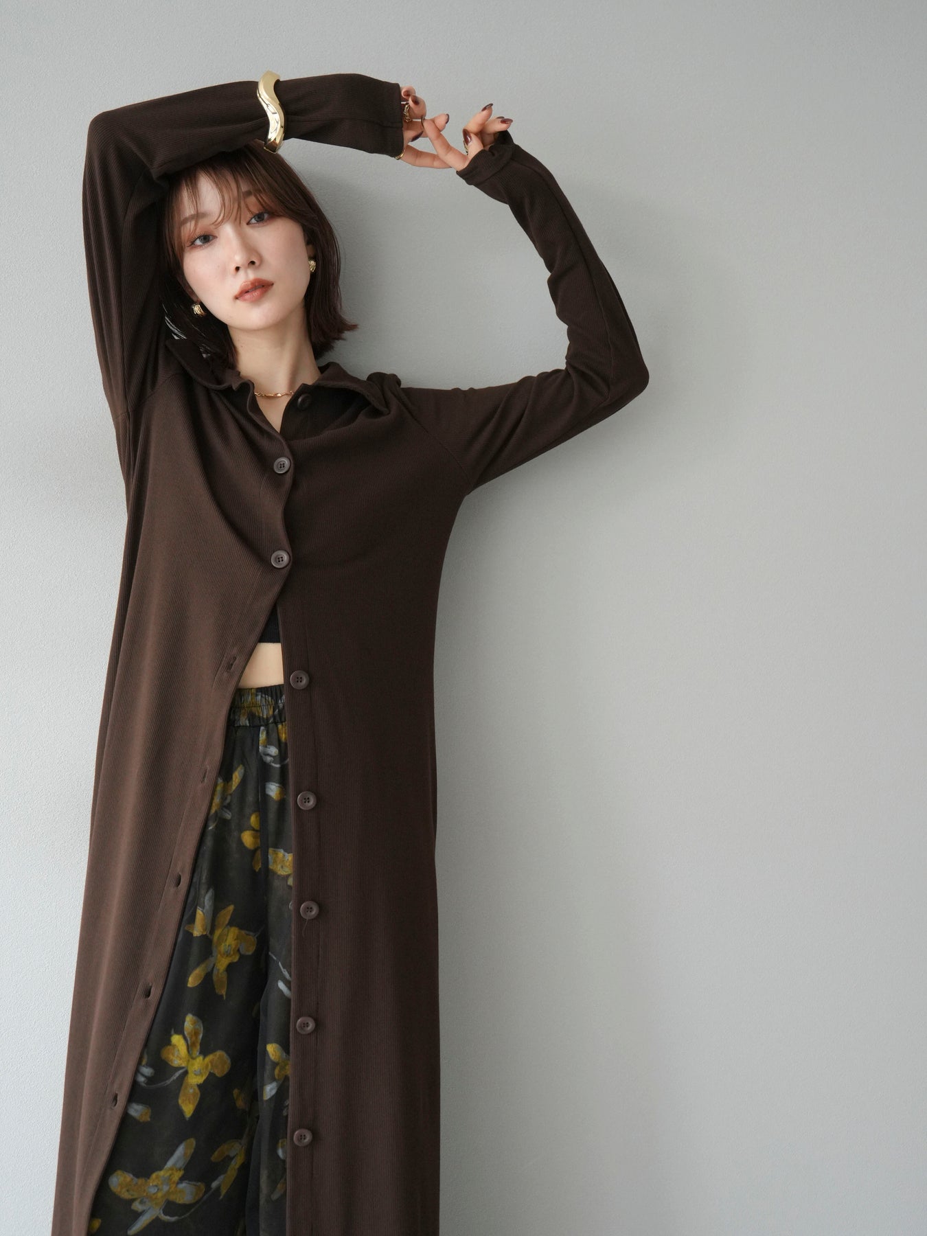 クラシカルな襟付きデザインにフロントボタンをあしらったカットリブ素材のワンピース。縦長シルエットと程よいフィット感で、女性らしいすっきりとした印象に。全ボタン開閉可能で羽織りとしても着回せる2WAY仕様。1枚での着用はもちろん、パンツとのレイヤードにも活躍。ロングシーズン使える汎用性の高い一着。