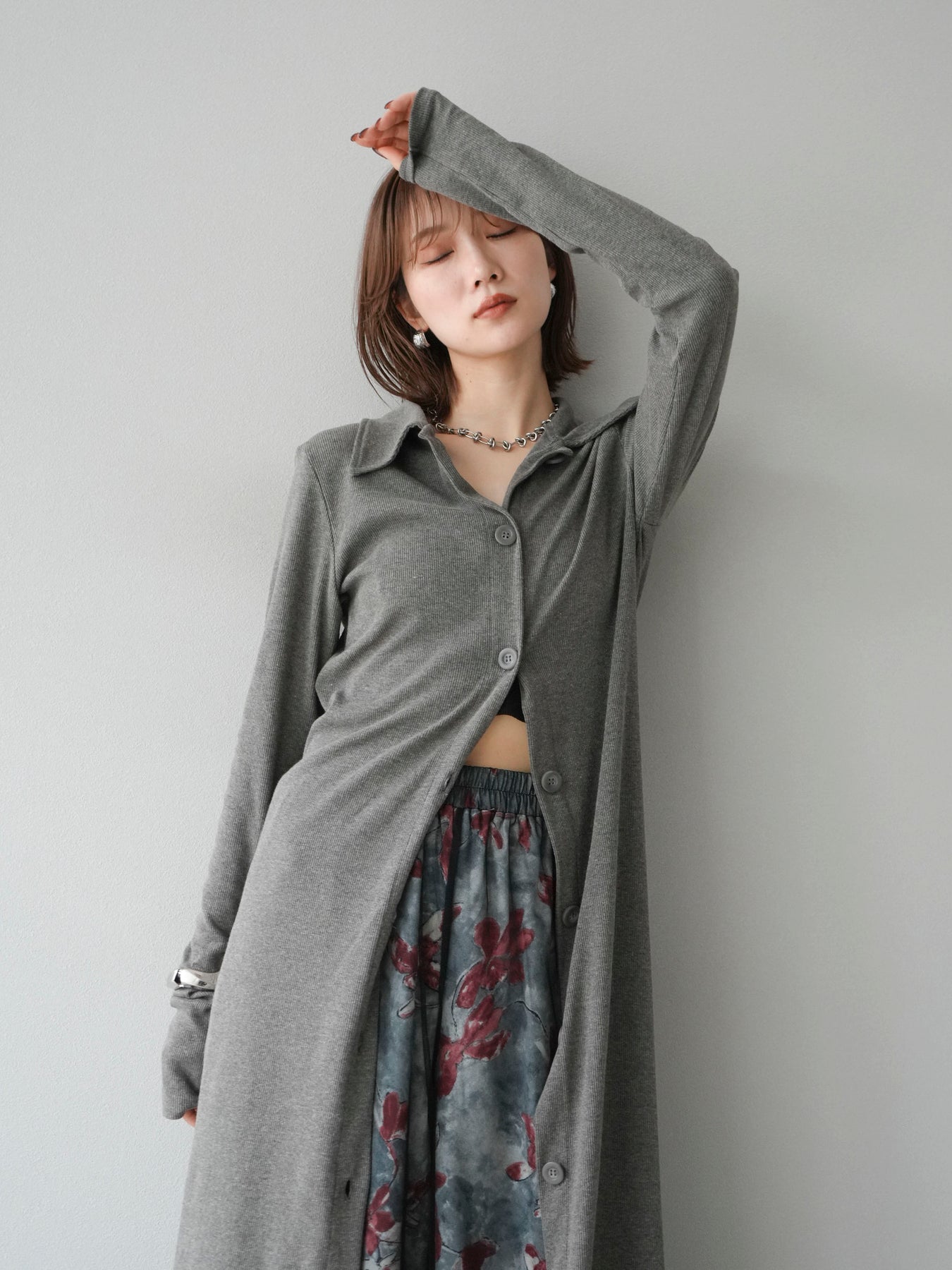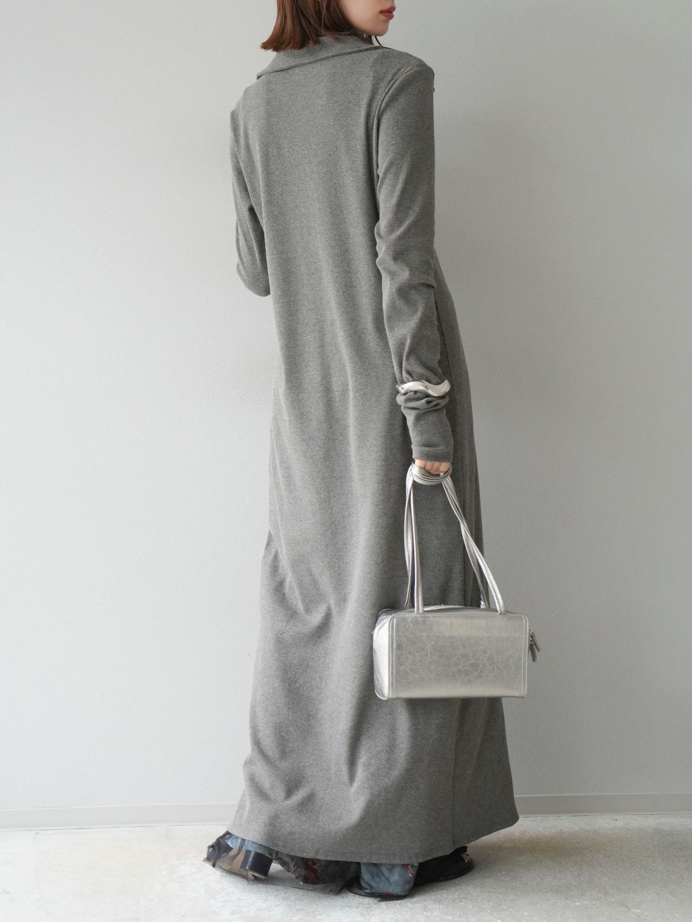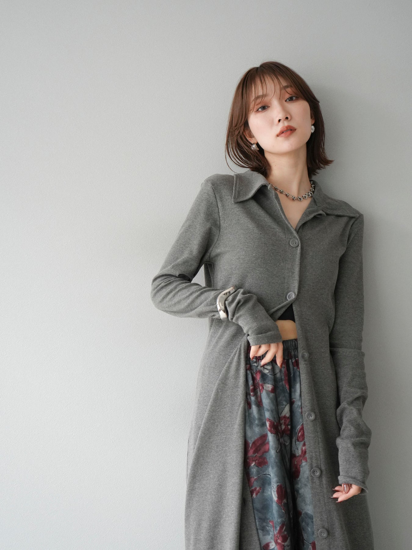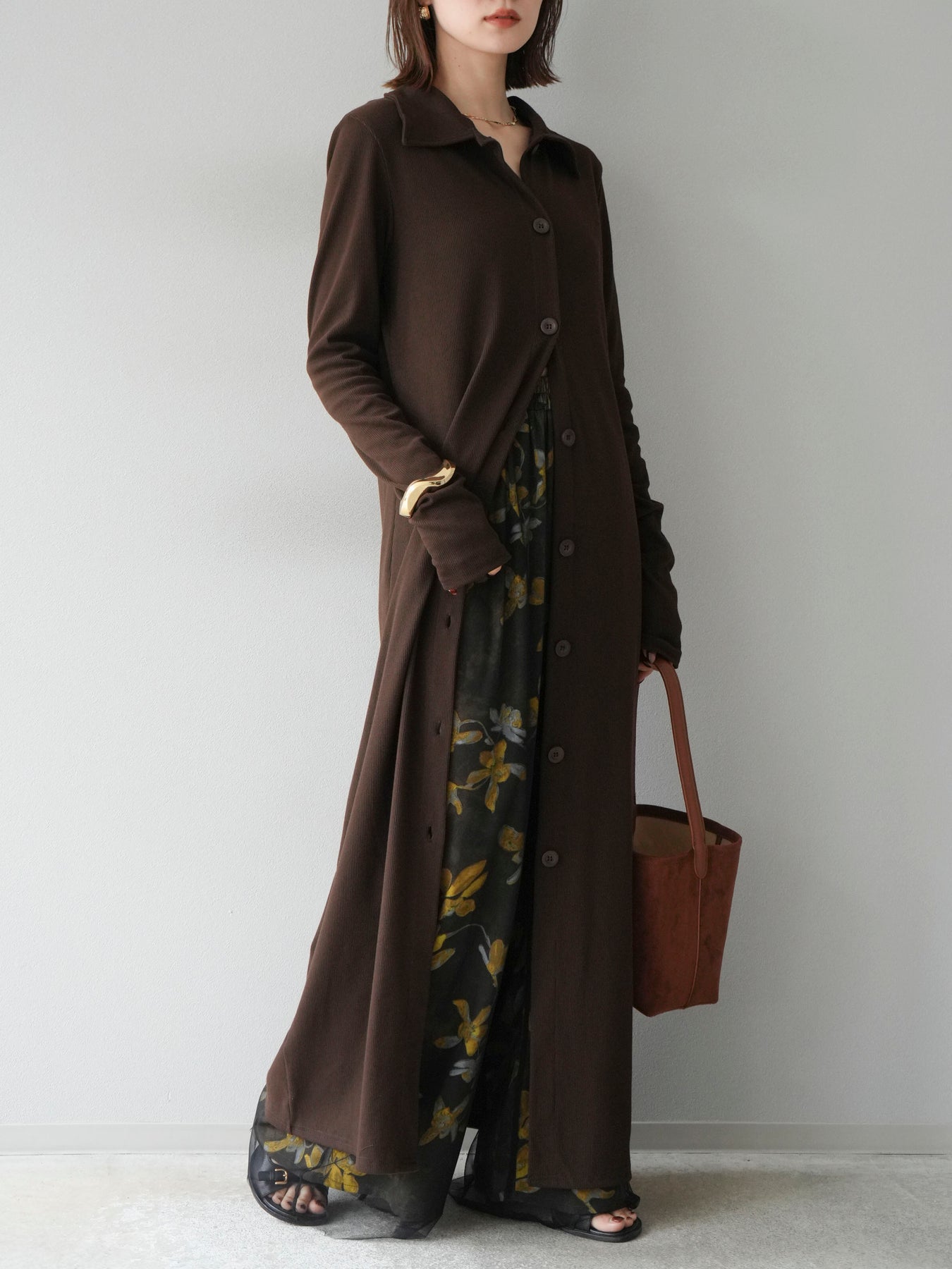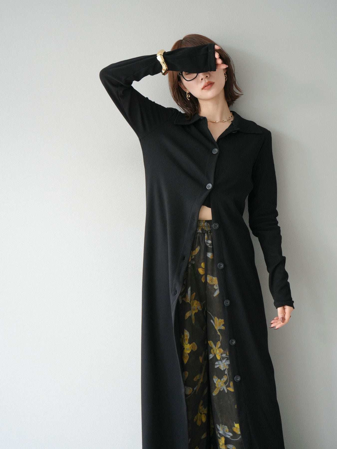 クラシカルな襟付きデザインにフロントボタンをあしらったカットリブ素材のワンピース。縦長シルエットと程よいフィット感で、女性らしいすっきりとした印象に。全ボタン開閉可能で羽織りとしても着回せる2WAY仕様。1枚での着用はもちろん、パンツとのレイヤードにも活躍。ロングシーズン使える汎用性の高い一着。