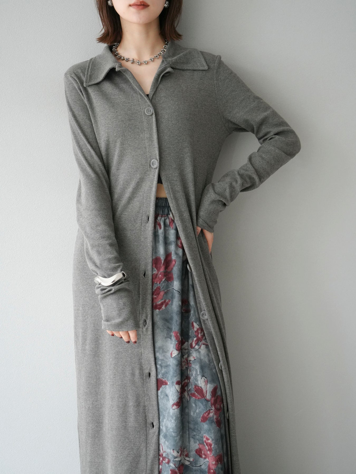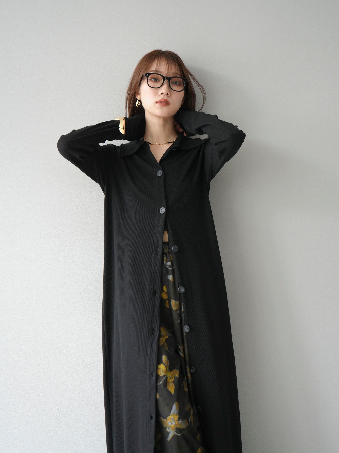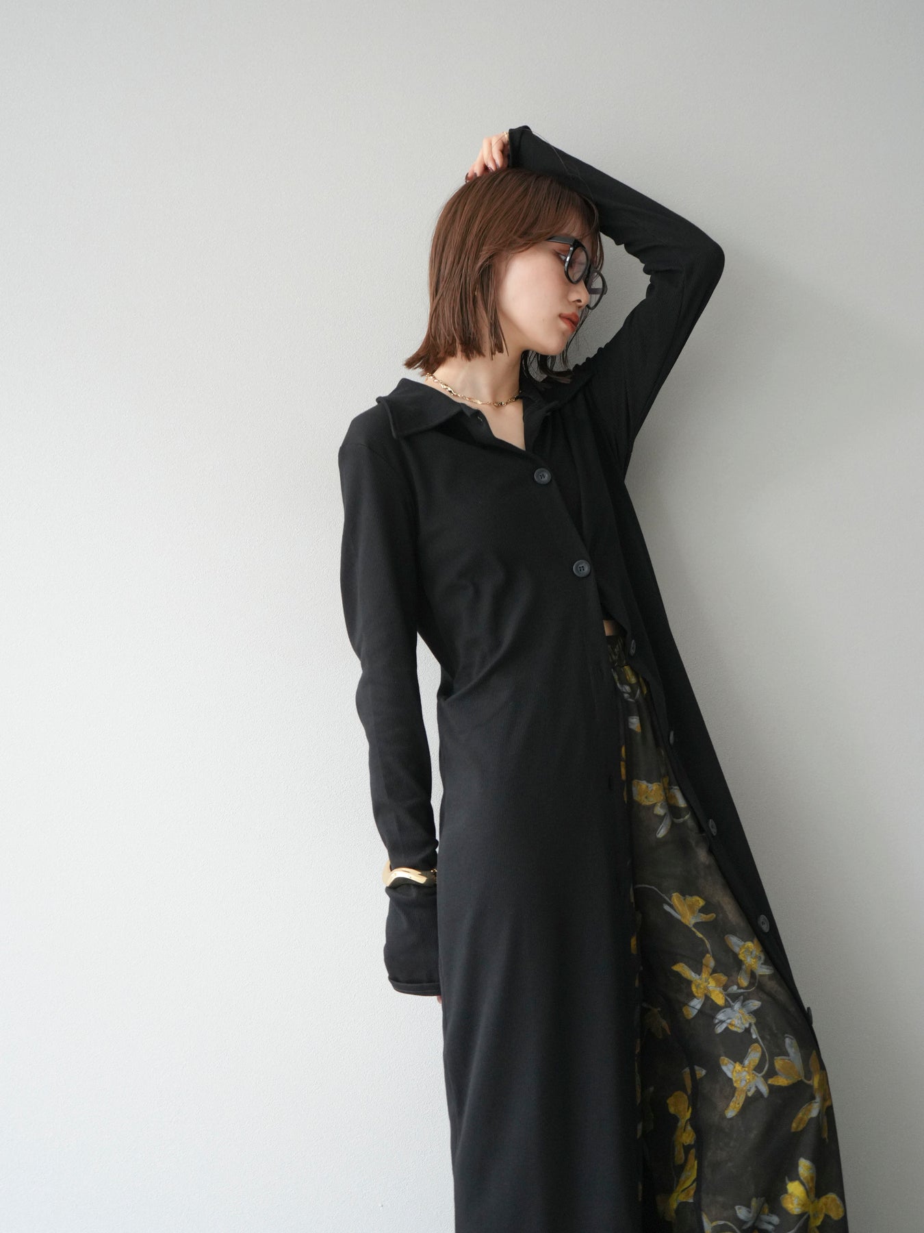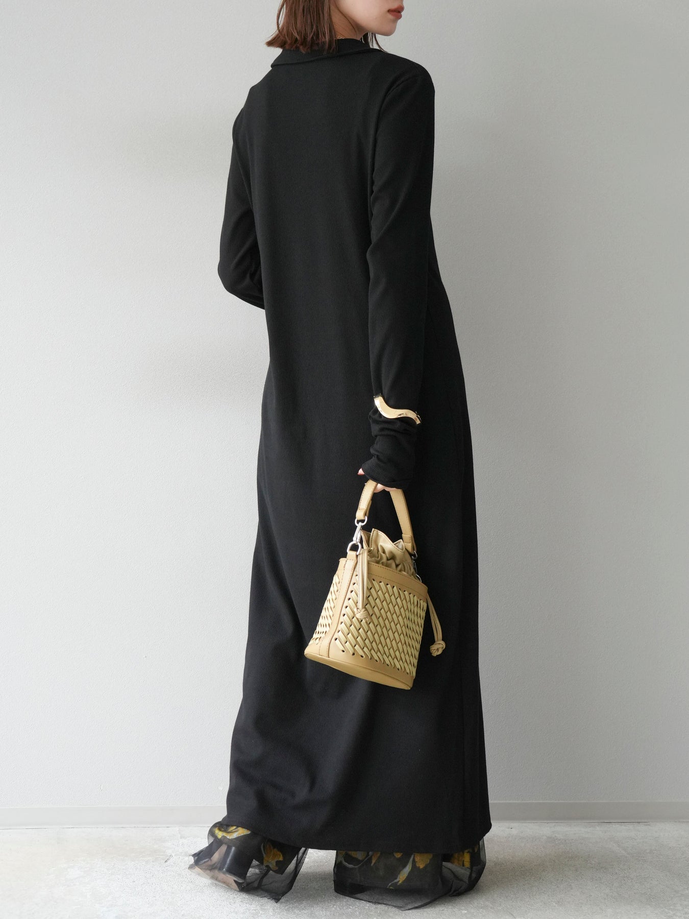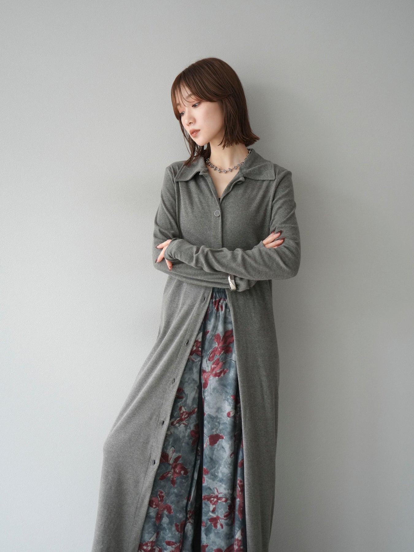 クラシカルな襟付きデザインにフロントボタンをあしらったカットリブ素材のワンピース。縦長シルエットと程よいフィット感で、女性らしいすっきりとした印象に。全ボタン開閉可能で羽織りとしても着回せる2WAY仕様。1枚での着用はもちろん、パンツとのレイヤードにも活躍。ロングシーズン使える汎用性の高い一着。