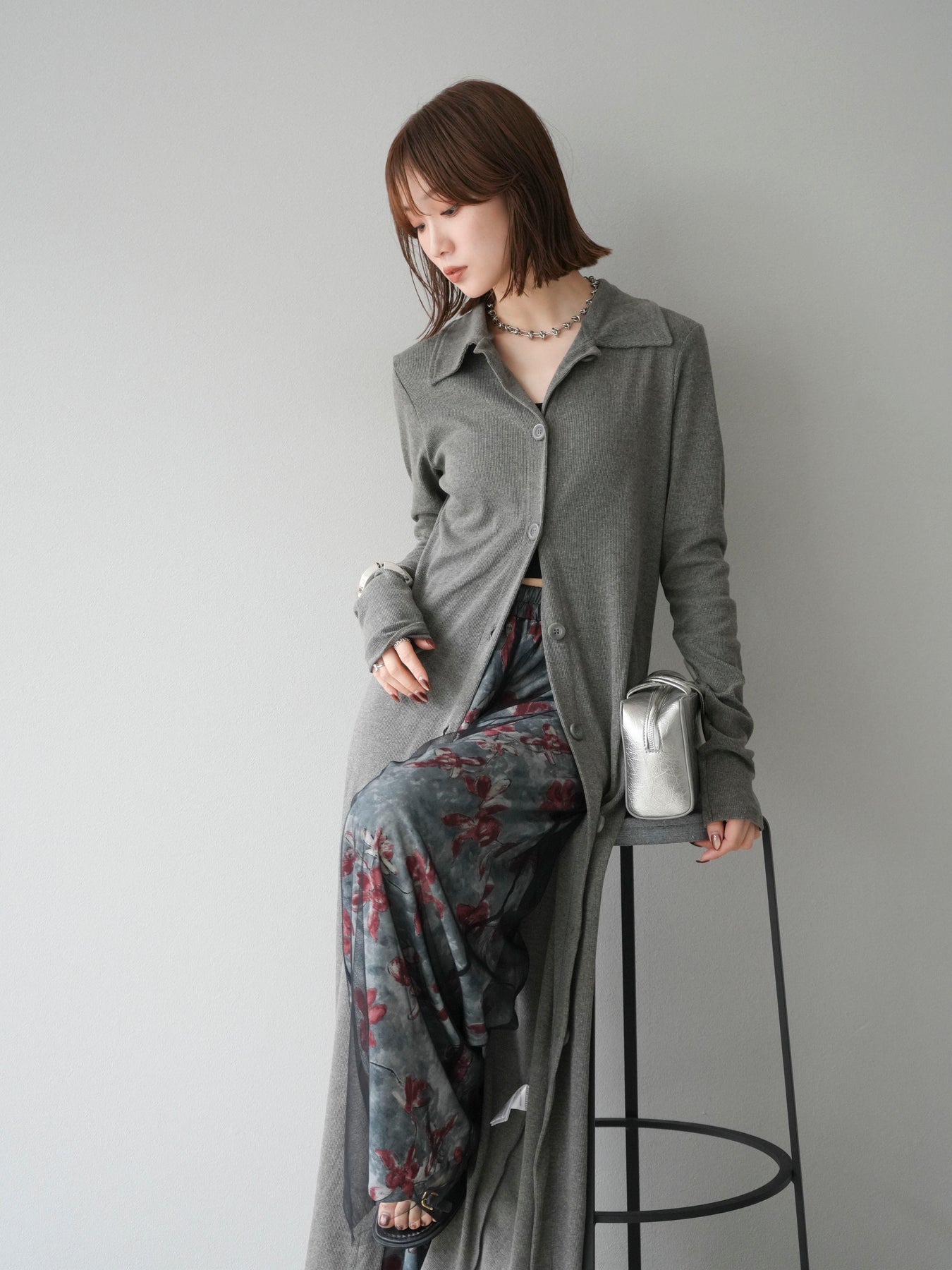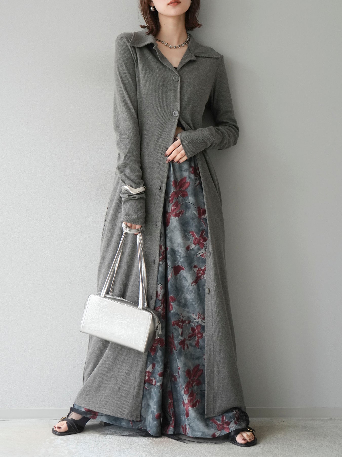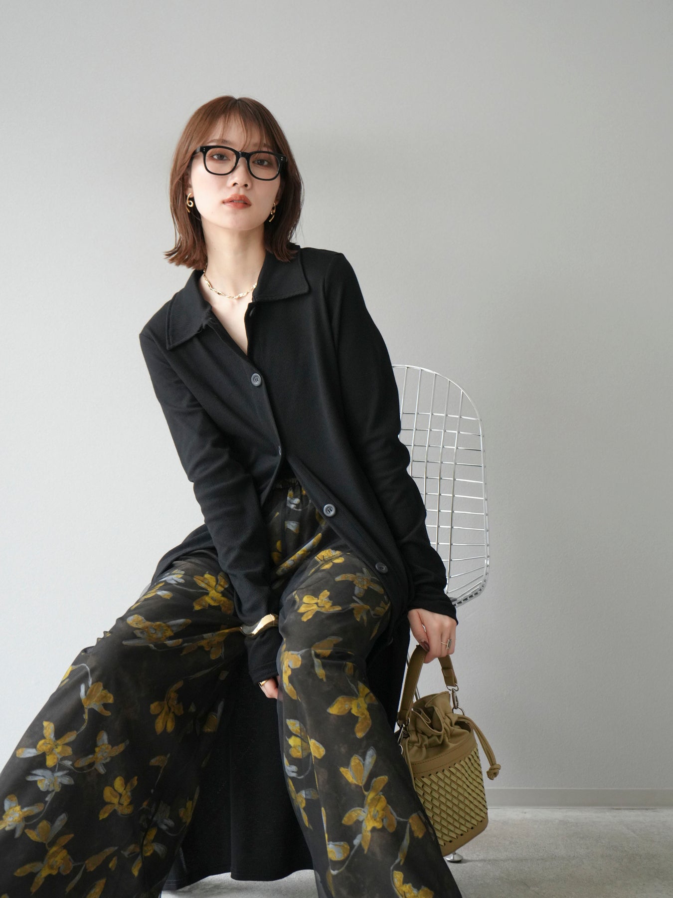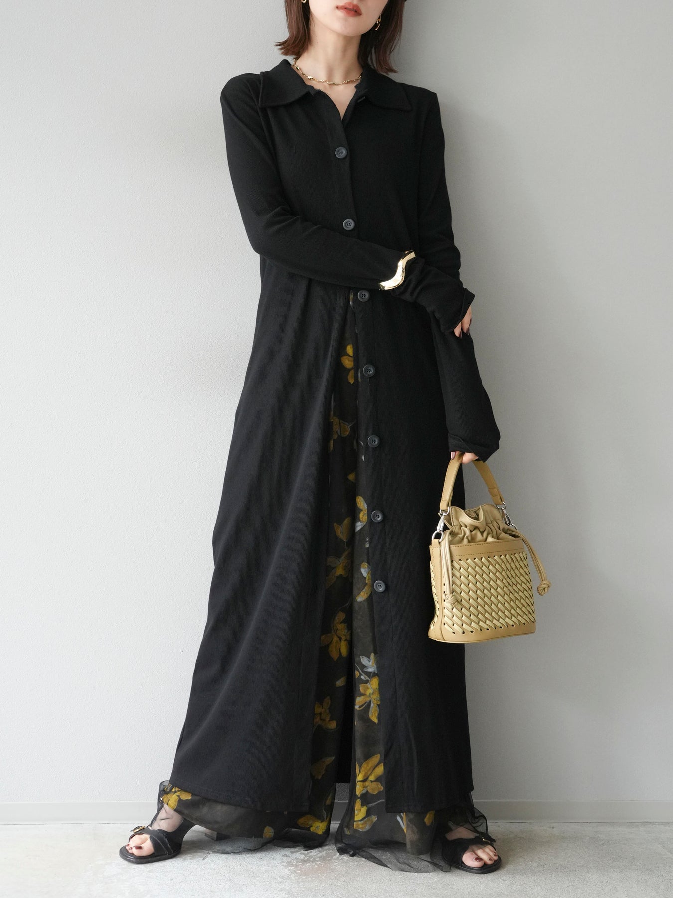 [SET]襟付きカットリブボタンワンピース+フラワープリントチュールレイヤードパンツ(2set)