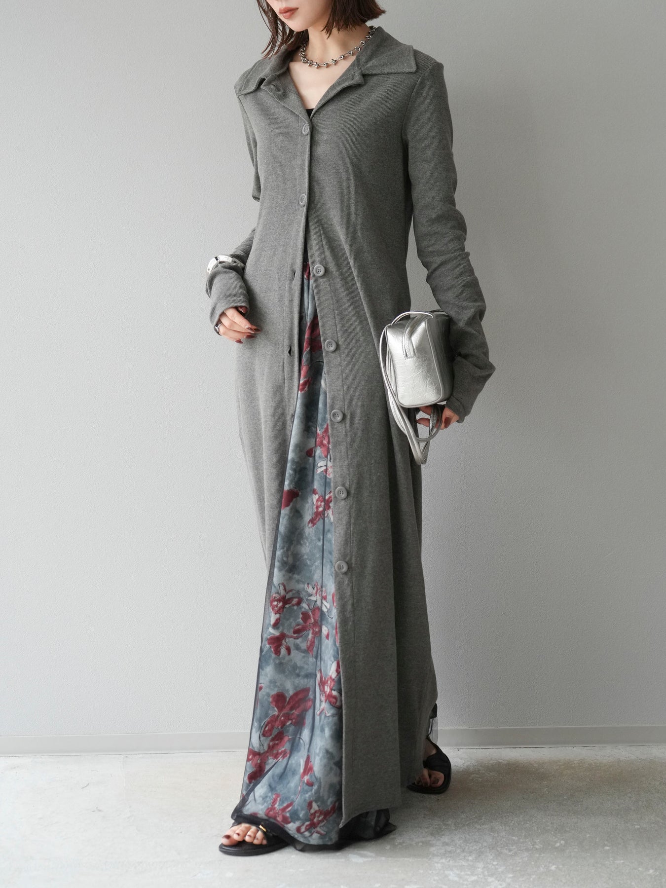 肩幅41cm バスト92cm ウエスト86cm アームホール42cm 袖丈69cm 袖口20cm 着丈132cm 裏地なし 透け感なし 伸縮性あり ポケットなし フロントボタンあり