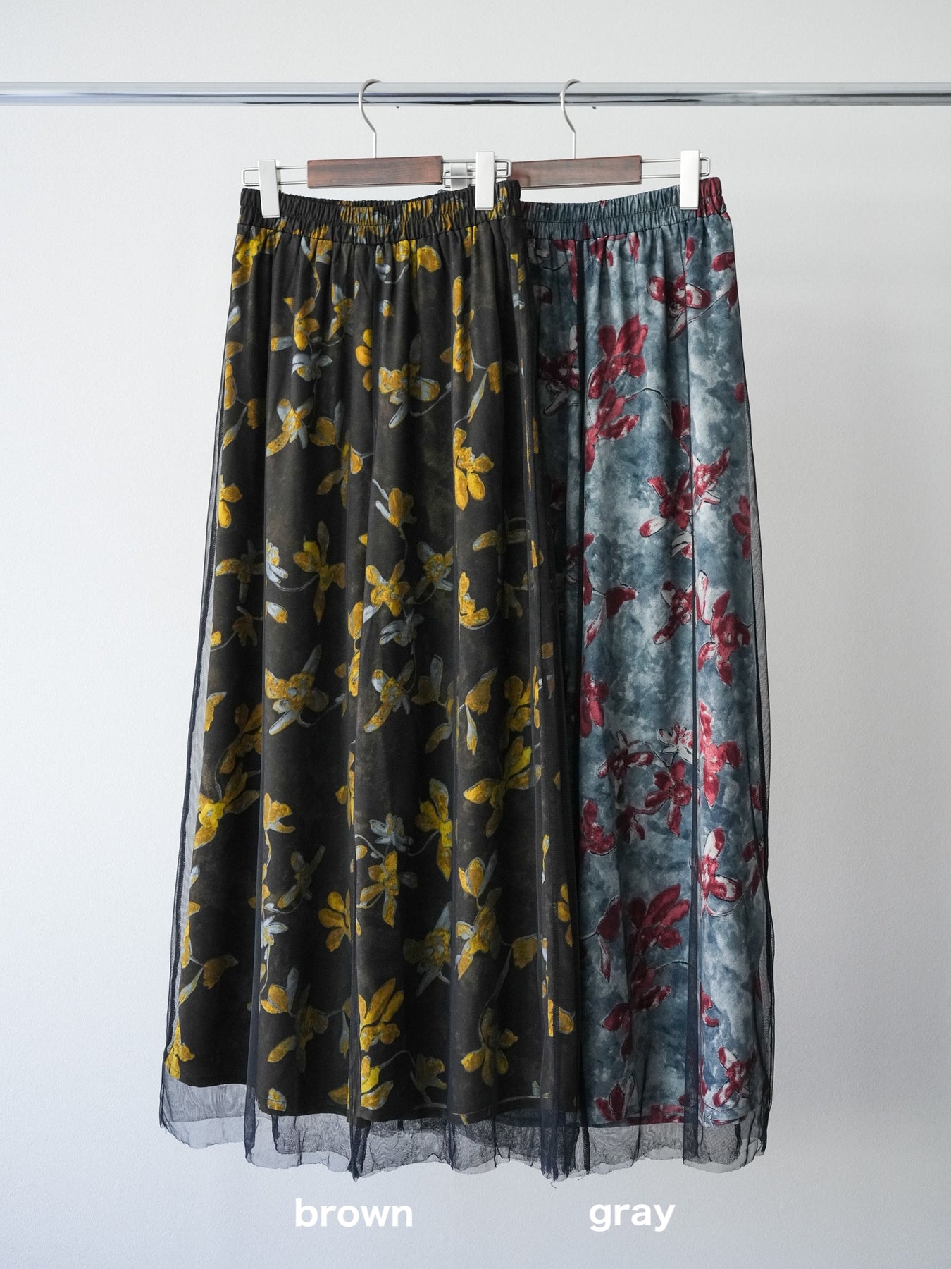 ◆ [予約]フラワープリントチュールレイヤードパンツ