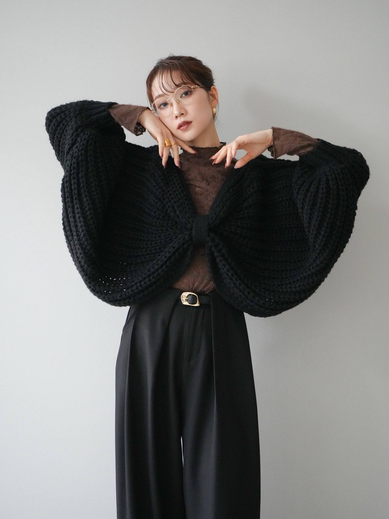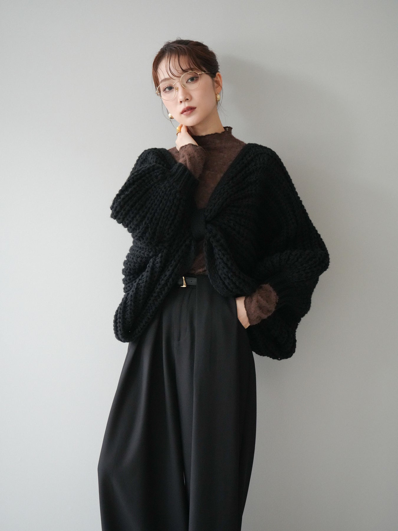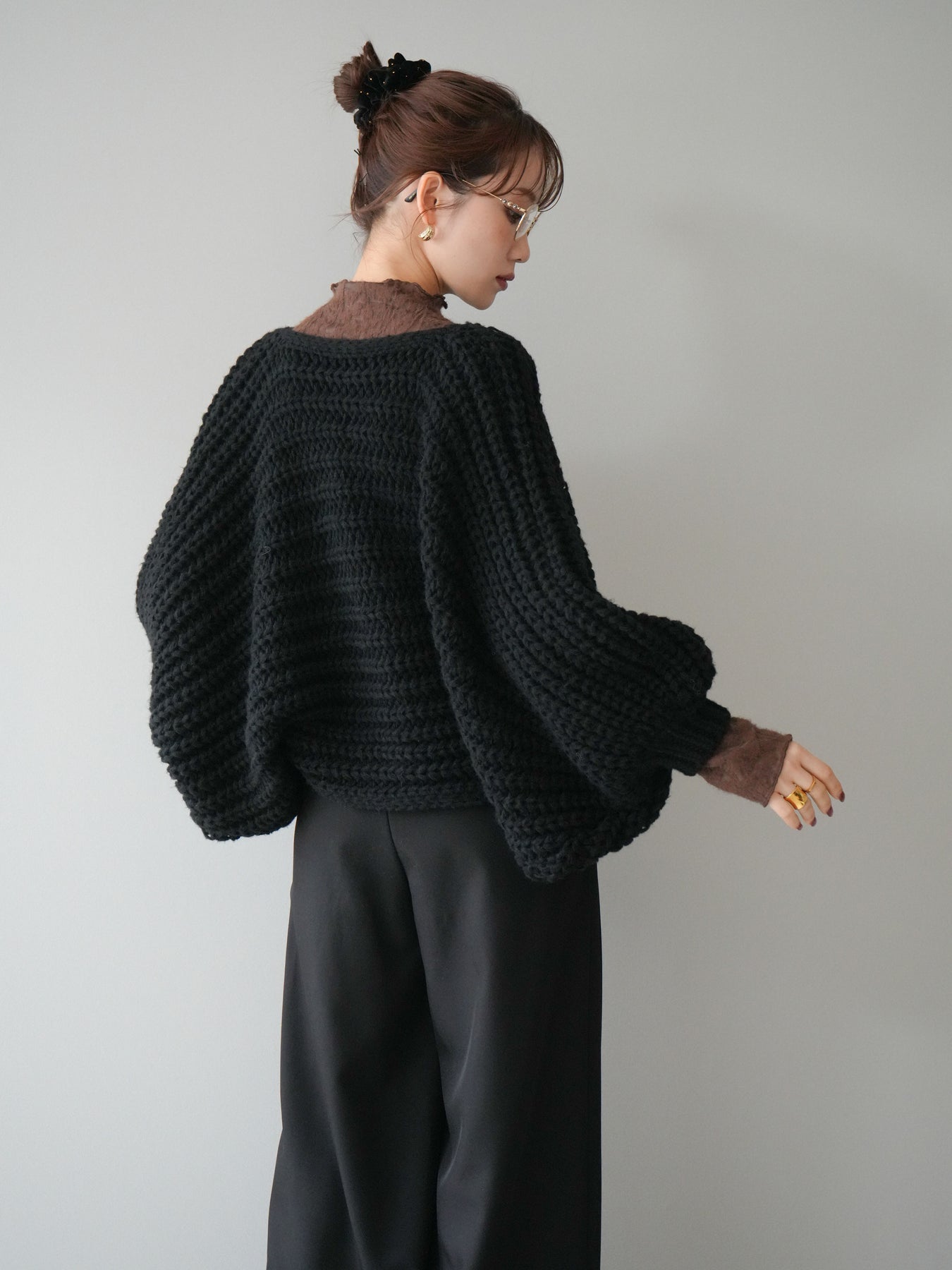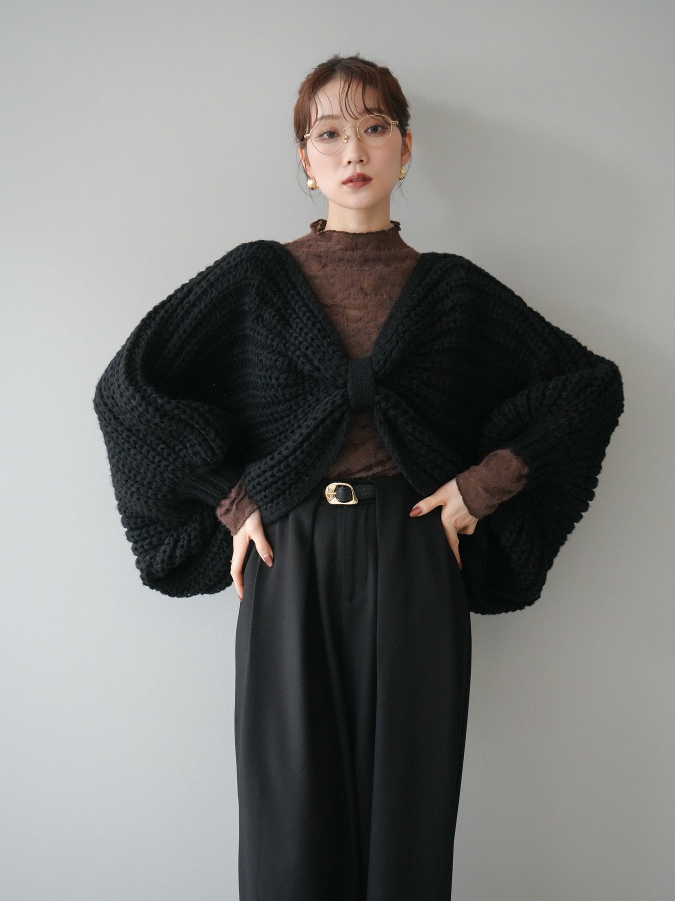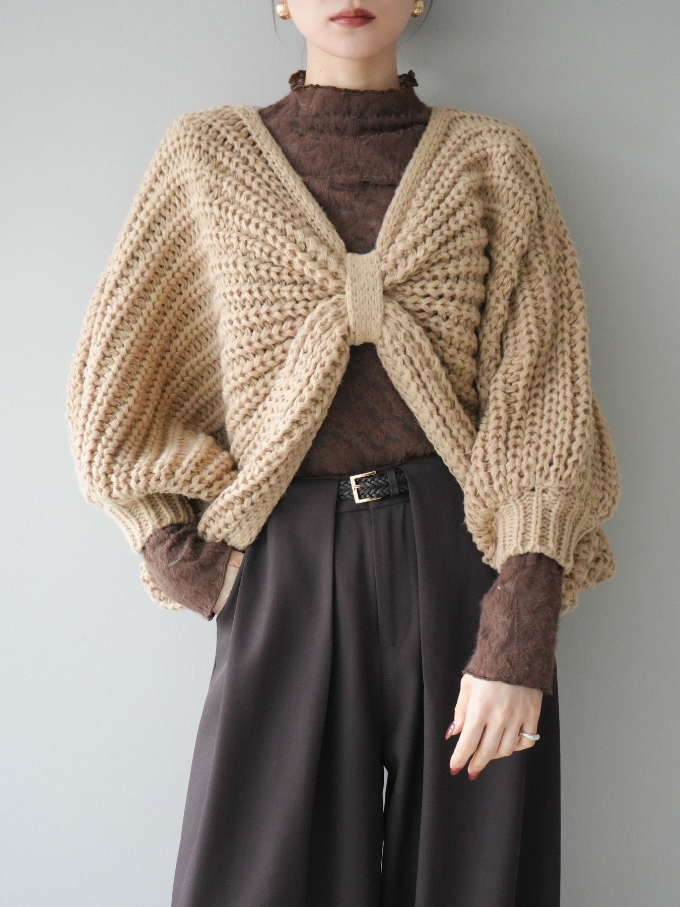 [予約]ローゲージ畦編みドルマンニットボレロ