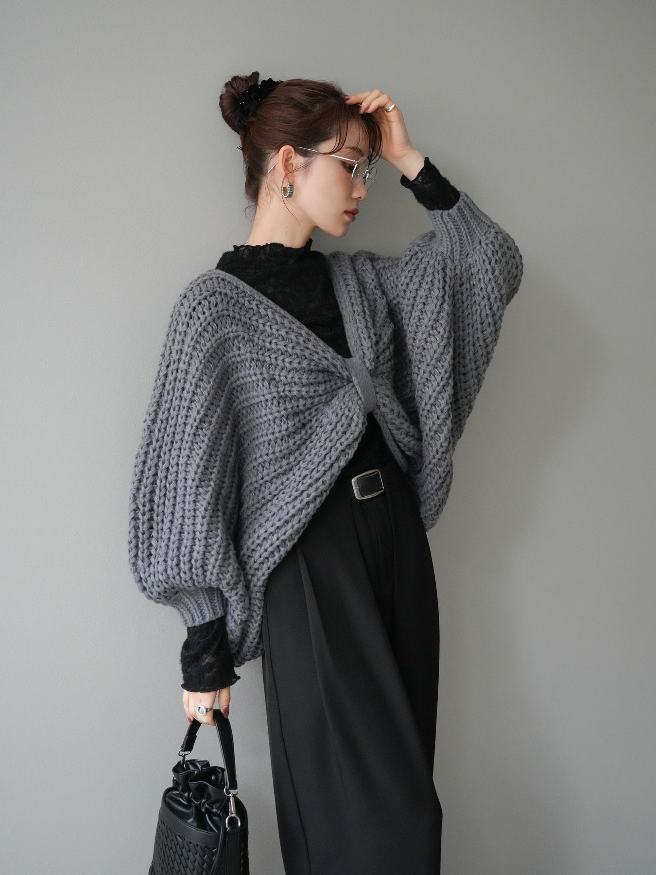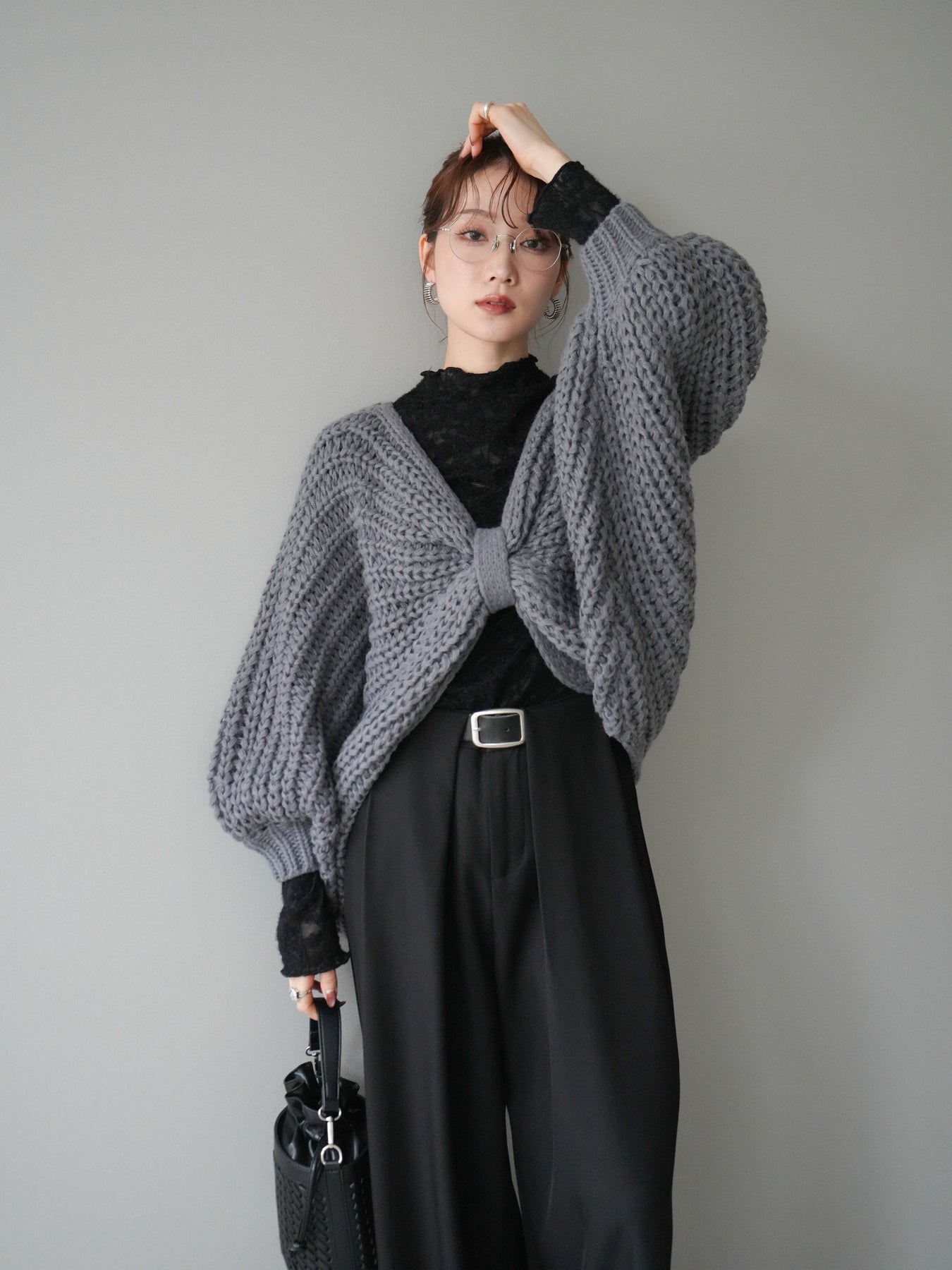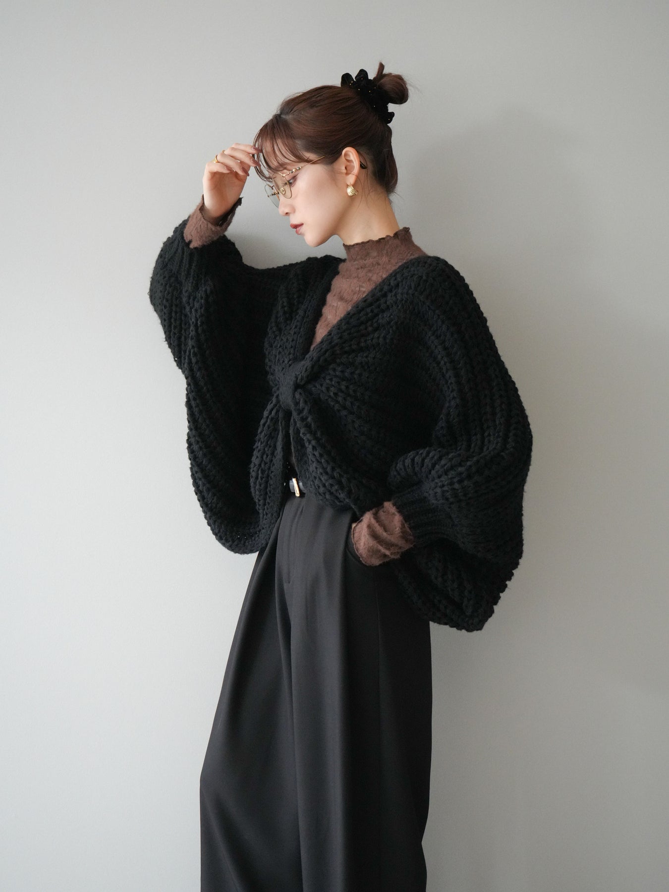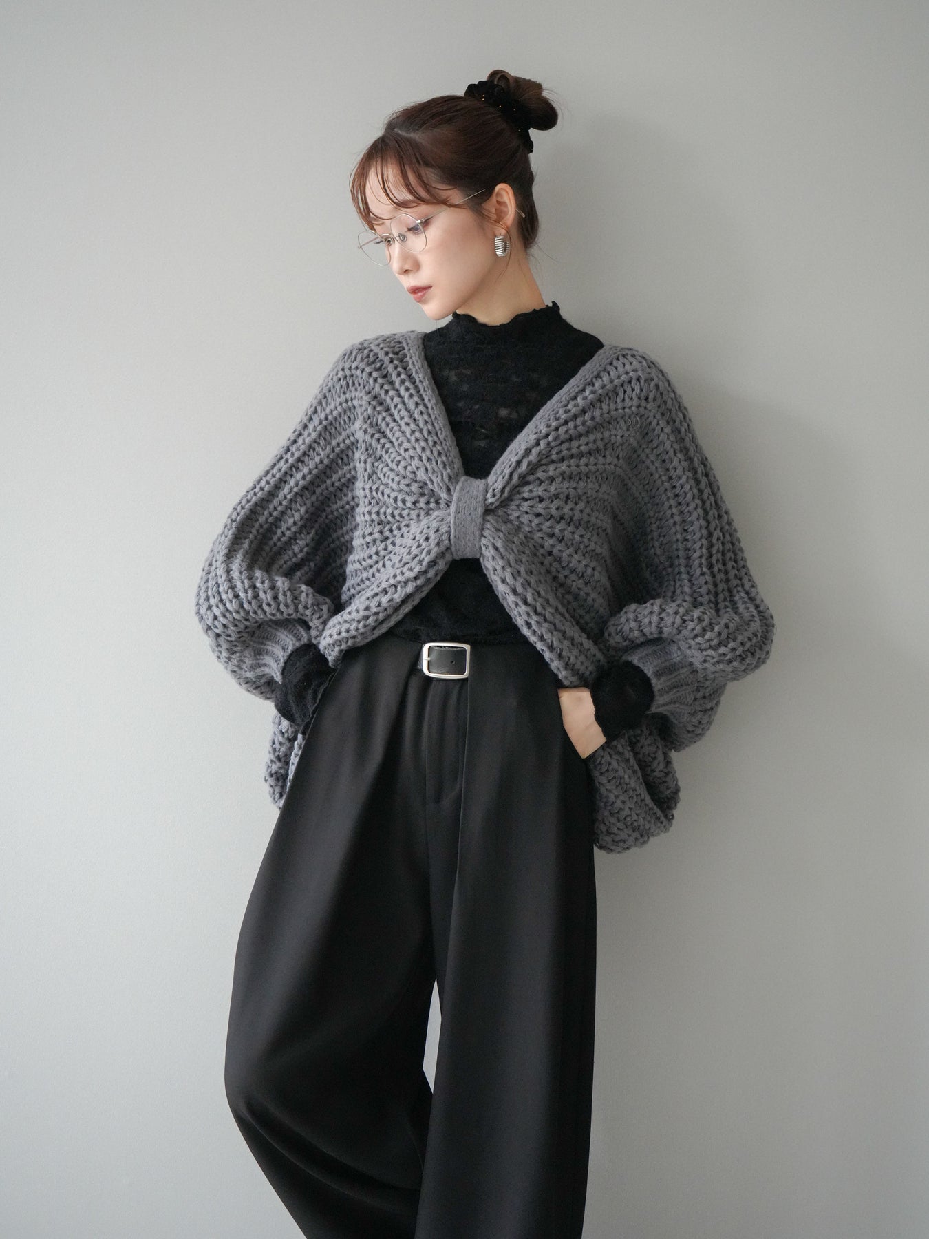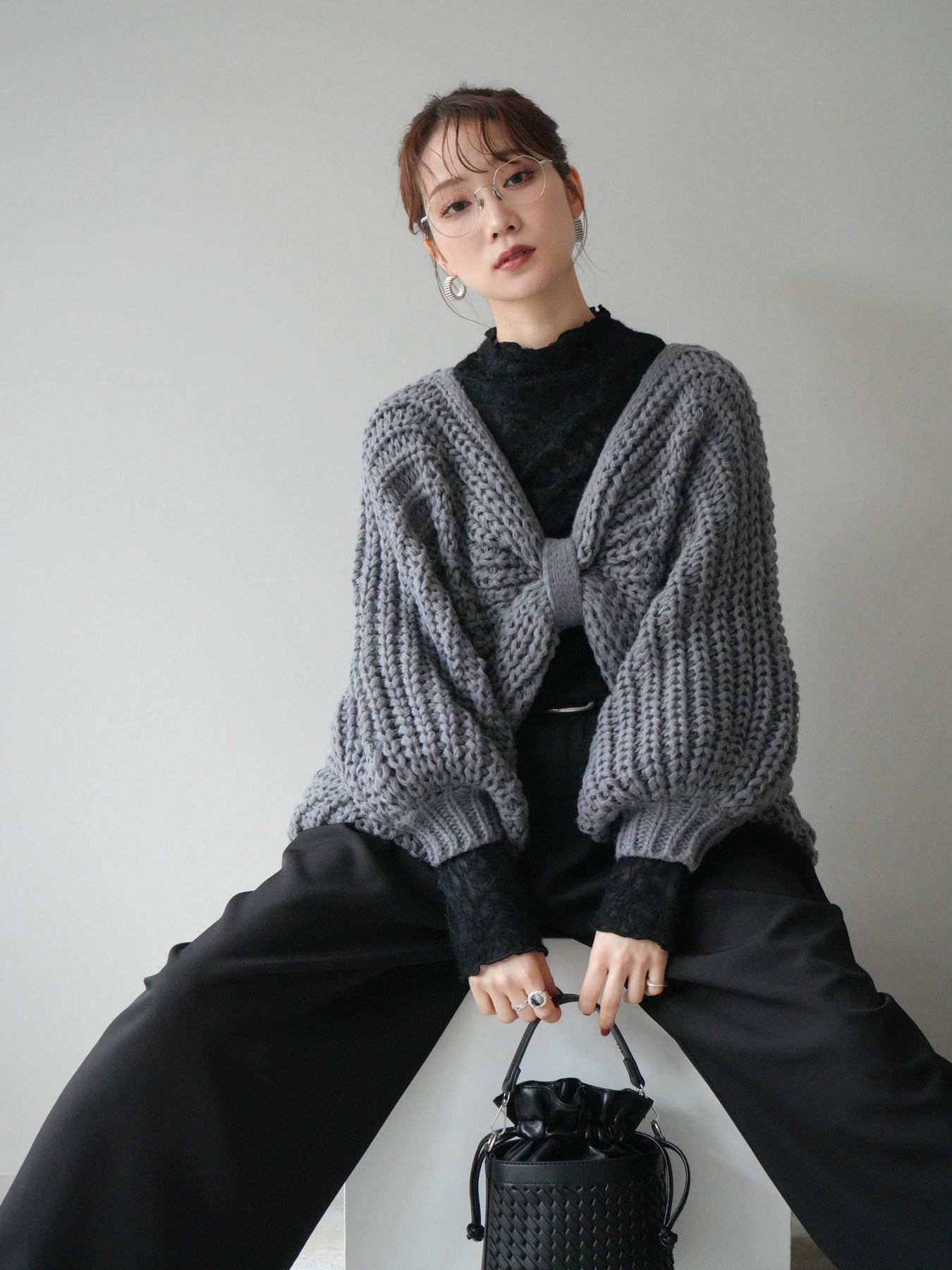 [予約]ローゲージ畦編みドルマンニットボレロ