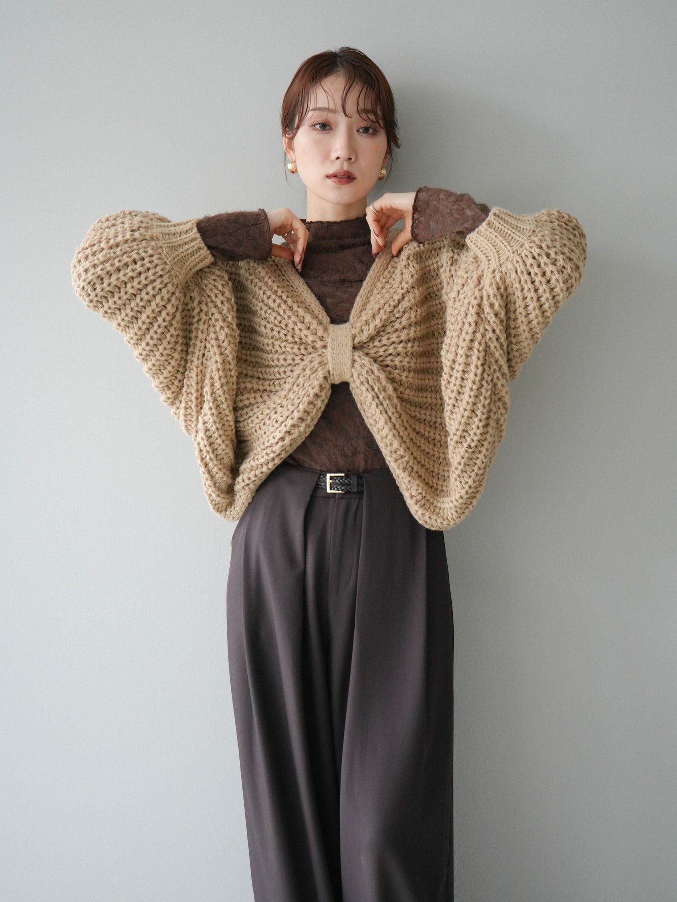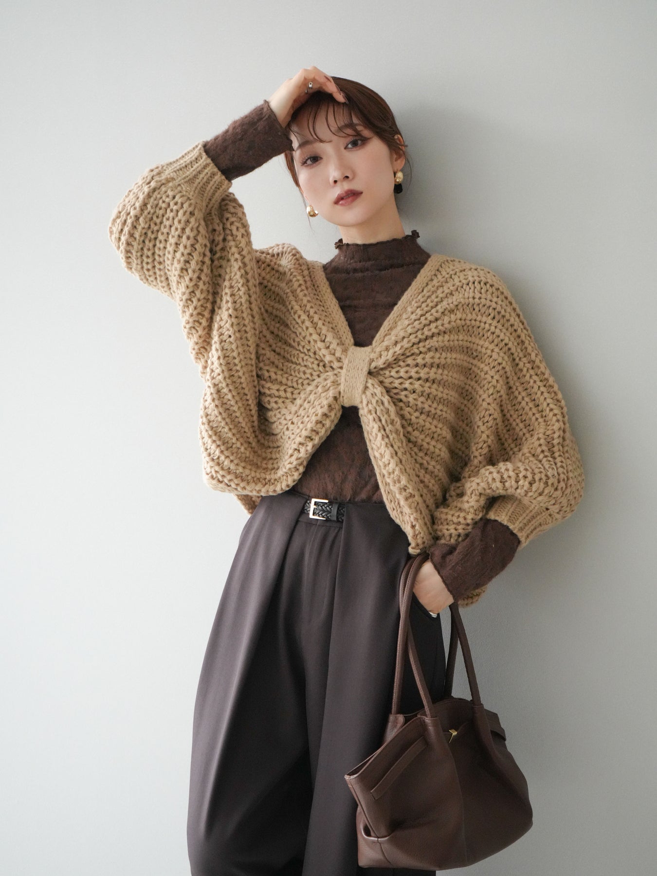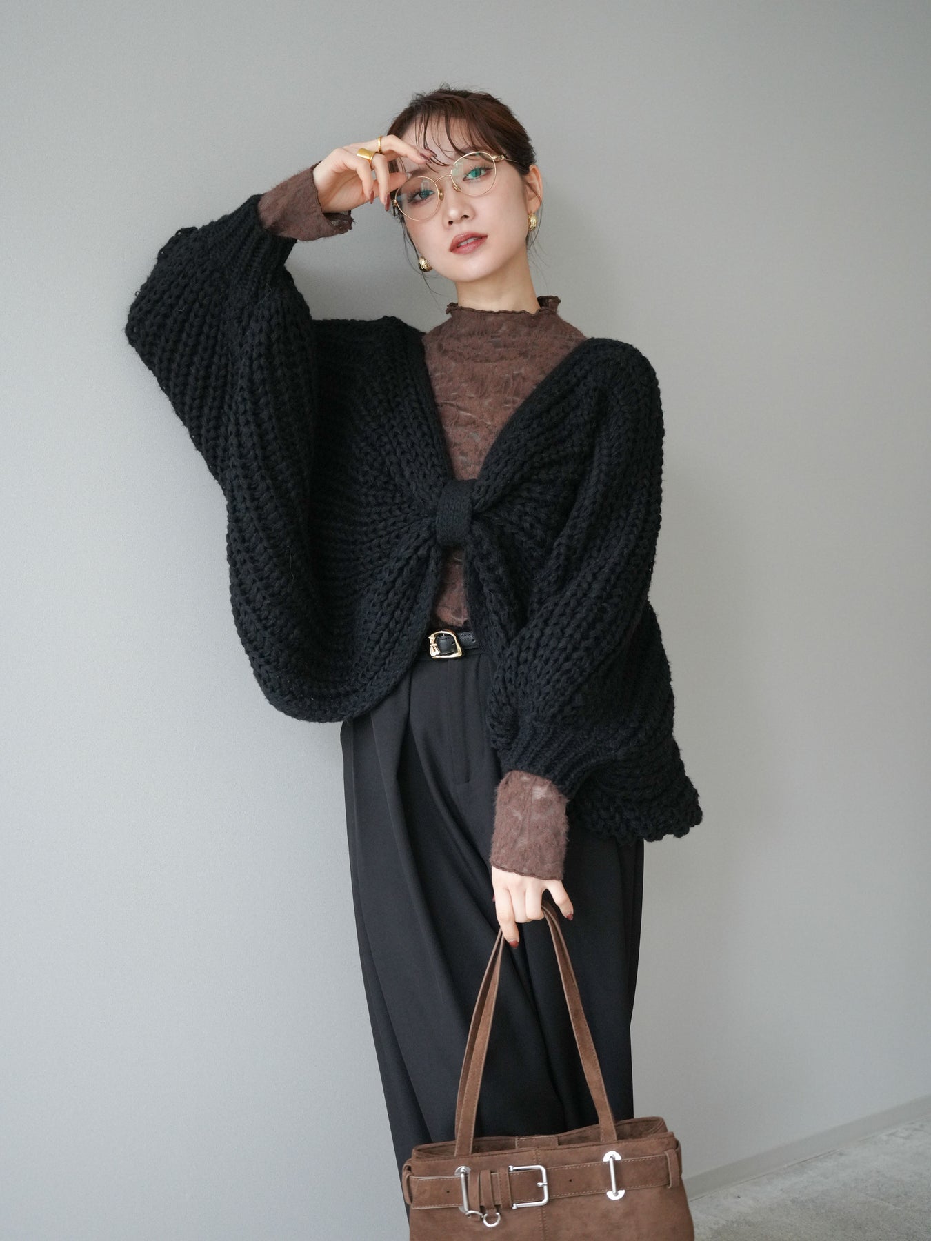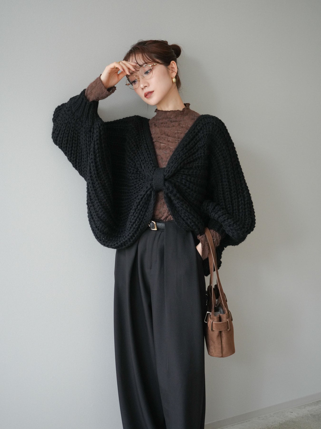 ざっくりとしたローゲージ編みが魅力のドルマンニットボレロ。 ボリュームのあるシルエットと柔らかな風合いが、こなれた印象を与えます。 ゆったりとしたドルマンスリーブが抜け感を演出し、羽織るだけでバランスの取れたスタイルに。 短めの丈感でワンピースやハイウエストボトムとも相性抜群です。 カジュアルにもフェミニンにも合わせやすく、季節の変わり目に活躍する万能な1枚です。 ※ボトムス、キャミソール(インナー)以外の商品は一律でインナーは付属していません。