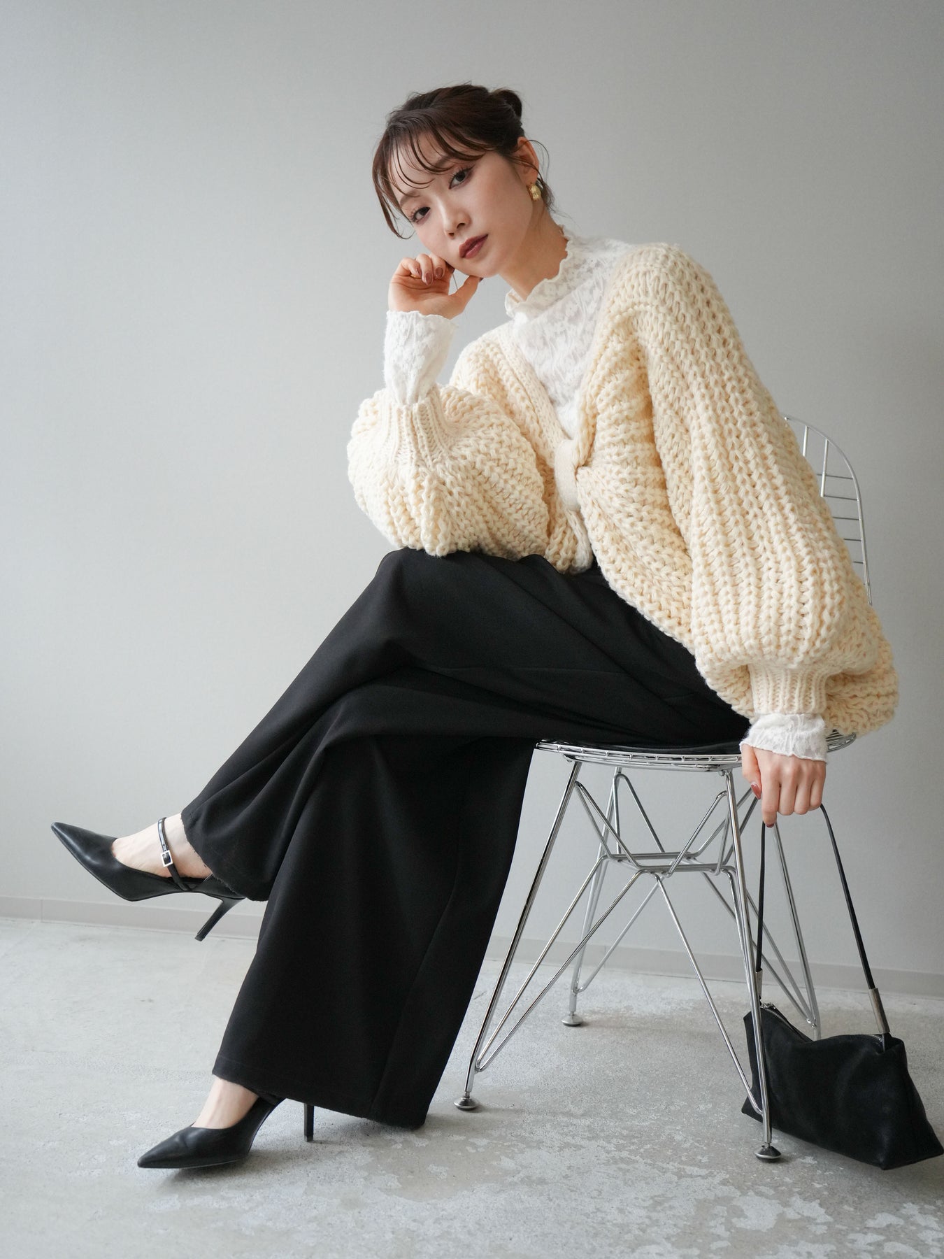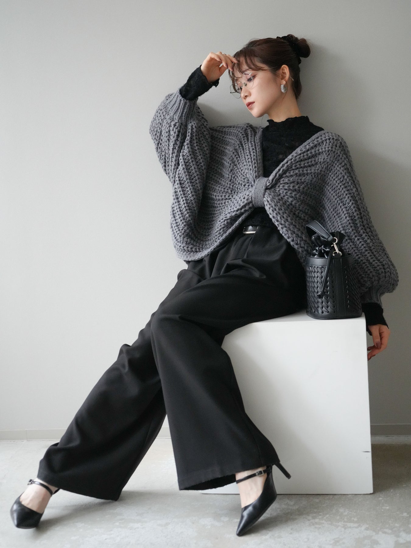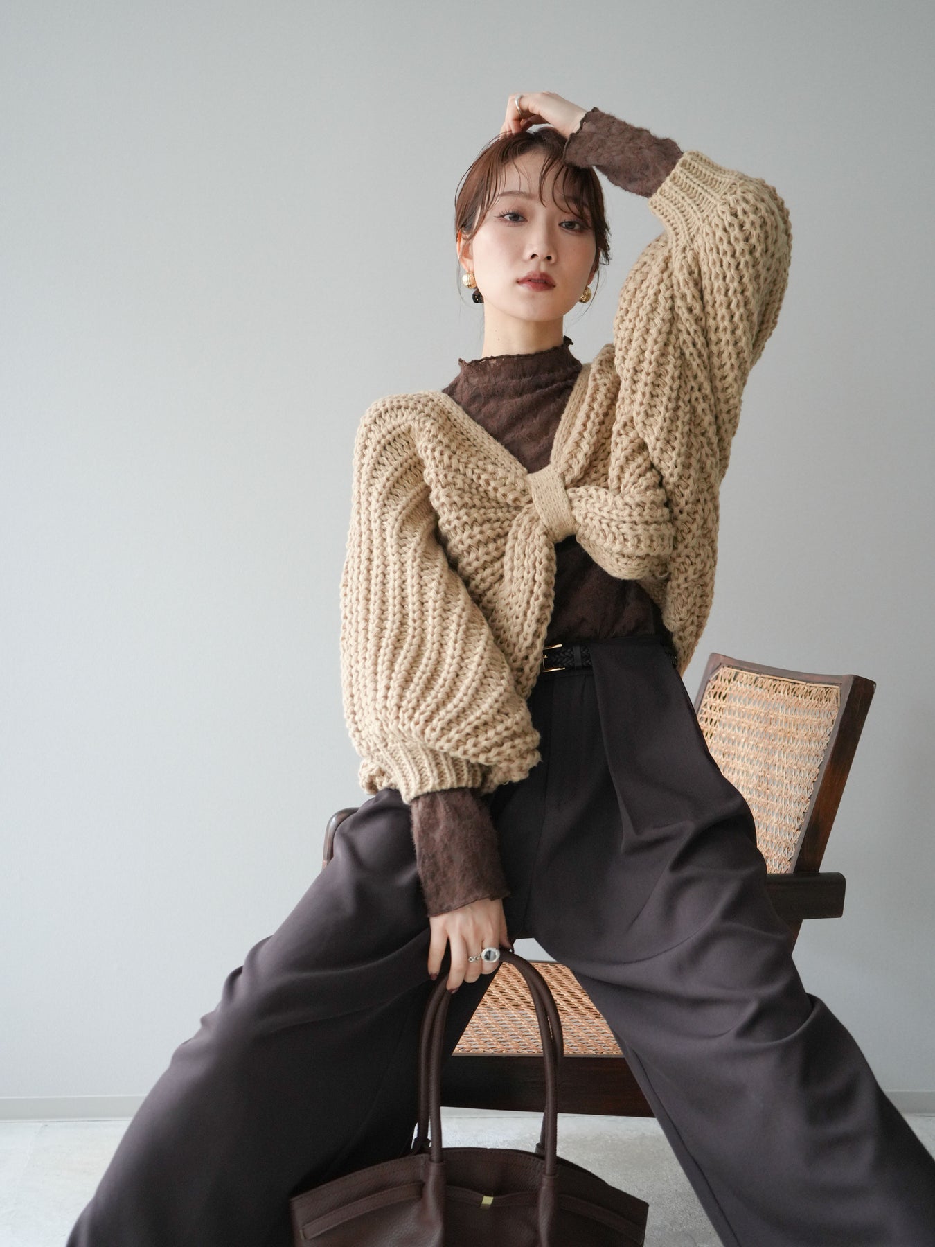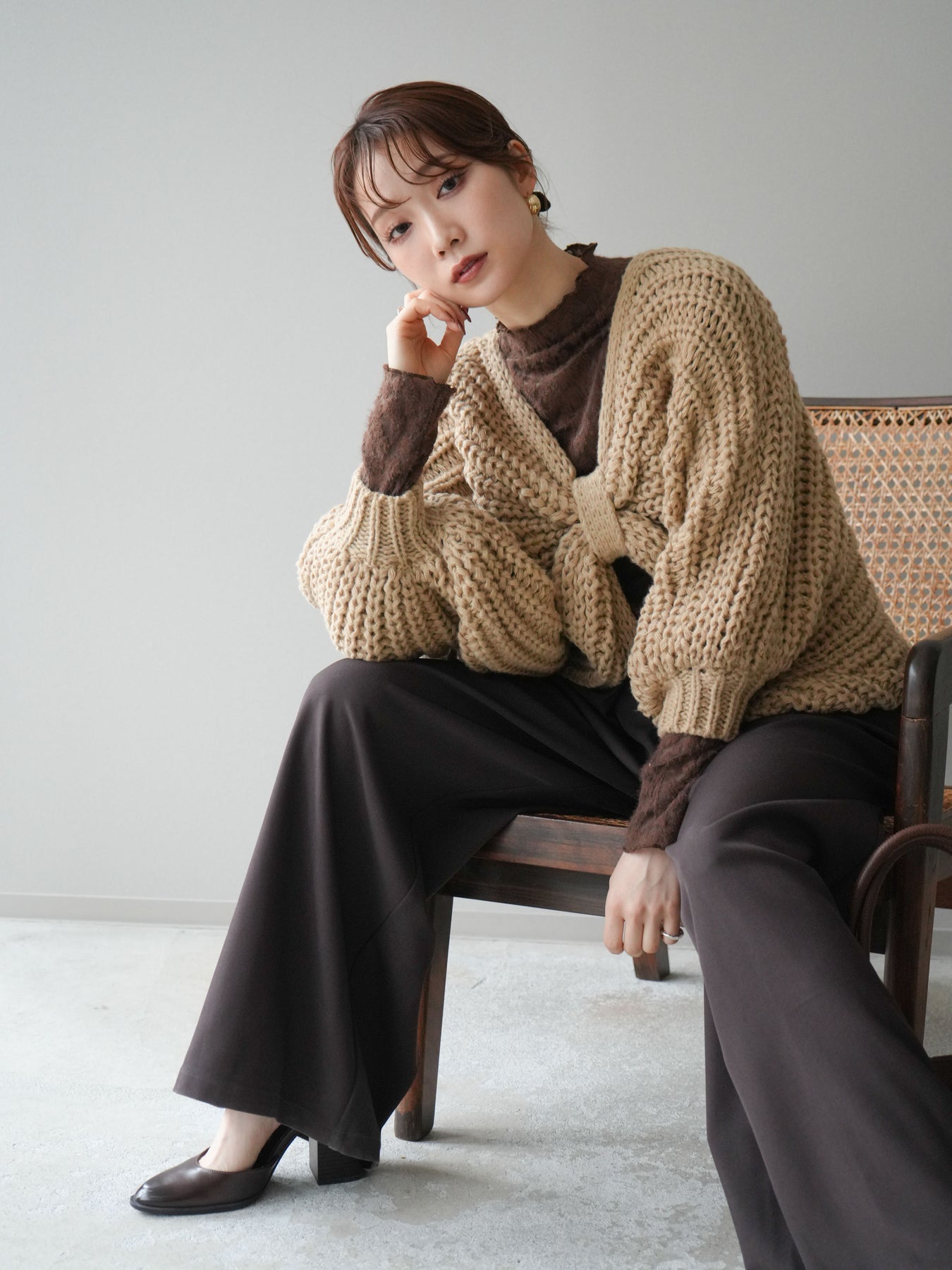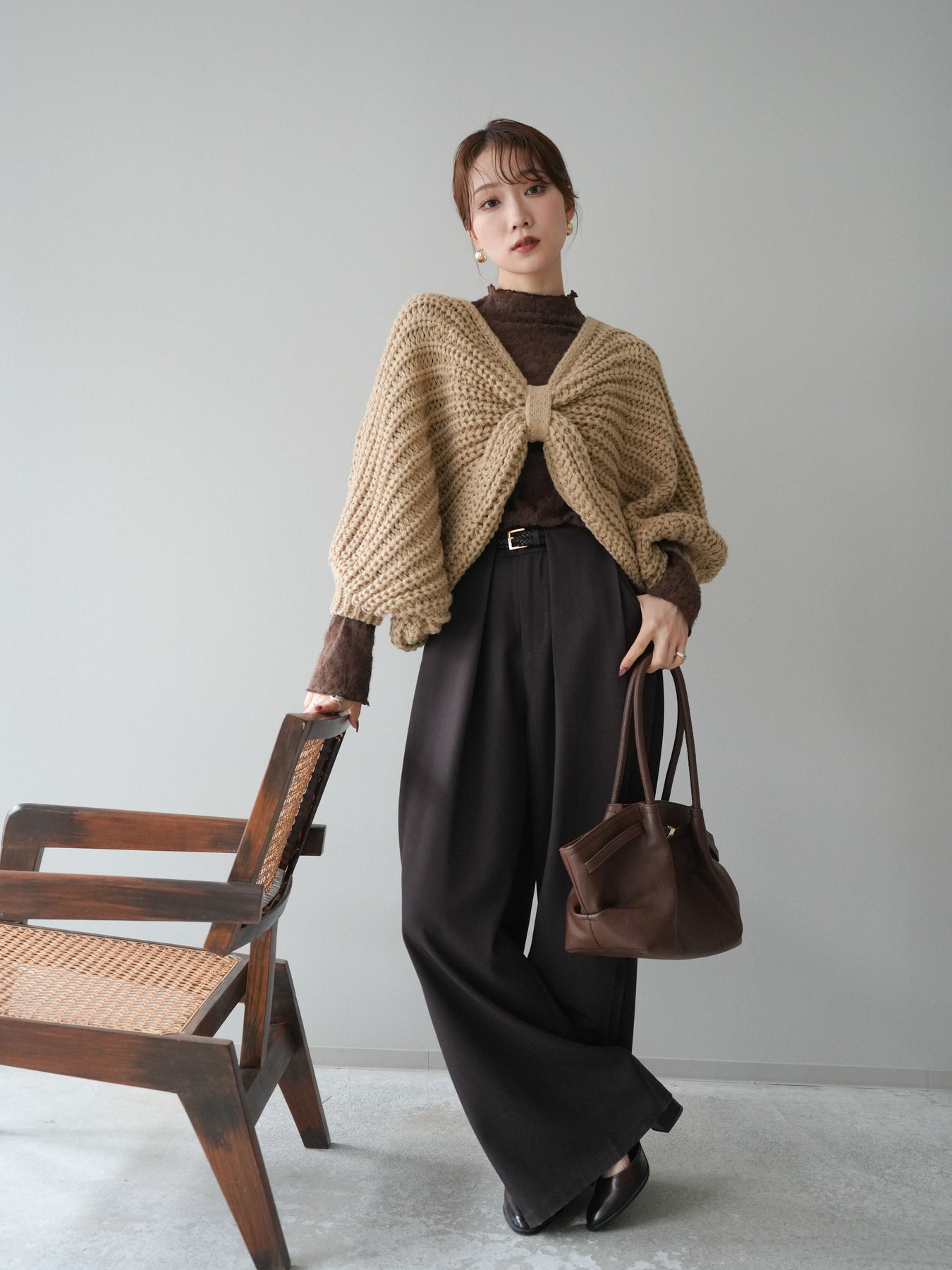 ざっくりとしたローゲージ編みが魅力のドルマンニットボレロ。 ボリュームのあるシルエットと柔らかな風合いが、こなれた印象を与えます。 ゆったりとしたドルマンスリーブが抜け感を演出し、羽織るだけでバランスの取れたスタイルに。 短めの丈感でワンピースやハイウエストボトムとも相性抜群です。 カジュアルにもフェミニンにも合わせやすく、季節の変わり目に活躍する万能な1枚です。 ※ボトムス、キャミソール(インナー)以外の商品は一律でインナーは付属していません。