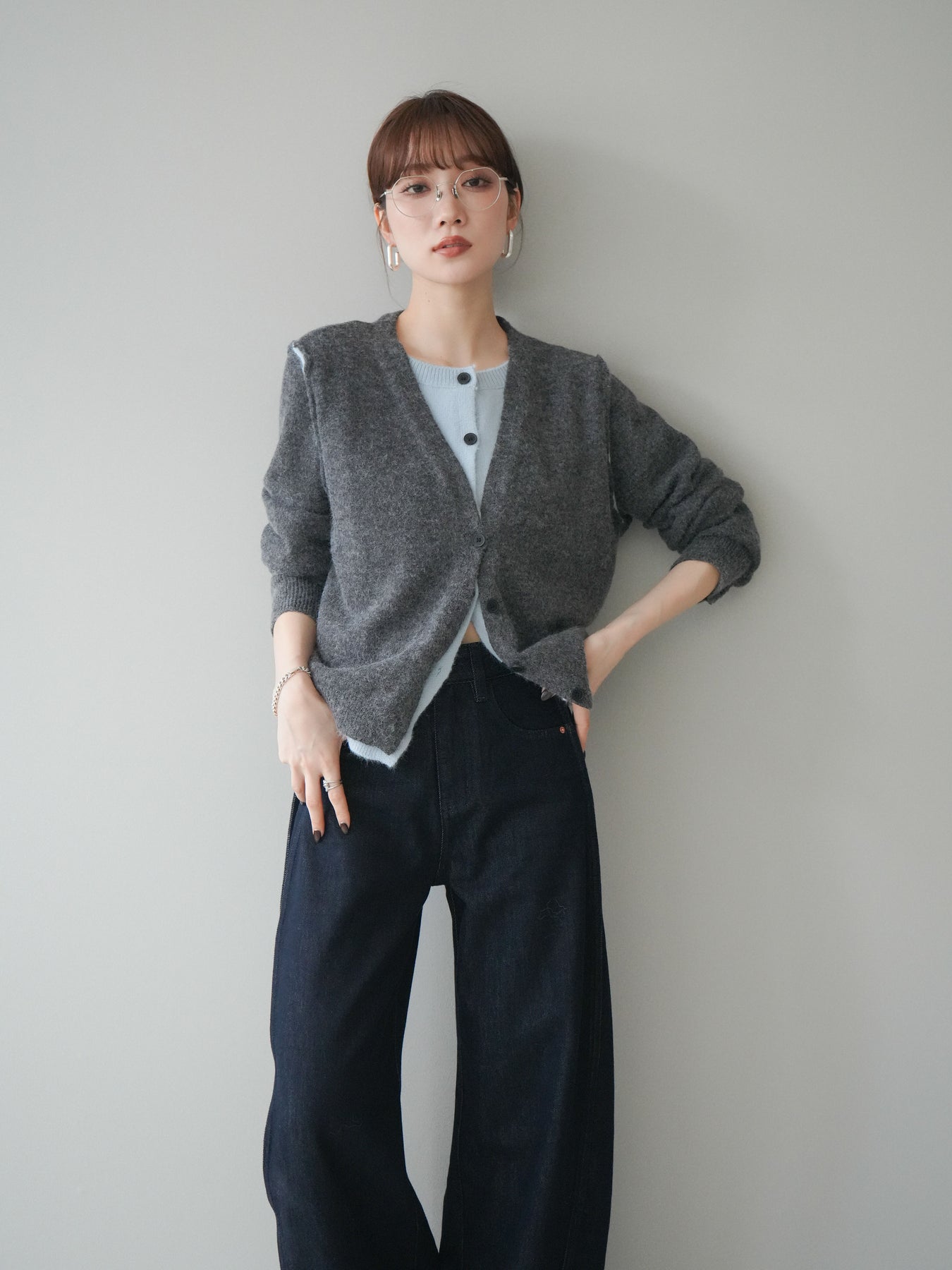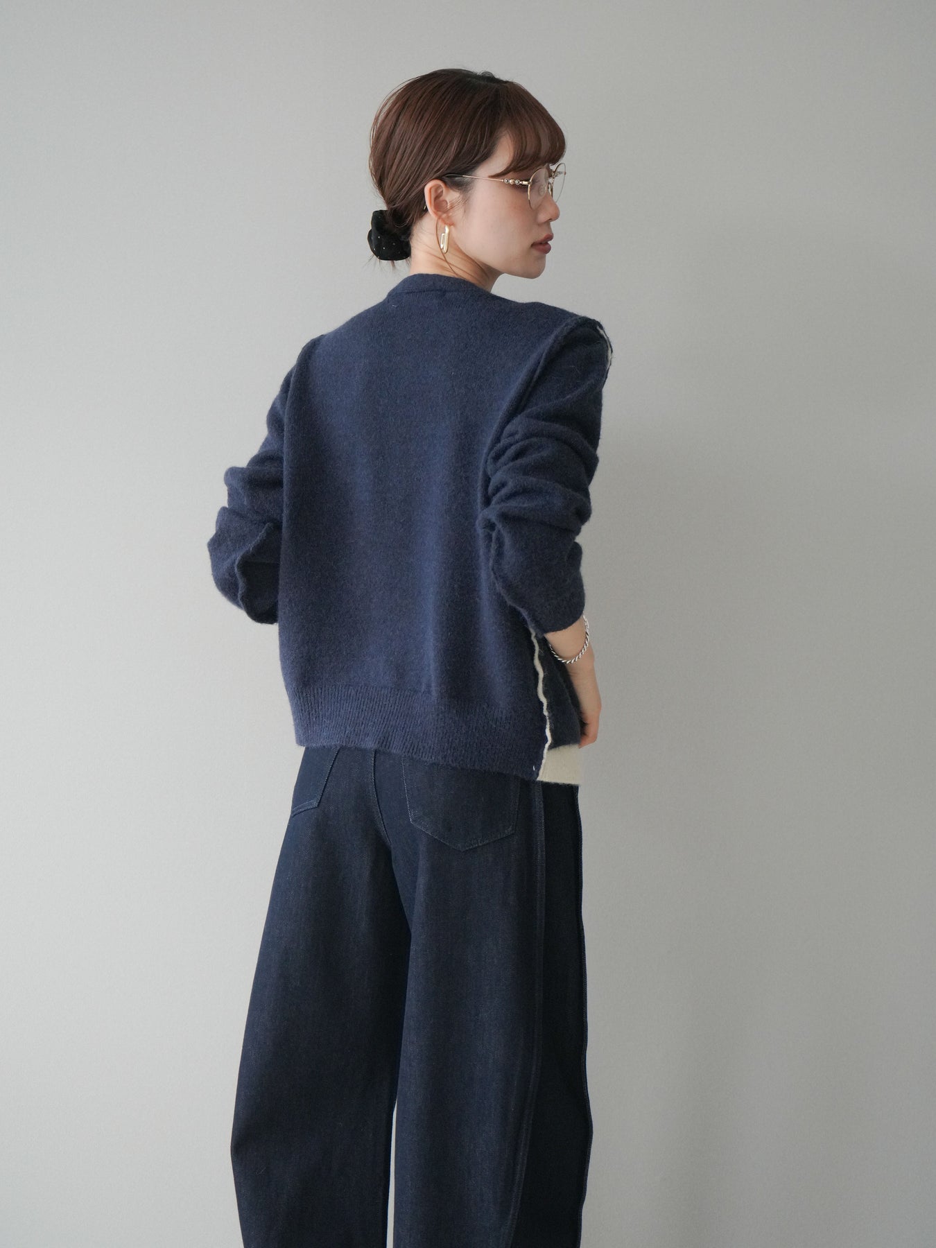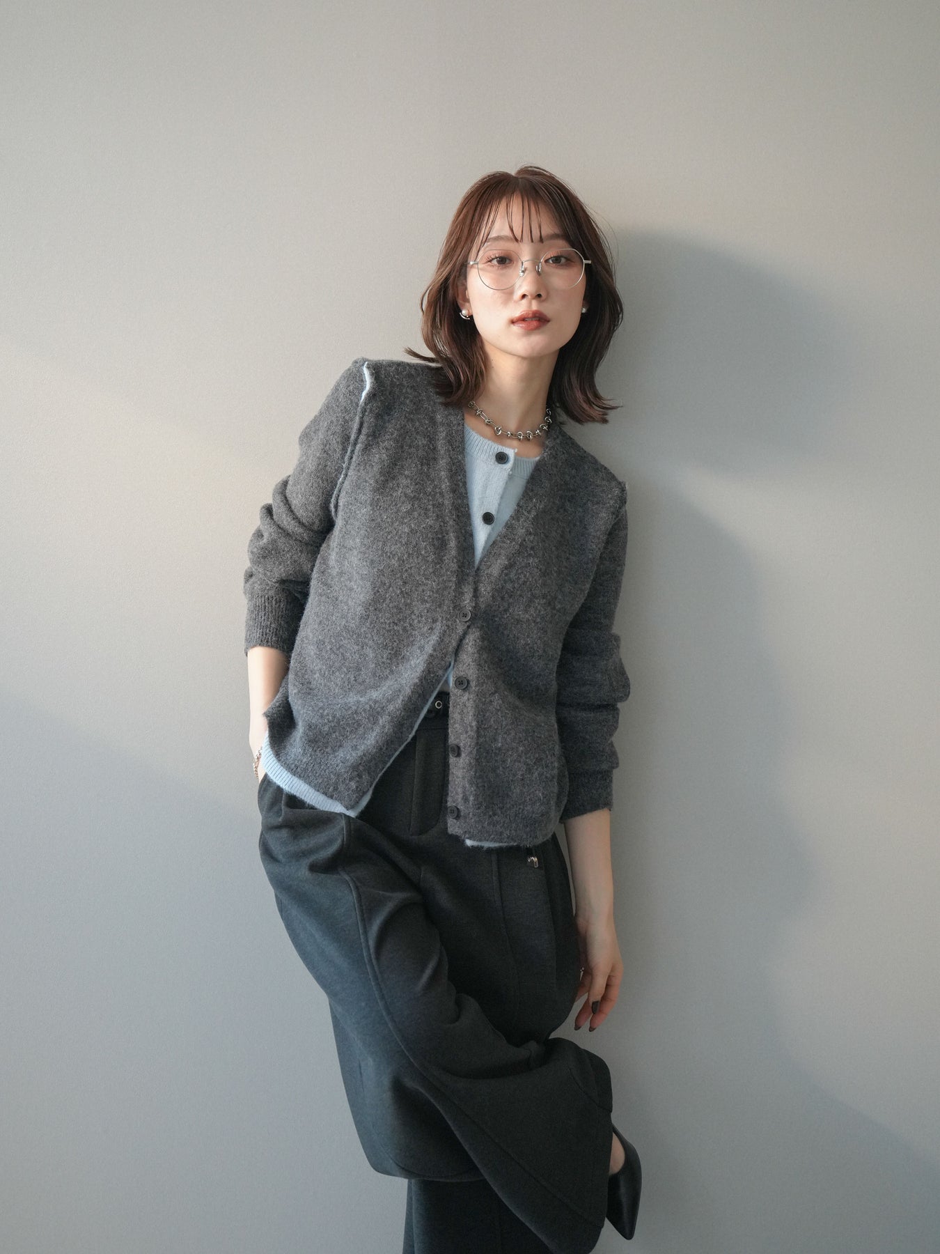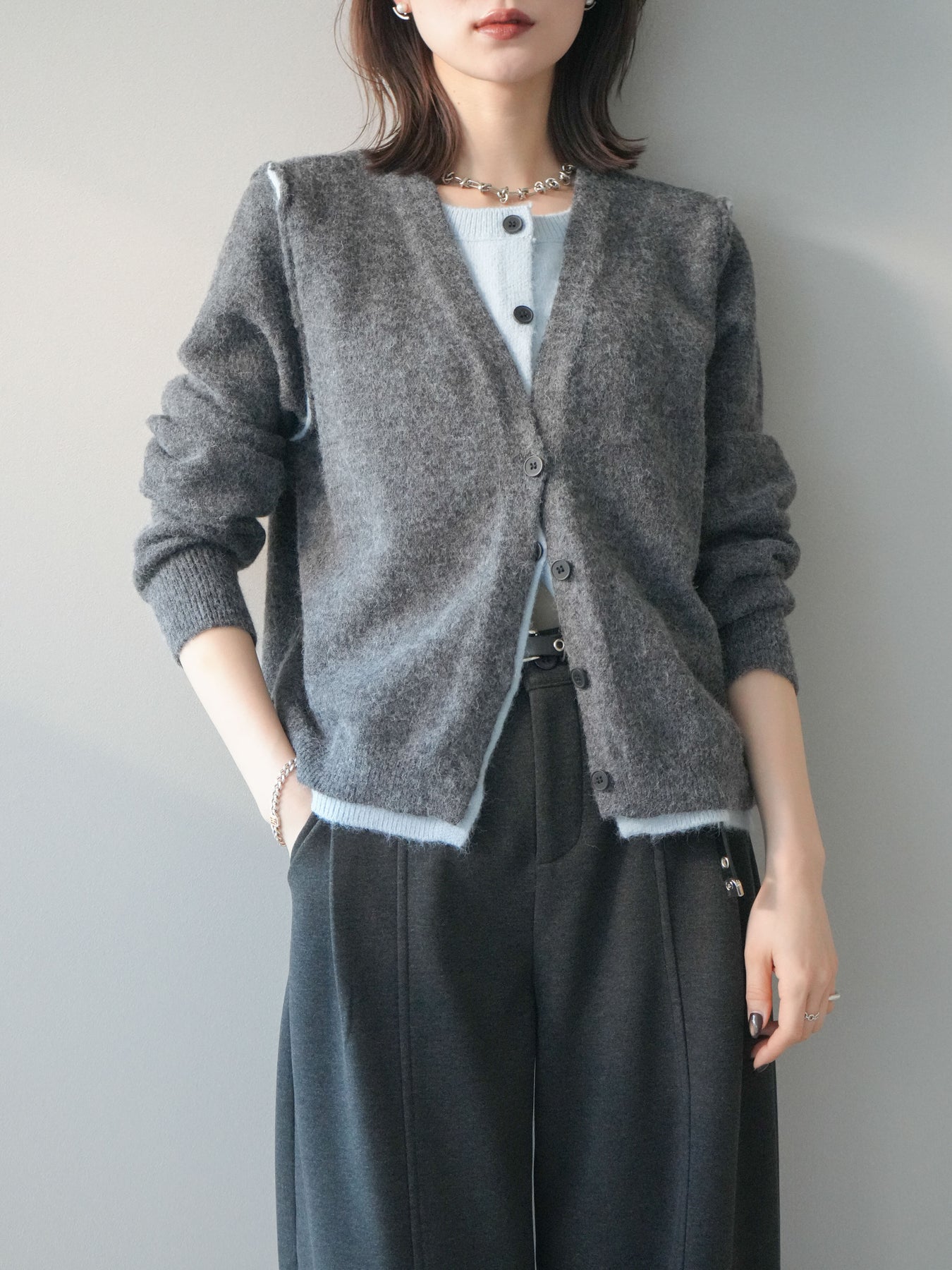 レイヤードしているように見える配色デザインが目を引くニットカーディガン。異なる色味のニットを重ねたようなディテールが立体感を生み、シンプルなボトムスに合わせるだけでスタイリングがぐっと華やぎます。程よい厚みのニット素材は着心地も軽く、ゆとりをもたせたシルエットが抜け感とリラックス感をプラス。ボタンを留めてトップス風にも、羽織としても活躍し、コーデに幅を持たせてくれる万能アイテムです。 ※ボトムス、キャミソール(インナー)以外の商品は一律でインナーは付属していません。