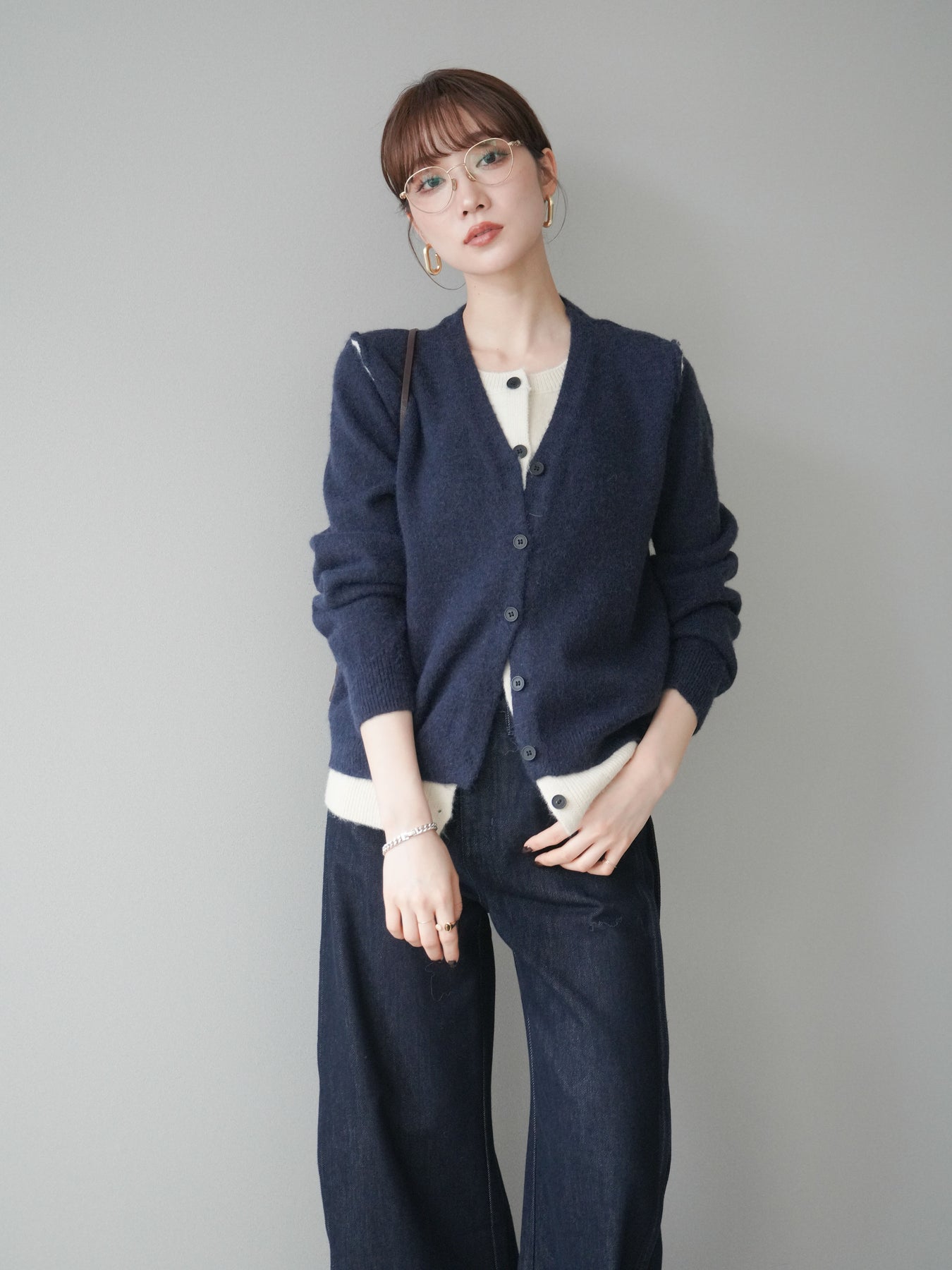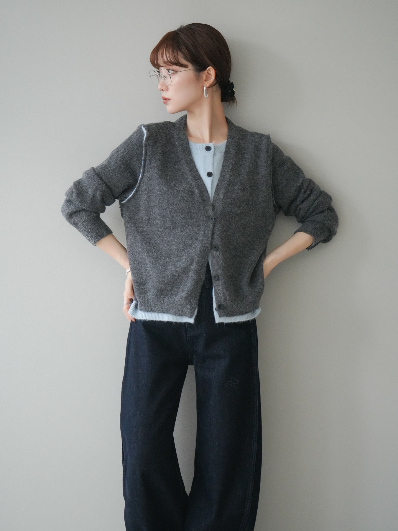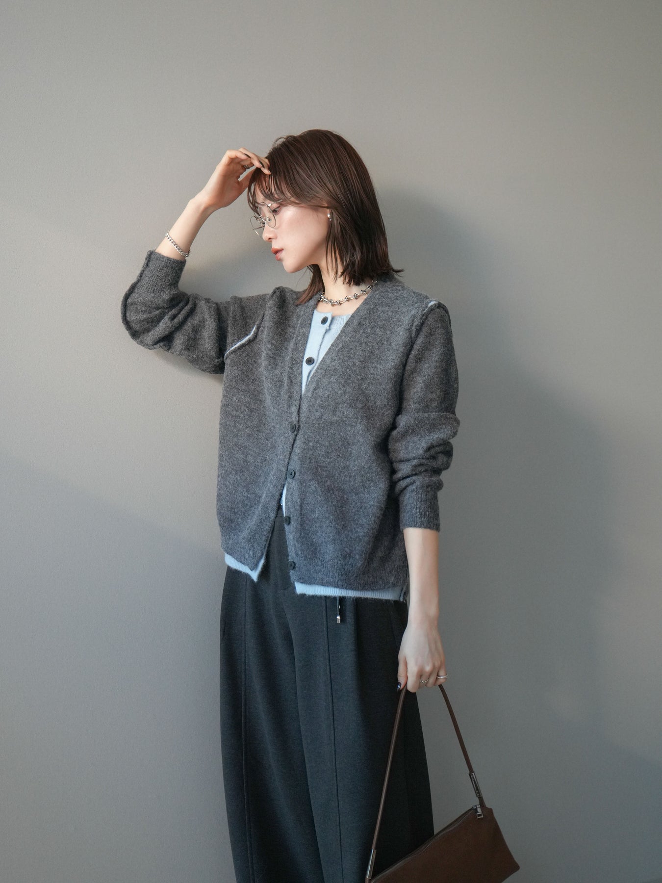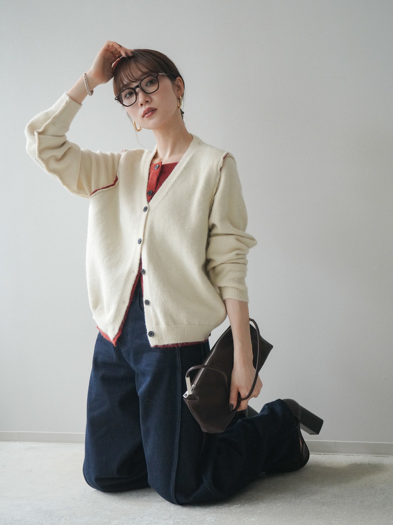 [SET]配色レイヤードニットカーディガン+選べるアクセセット(2set)