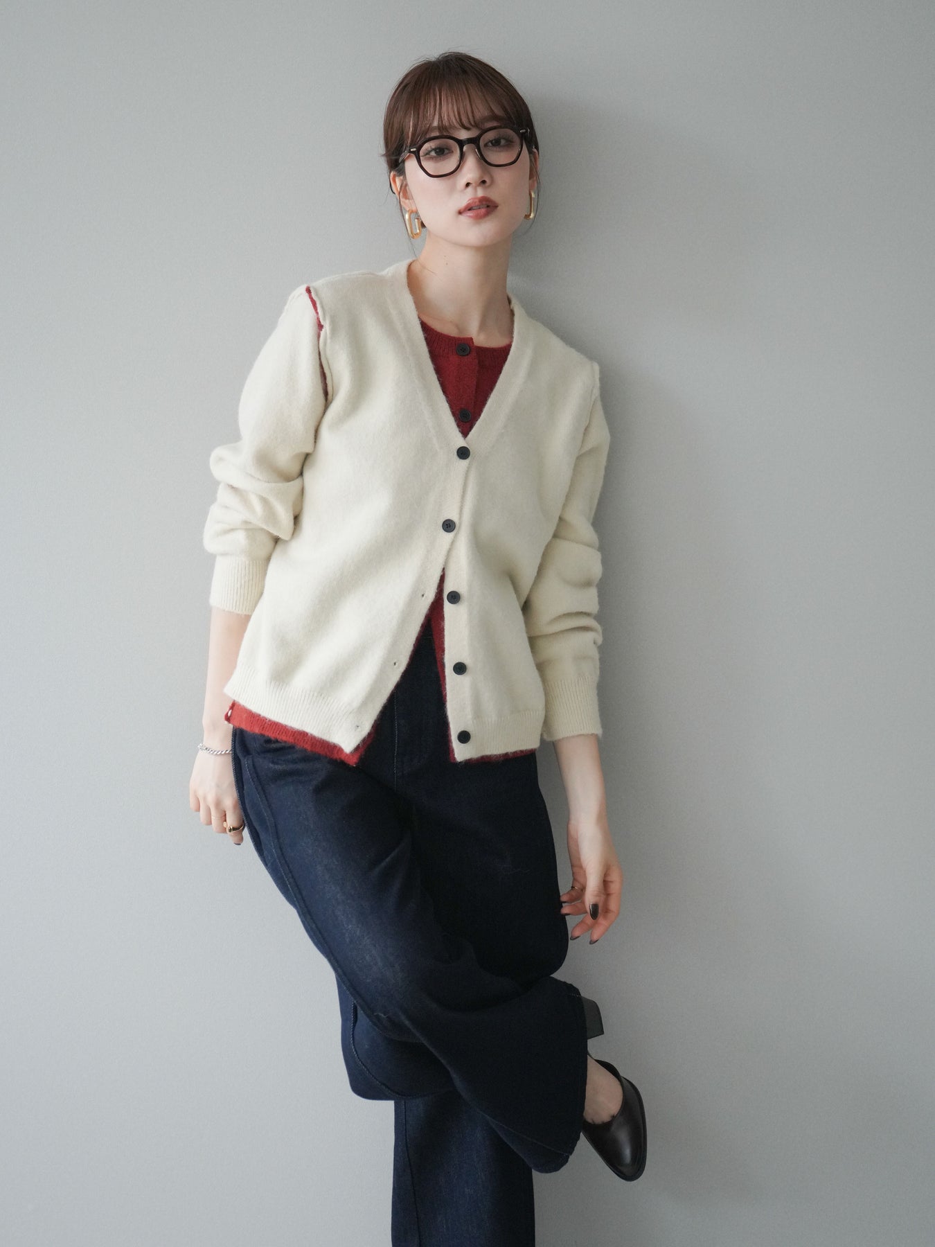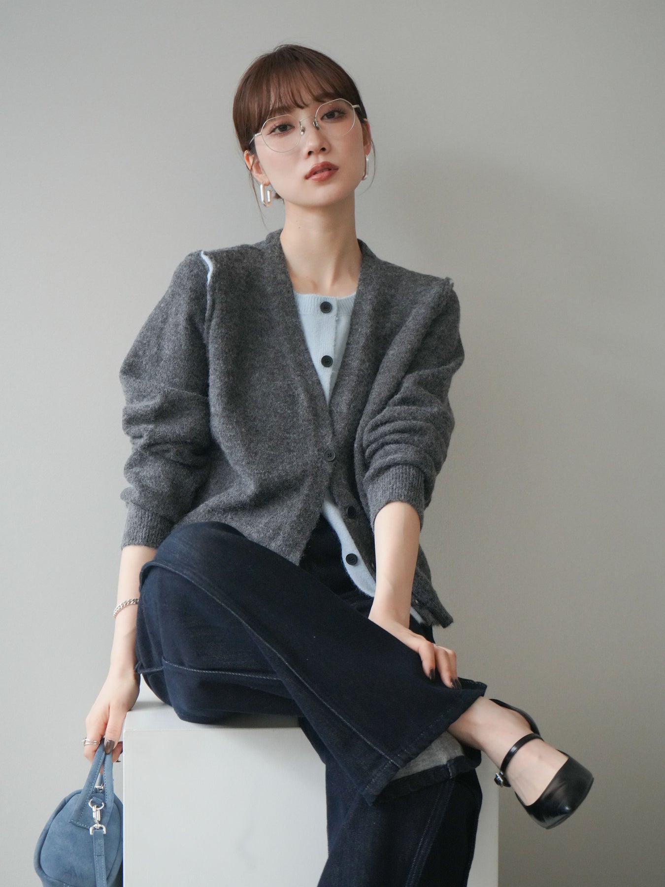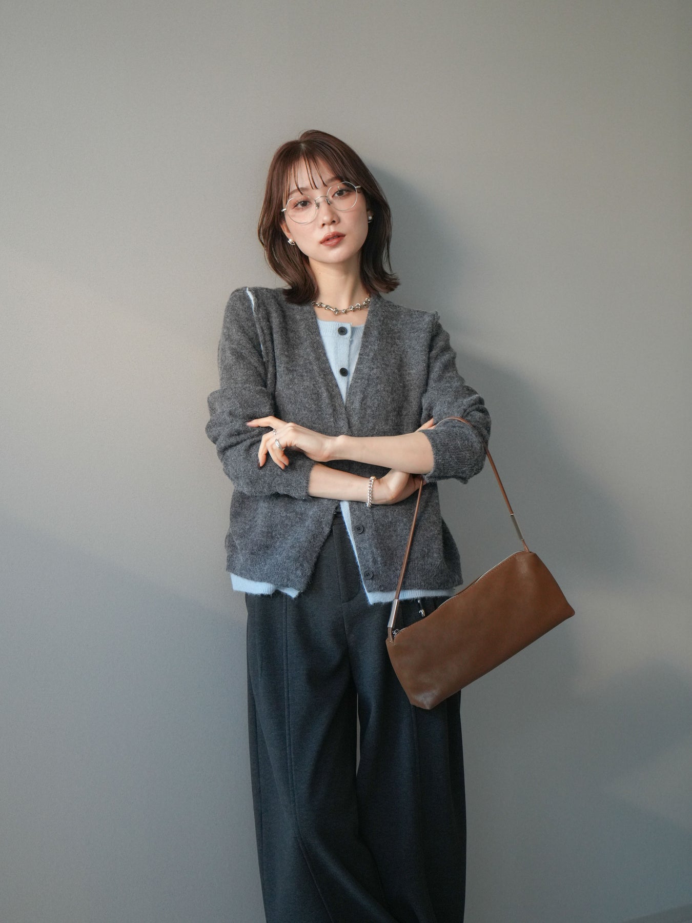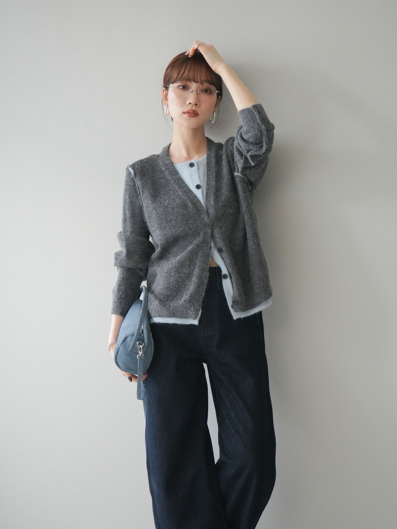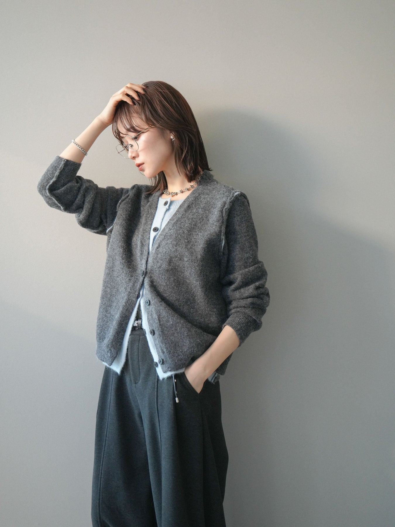 [SET]配色レイヤードニットカーディガン+選べるアクセセット(2set)