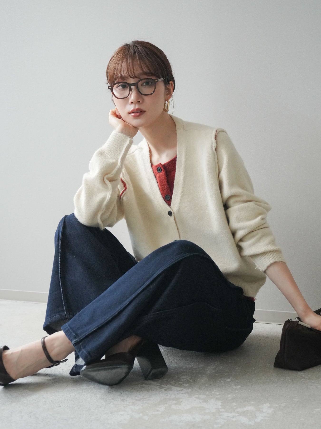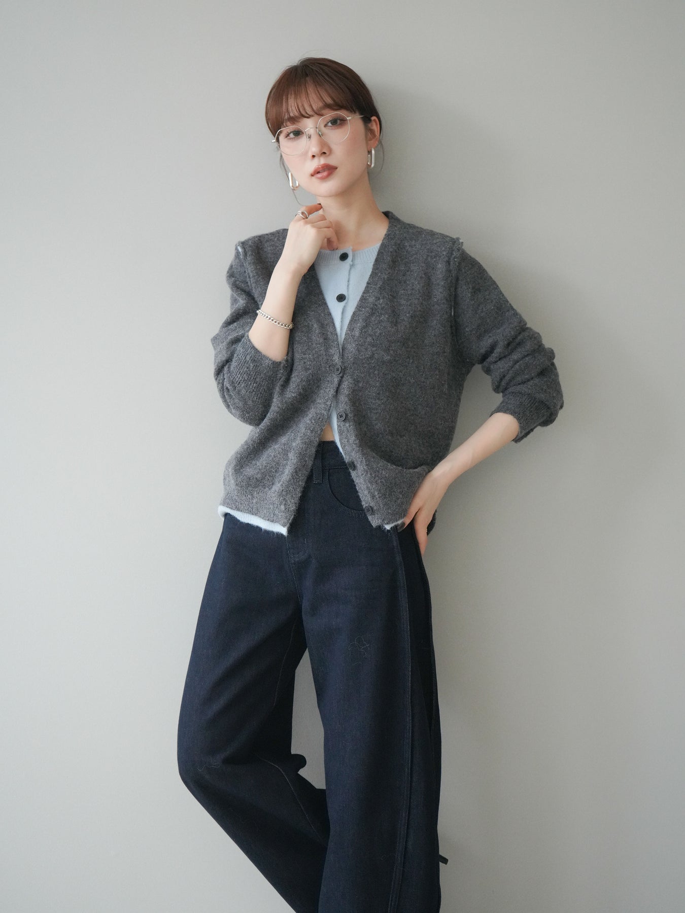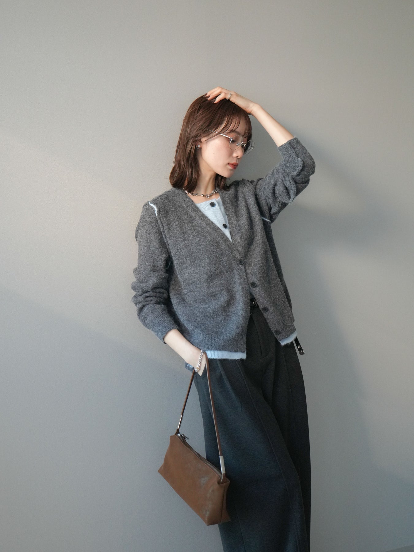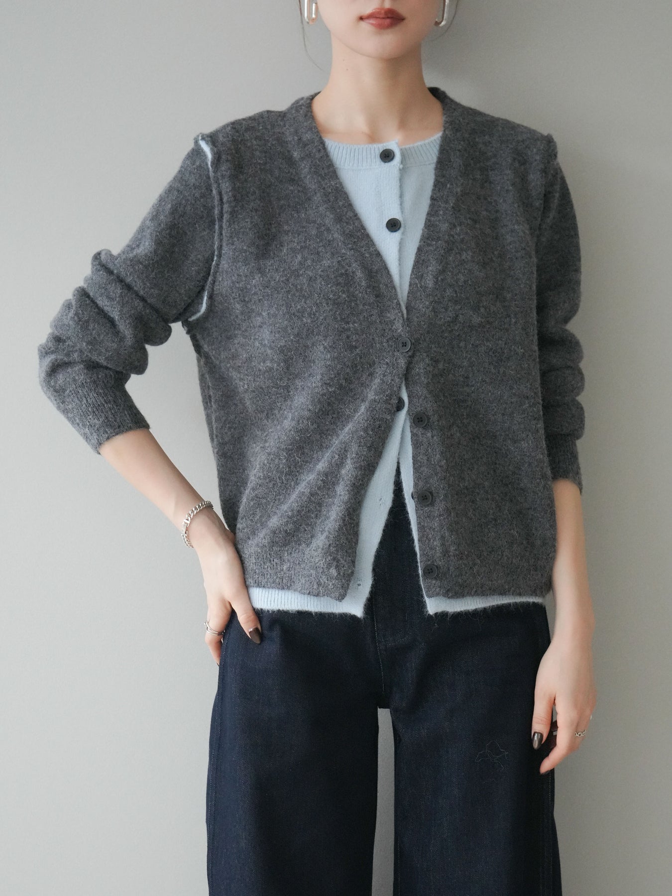 [SET]配色レイヤードニットカーディガン+選べるアクセセット(2set)