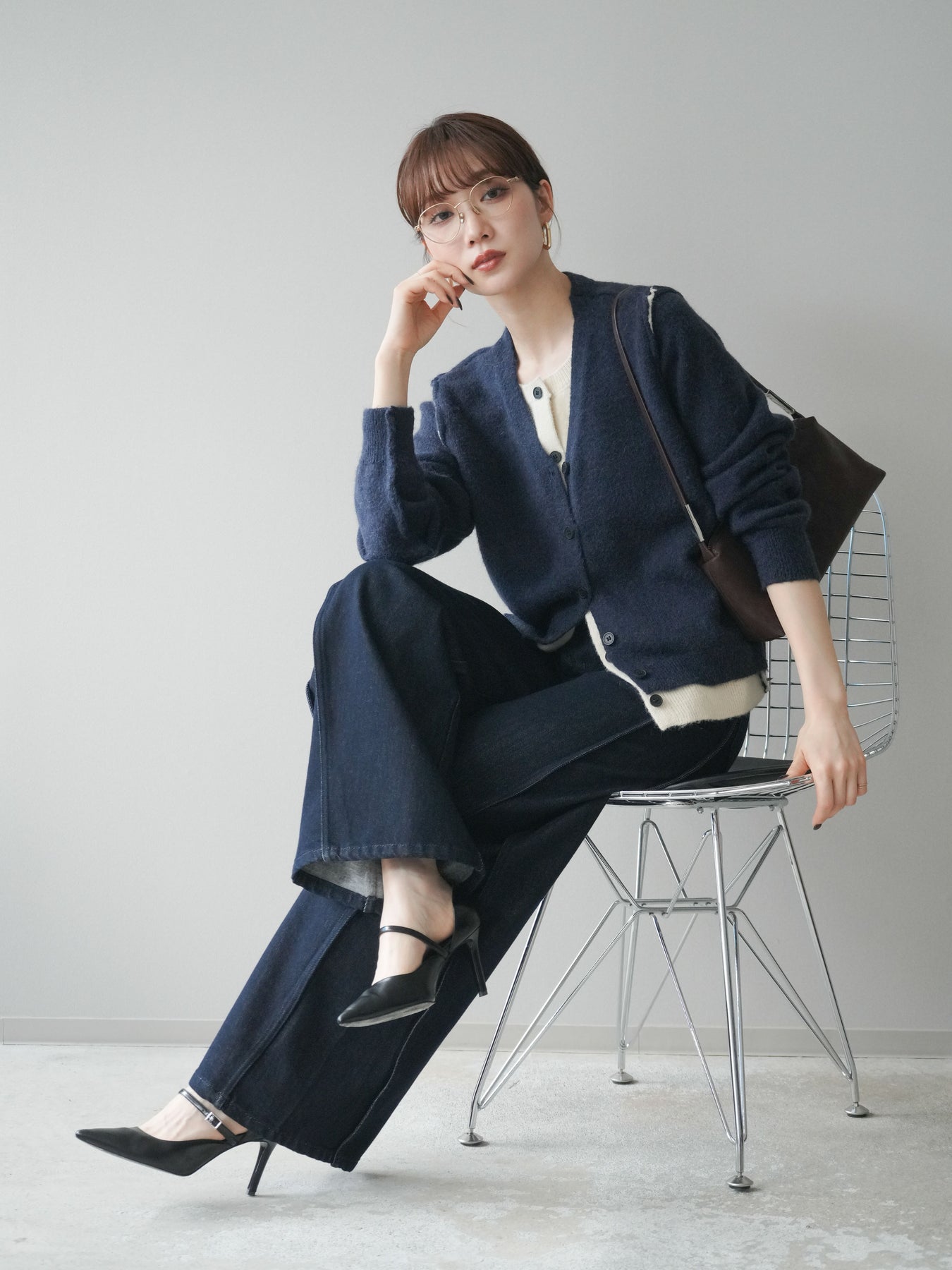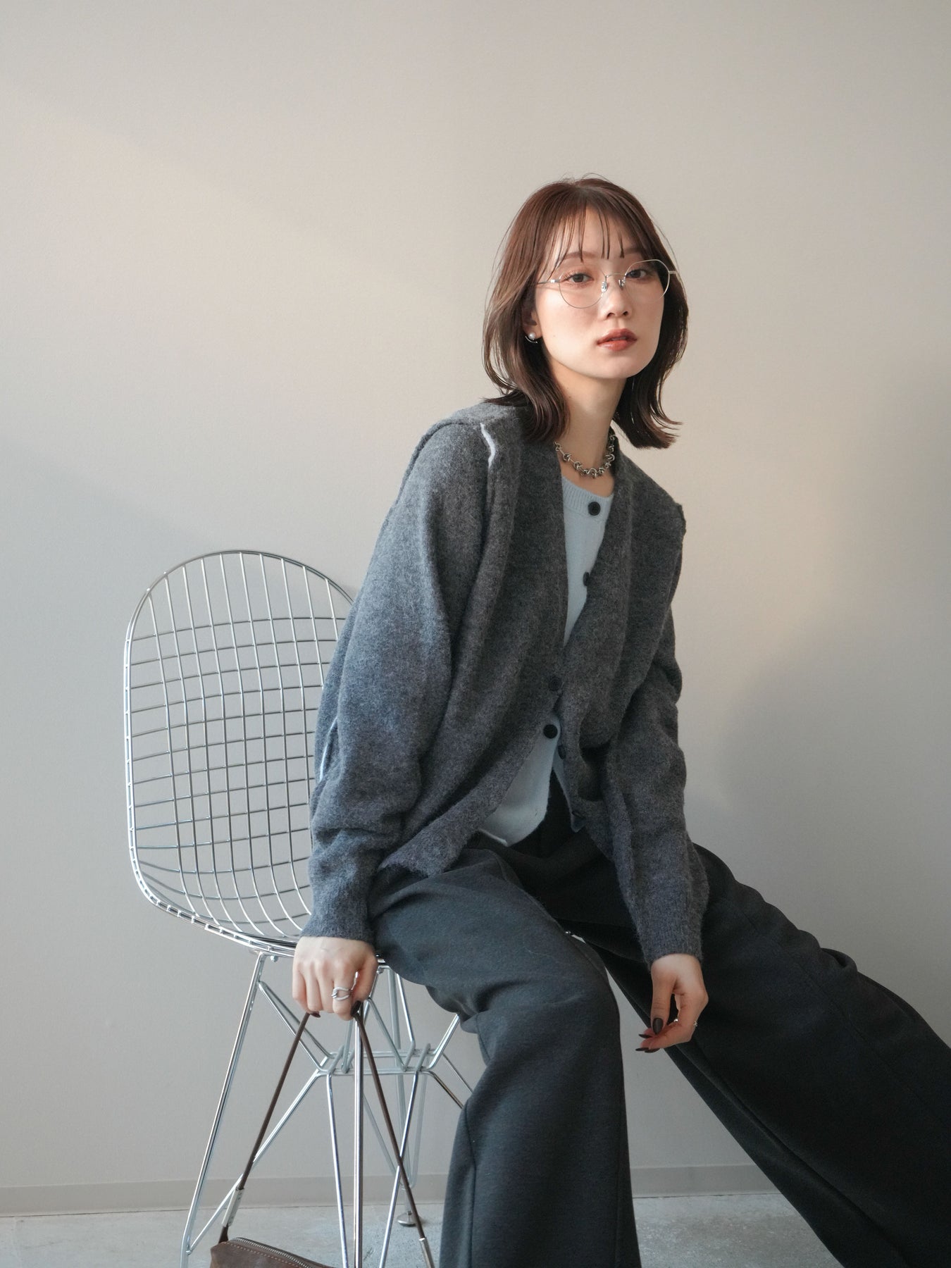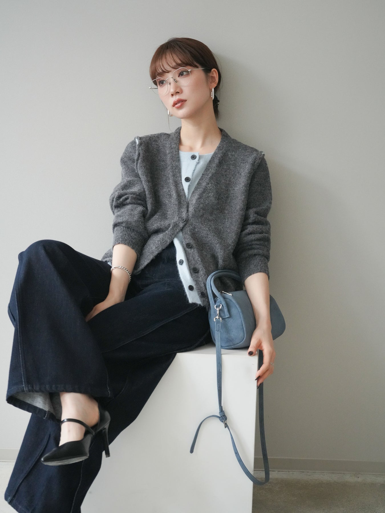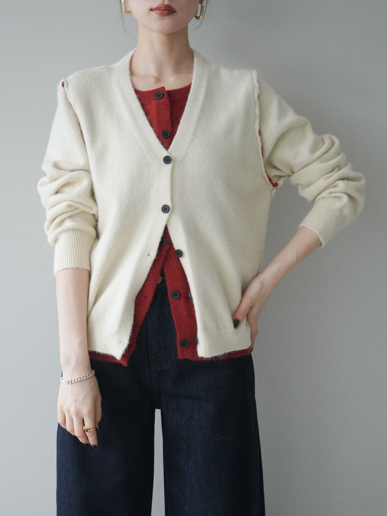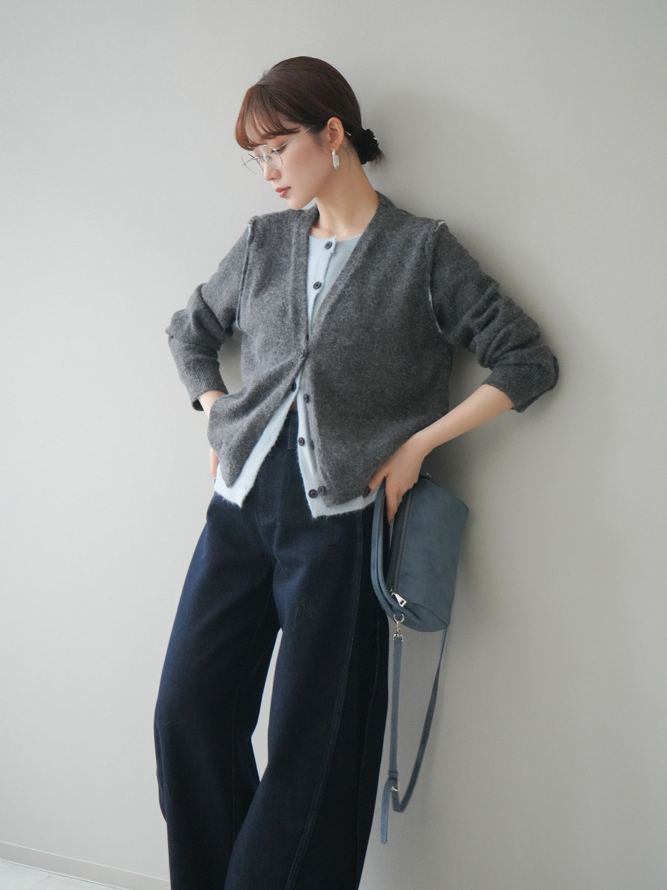 [SET]配色レイヤードニットカーディガン+選べるアクセセット(2set)