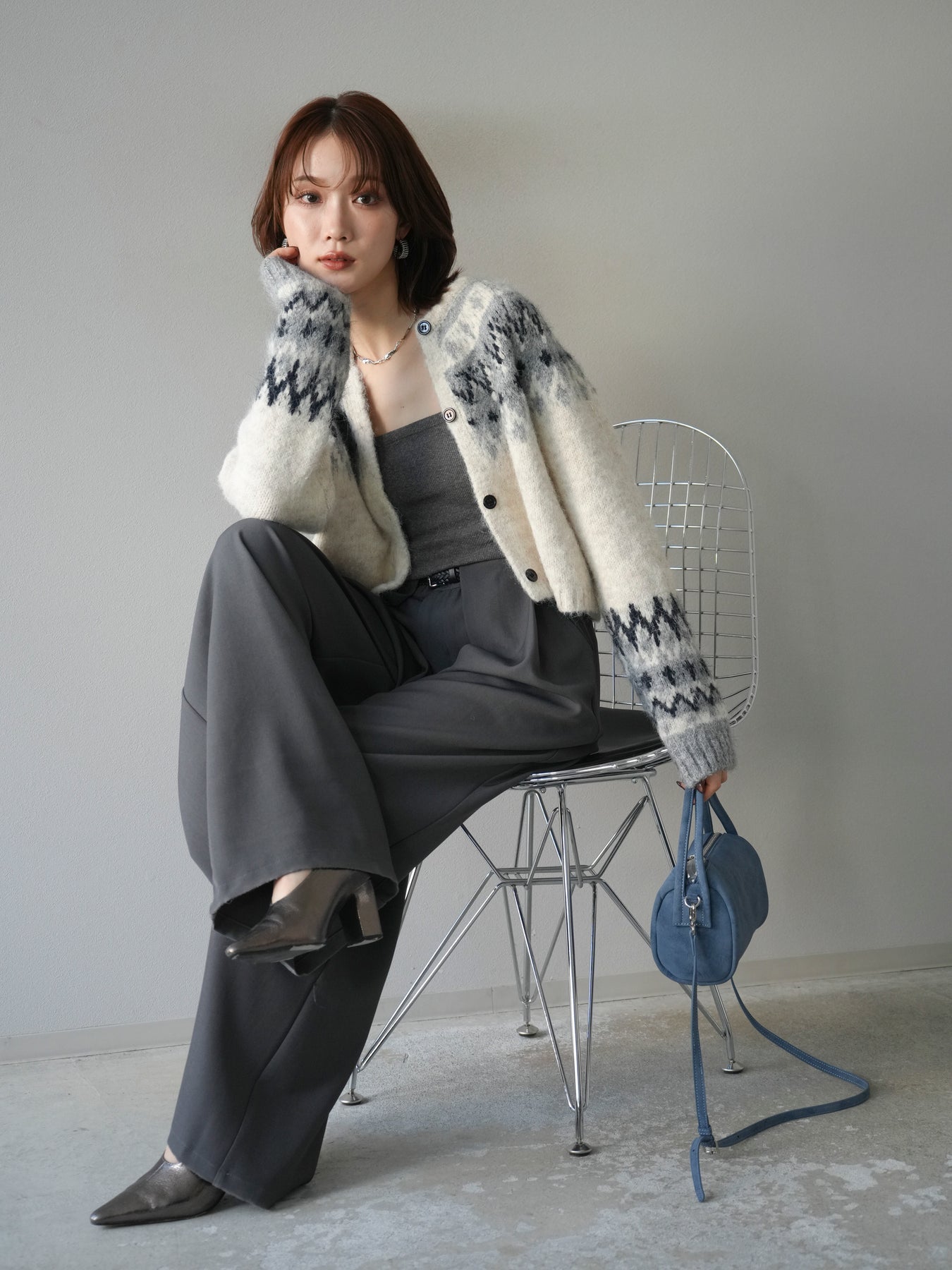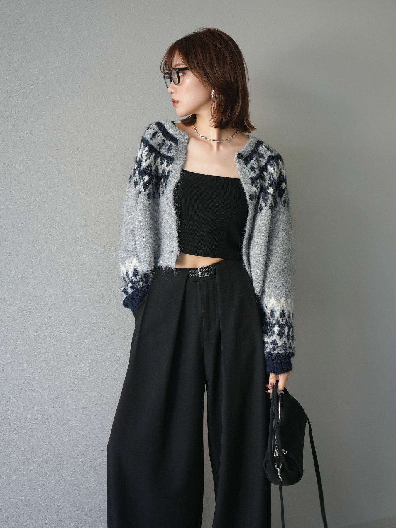 [SET]求心柄クロップドニットカーディガン+選べるアクセセット(2set)
