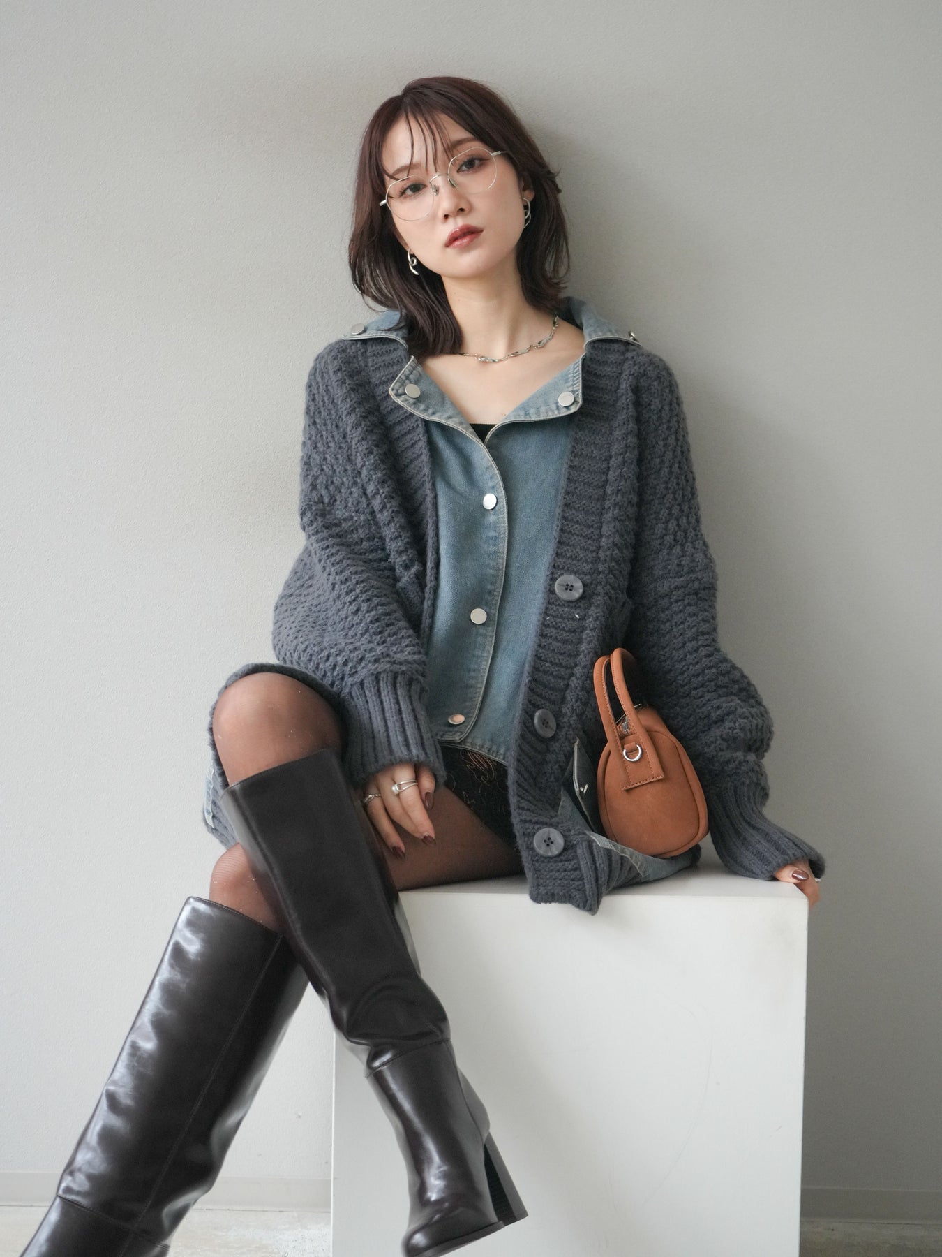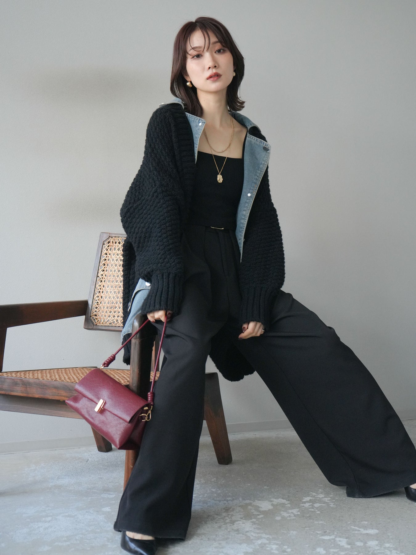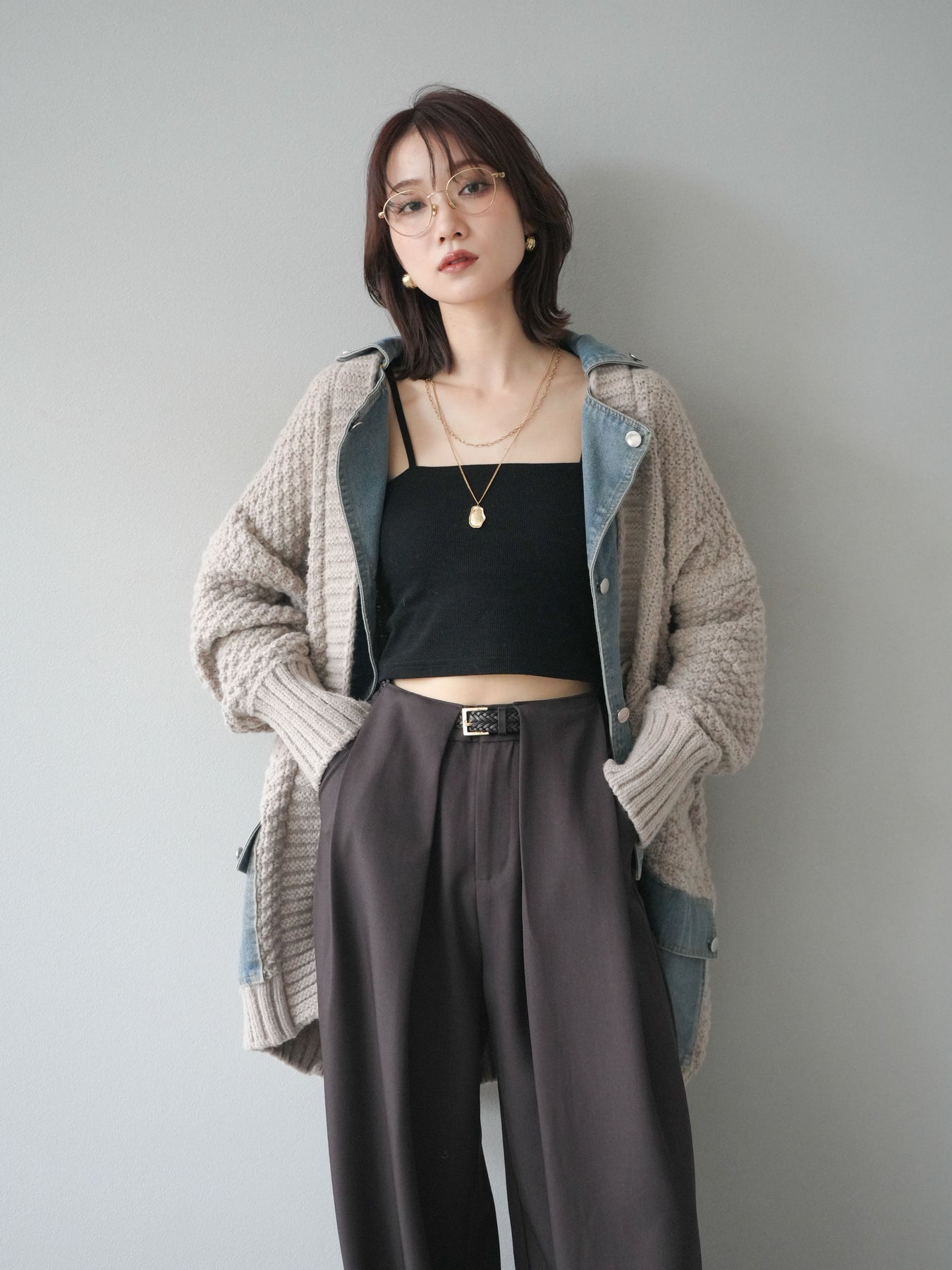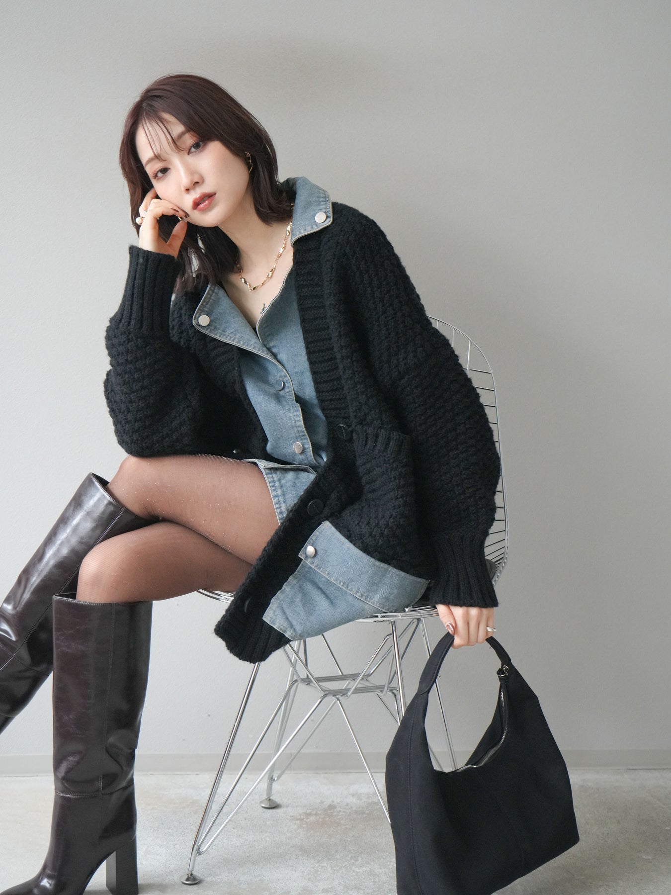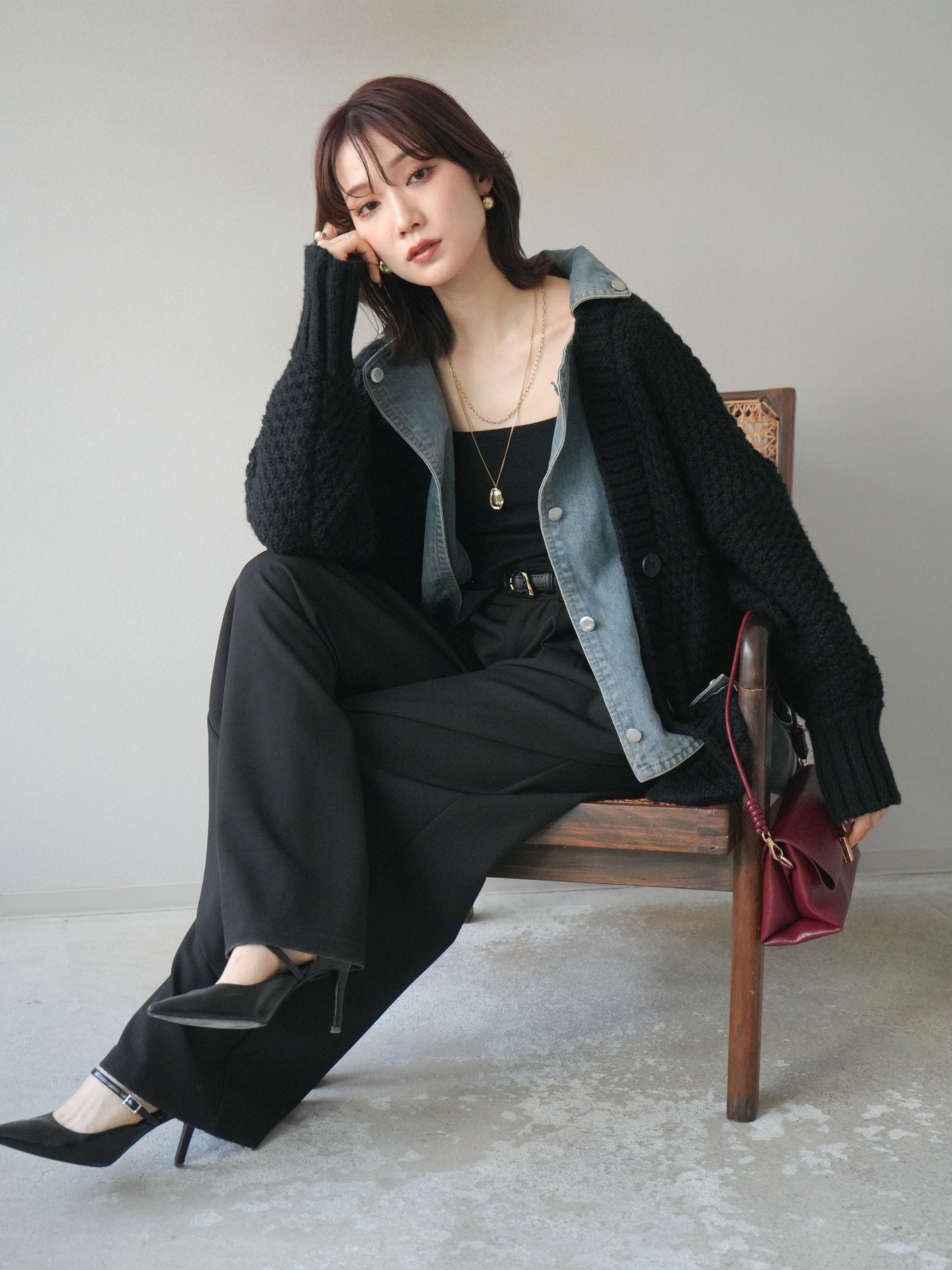 デニムとニットをドッキングした、存在感抜群のケーブルカーディガン。 ざっくりとしたケーブル編みと、デニムの切り替えが絶妙なバランスで、羽織るだけでこなれた印象を演出します。 ボリュームのあるシルエットながら軽やかな着心地で、アウターライクに使える一枚。 デニムの襟やポケットディテールがカジュアルさをプラスし、シンプルなコーディネートにも映えるデザインです。 季節の変わり目にさっと羽織れる、トレンド感のある万能アイテム。 ※ボトムス、キャミソール(インナー)以外の商品は一律でインナーは付属していません。