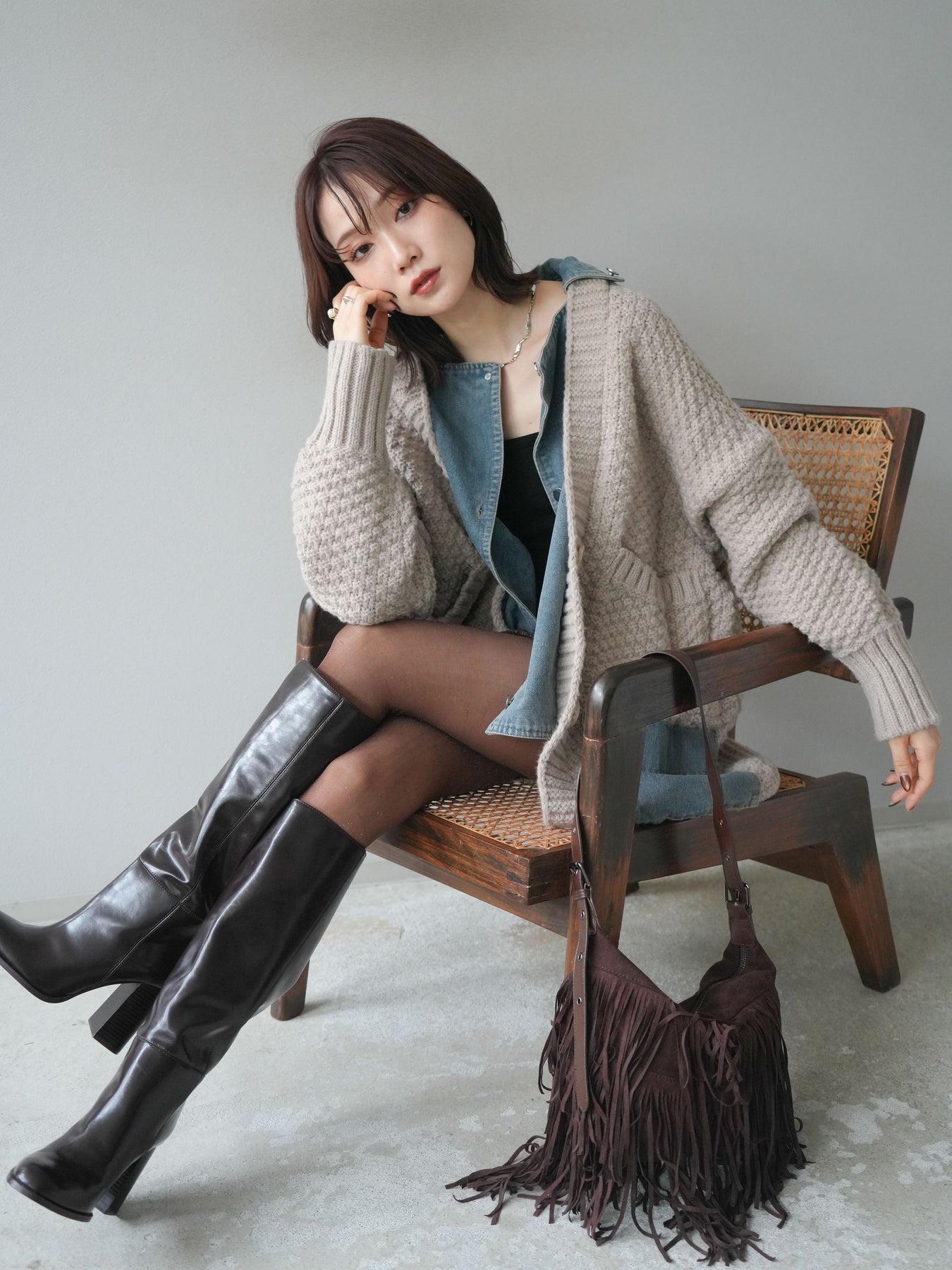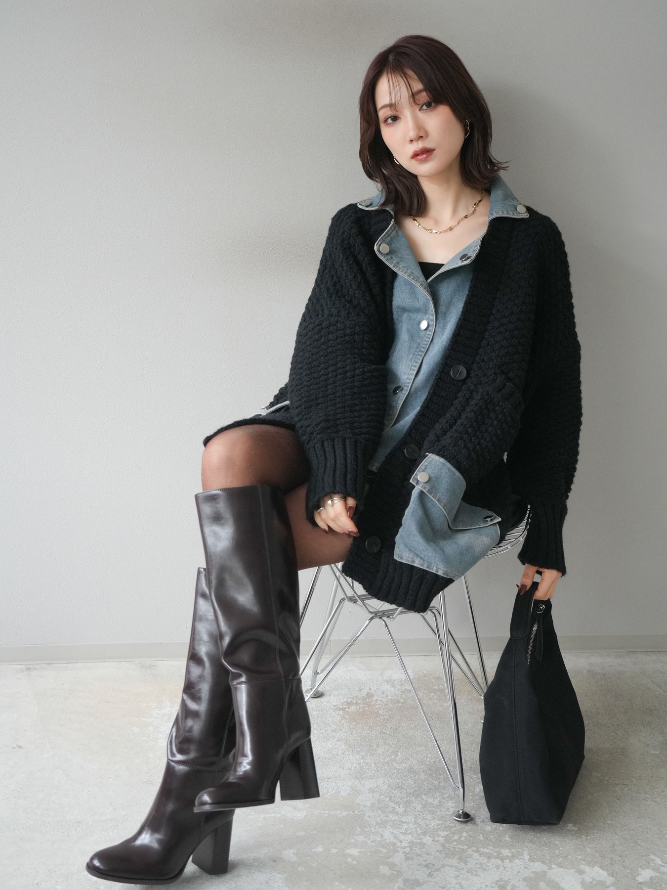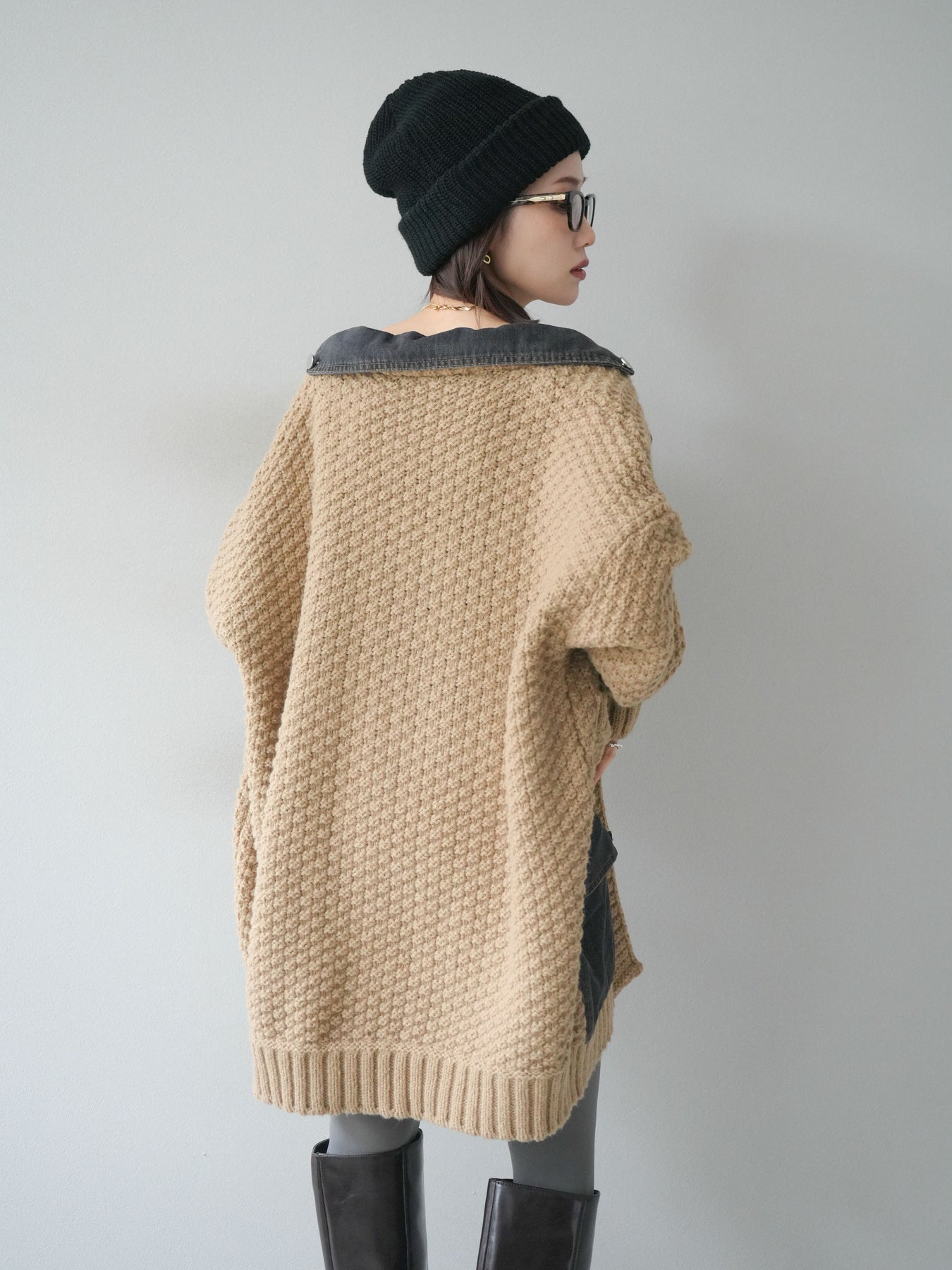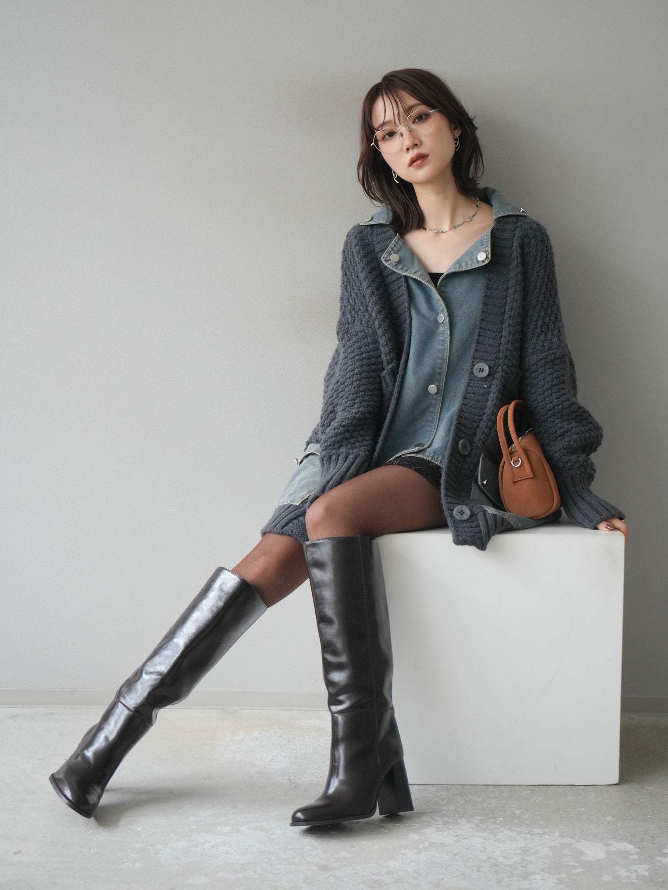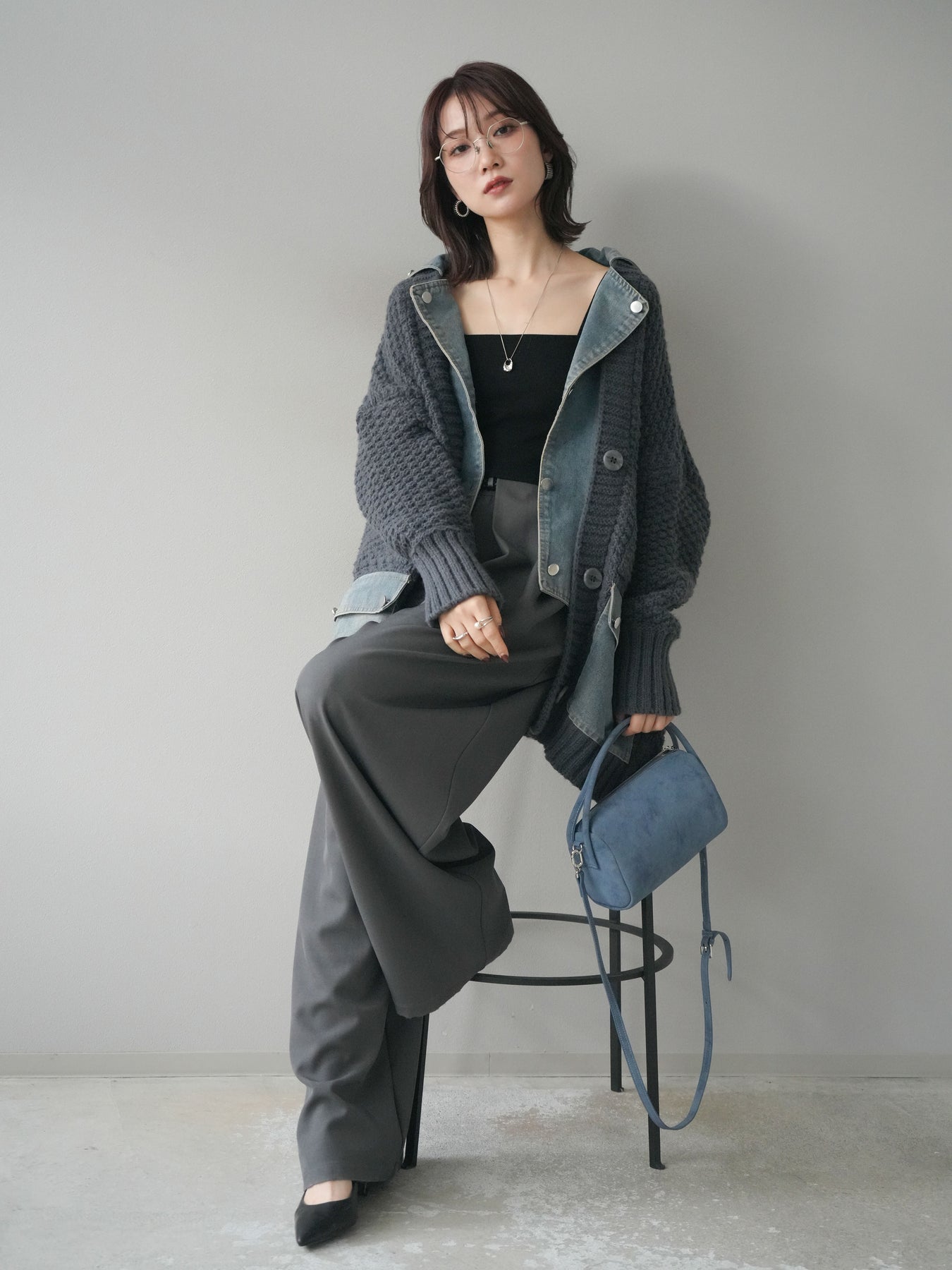 デニムとニットをドッキングした、存在感抜群のケーブルカーディガン。 ざっくりとしたケーブル編みと、デニムの切り替えが絶妙なバランスで、羽織るだけでこなれた印象を演出します。 ボリュームのあるシルエットながら軽やかな着心地で、アウターライクに使える一枚。 デニムの襟やポケットディテールがカジュアルさをプラスし、シンプルなコーディネートにも映えるデザインです。 季節の変わり目にさっと羽織れる、トレンド感のある万能アイテム。 ※ボトムス、キャミソール(インナー)以外の商品は一律でインナーは付属していません。