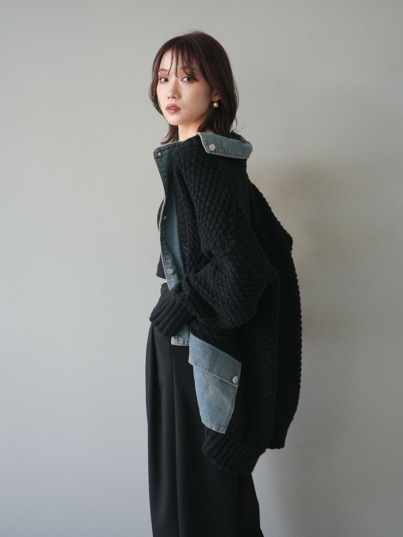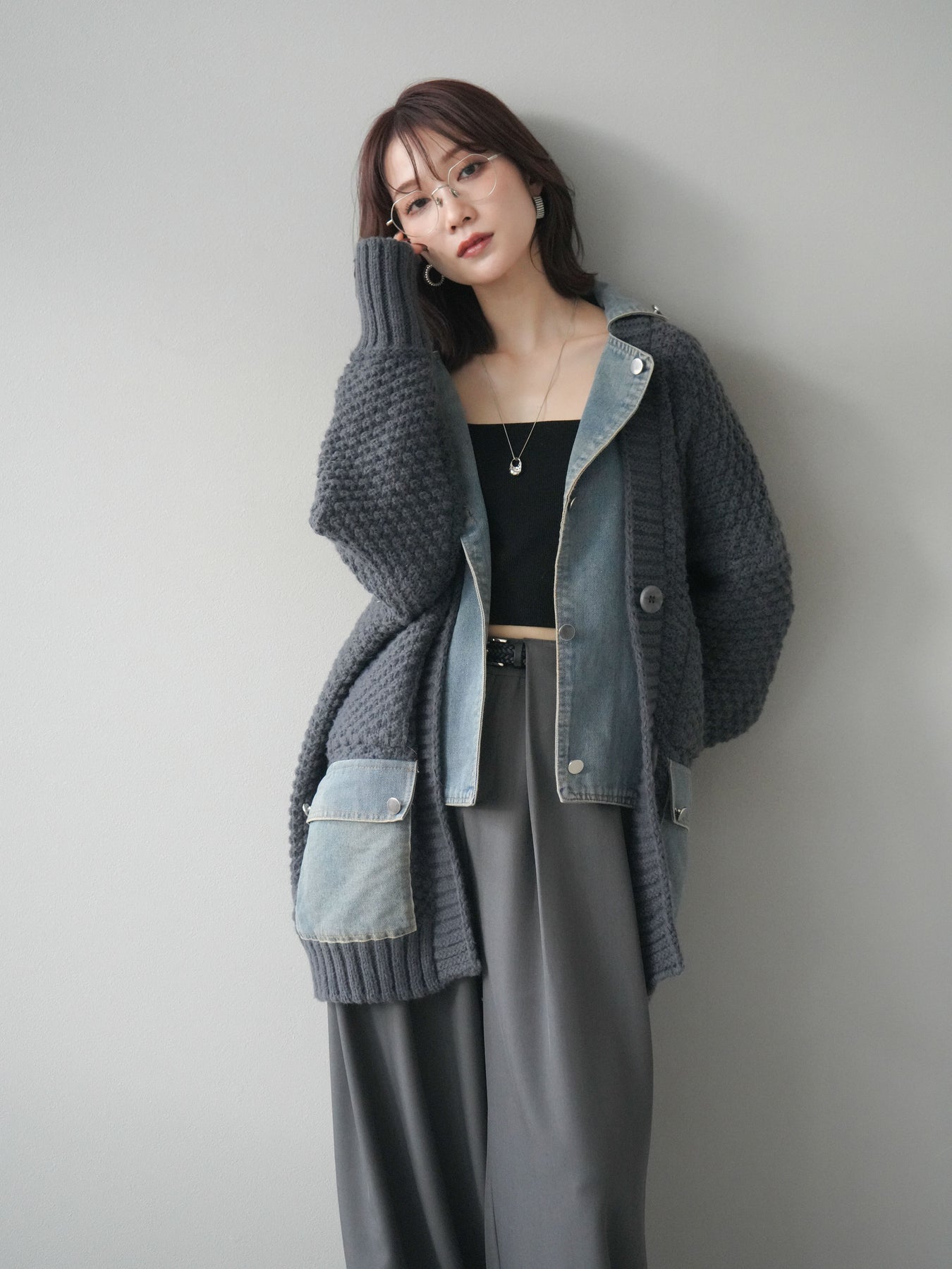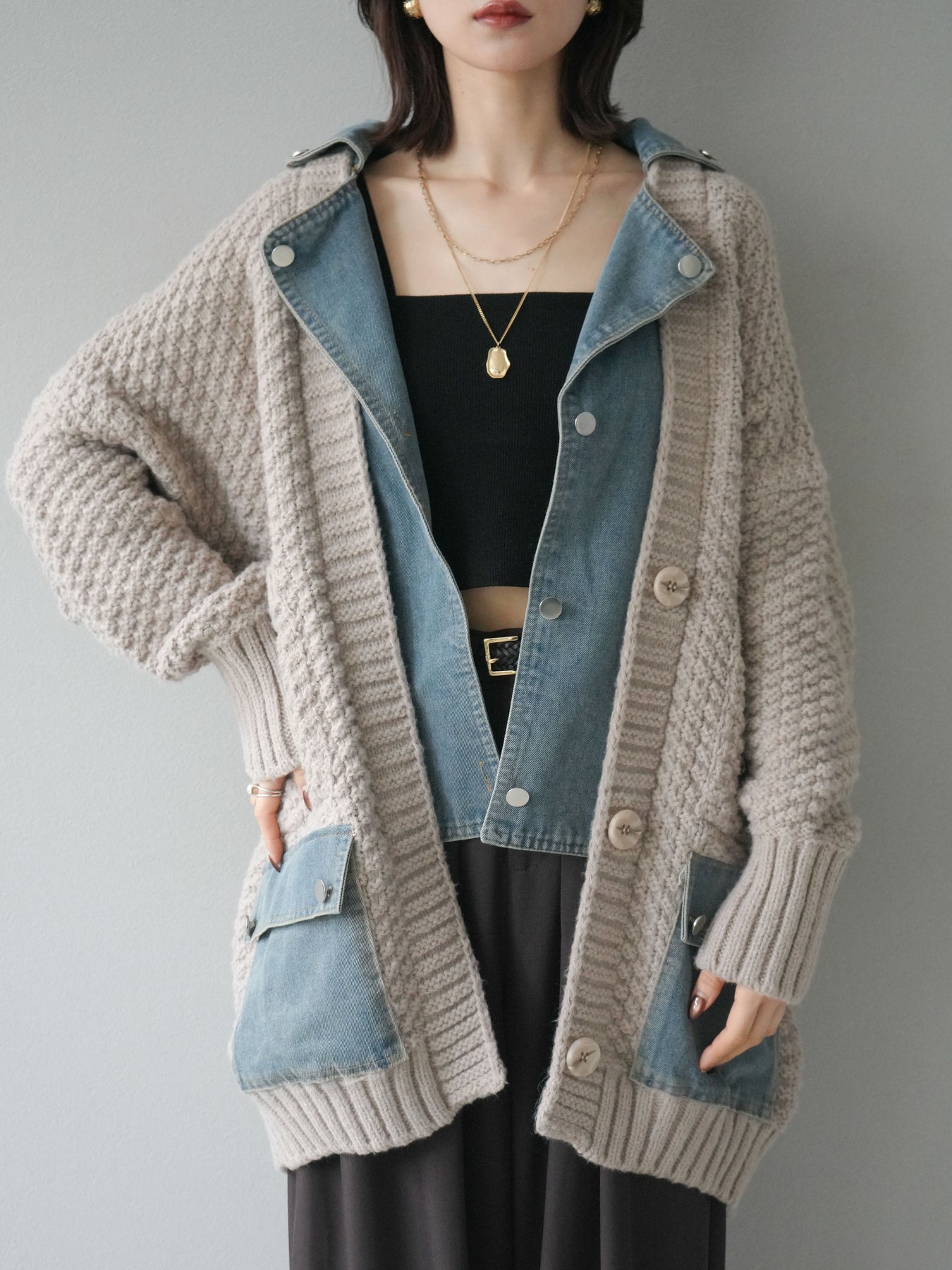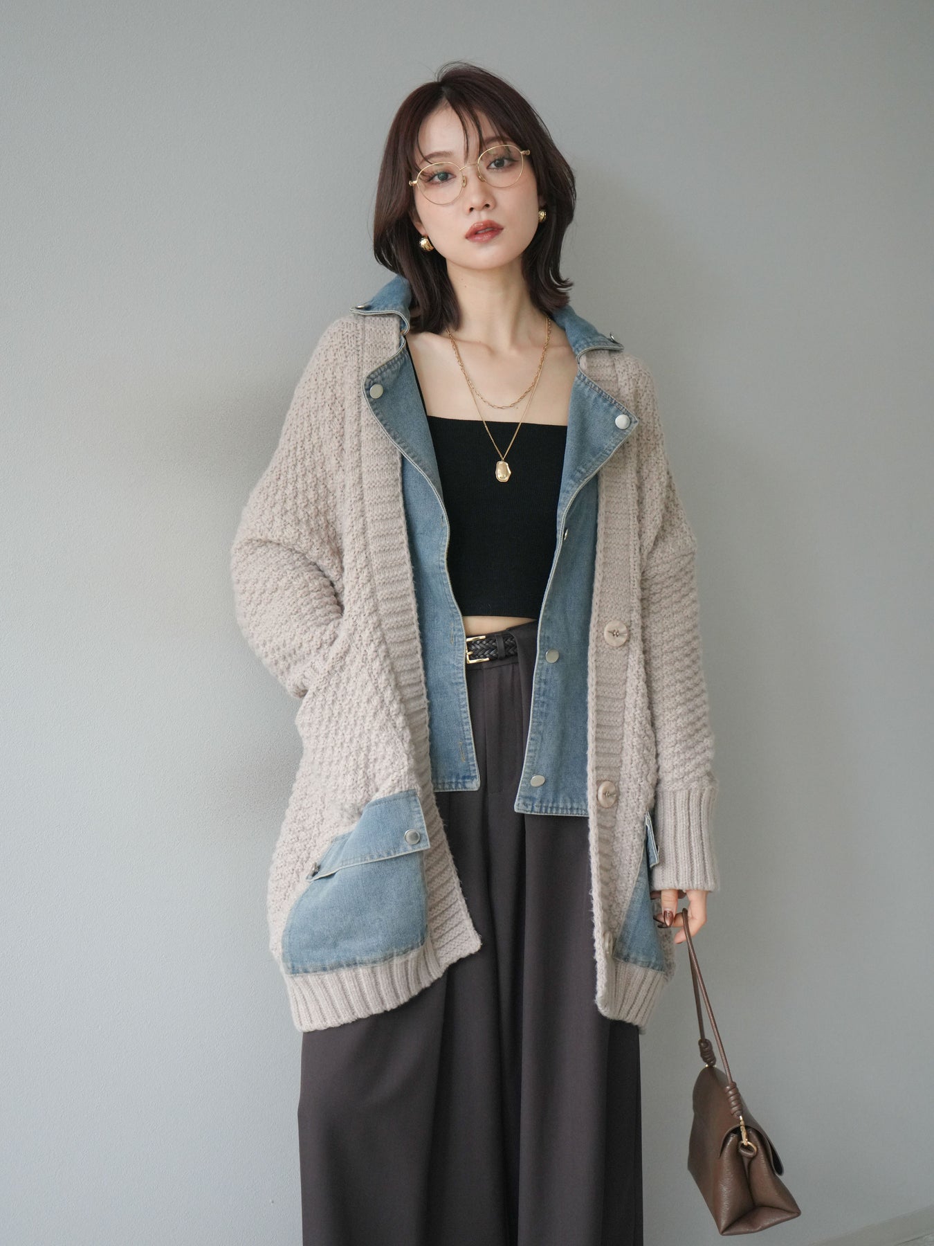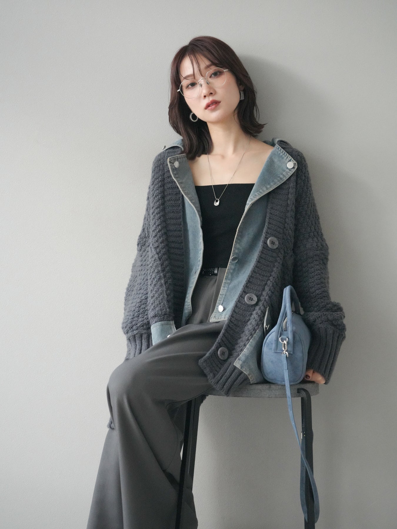 [予約]デニム襟レイヤードニットジャケット + [予約]デニム襟レイヤードニットジャケット