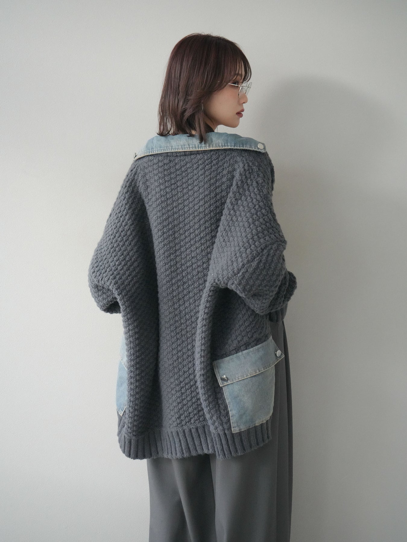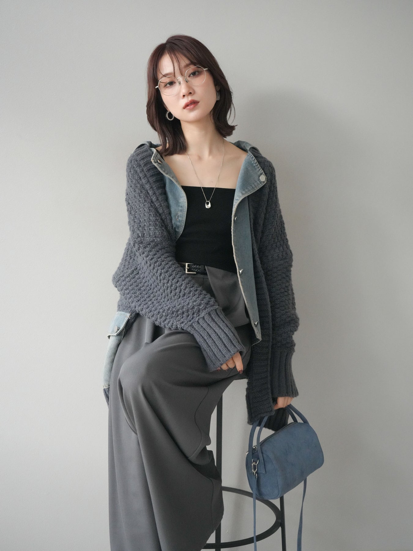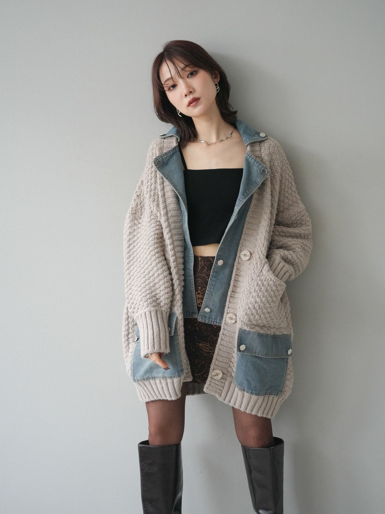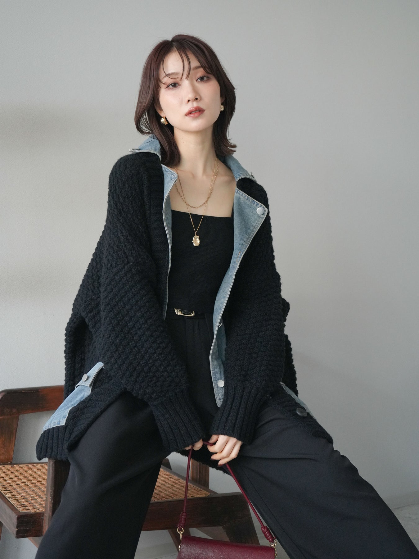 [予約]デニム襟レイヤードニットジャケット + [予約]デニム襟レイヤードニットジャケット
