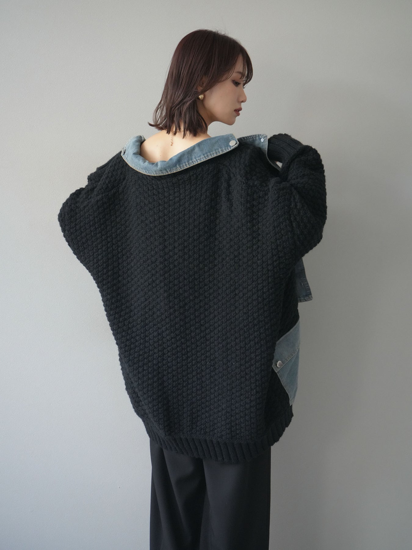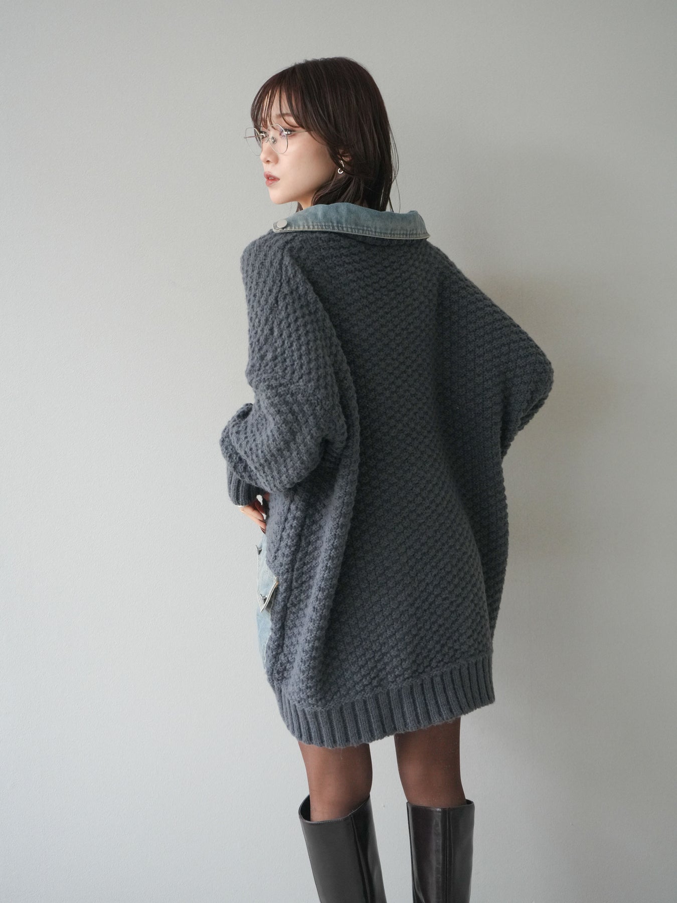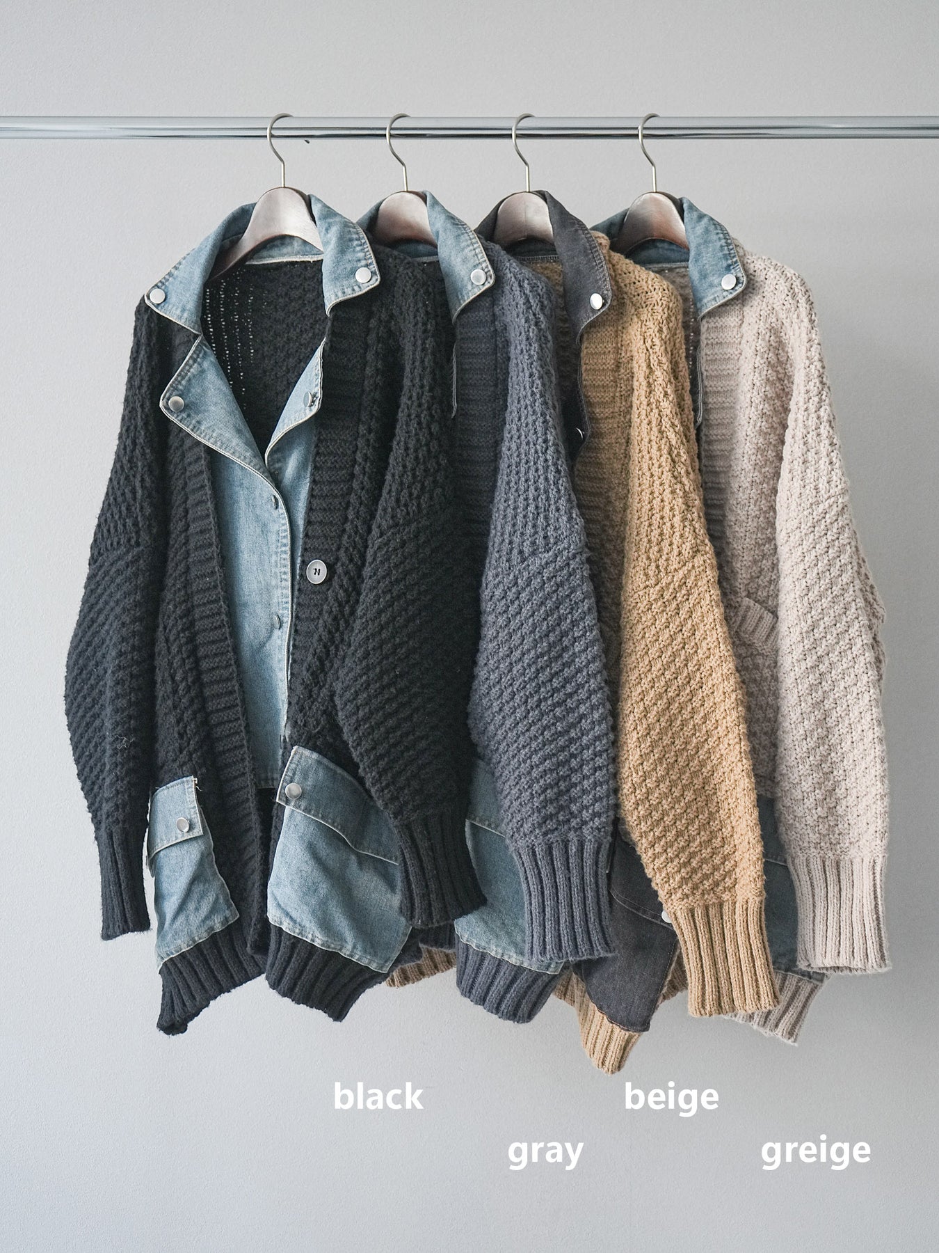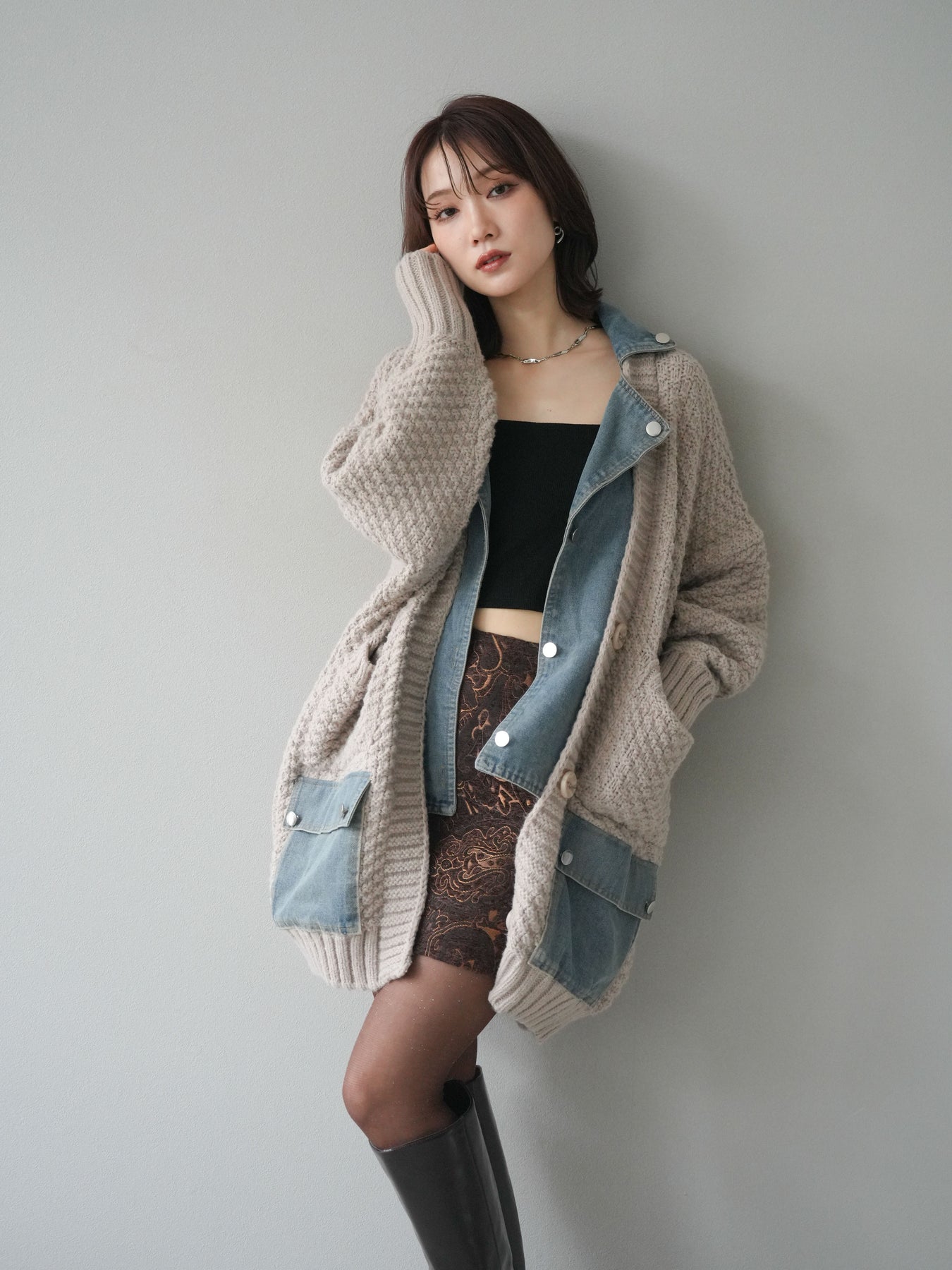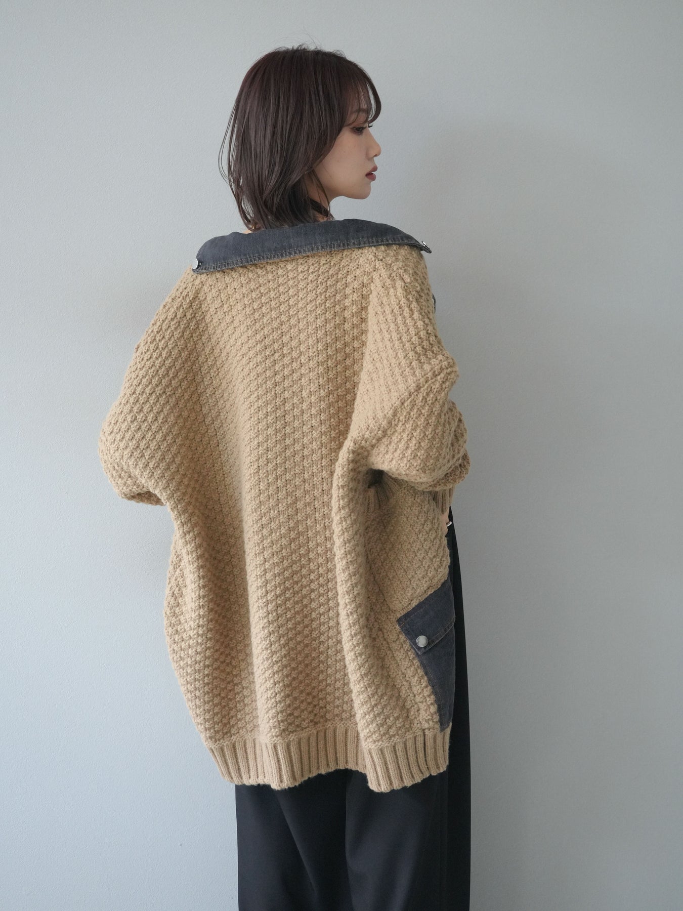 [予約]デニム襟レイヤードニットジャケット + [予約]デニム襟レイヤードニットジャケット