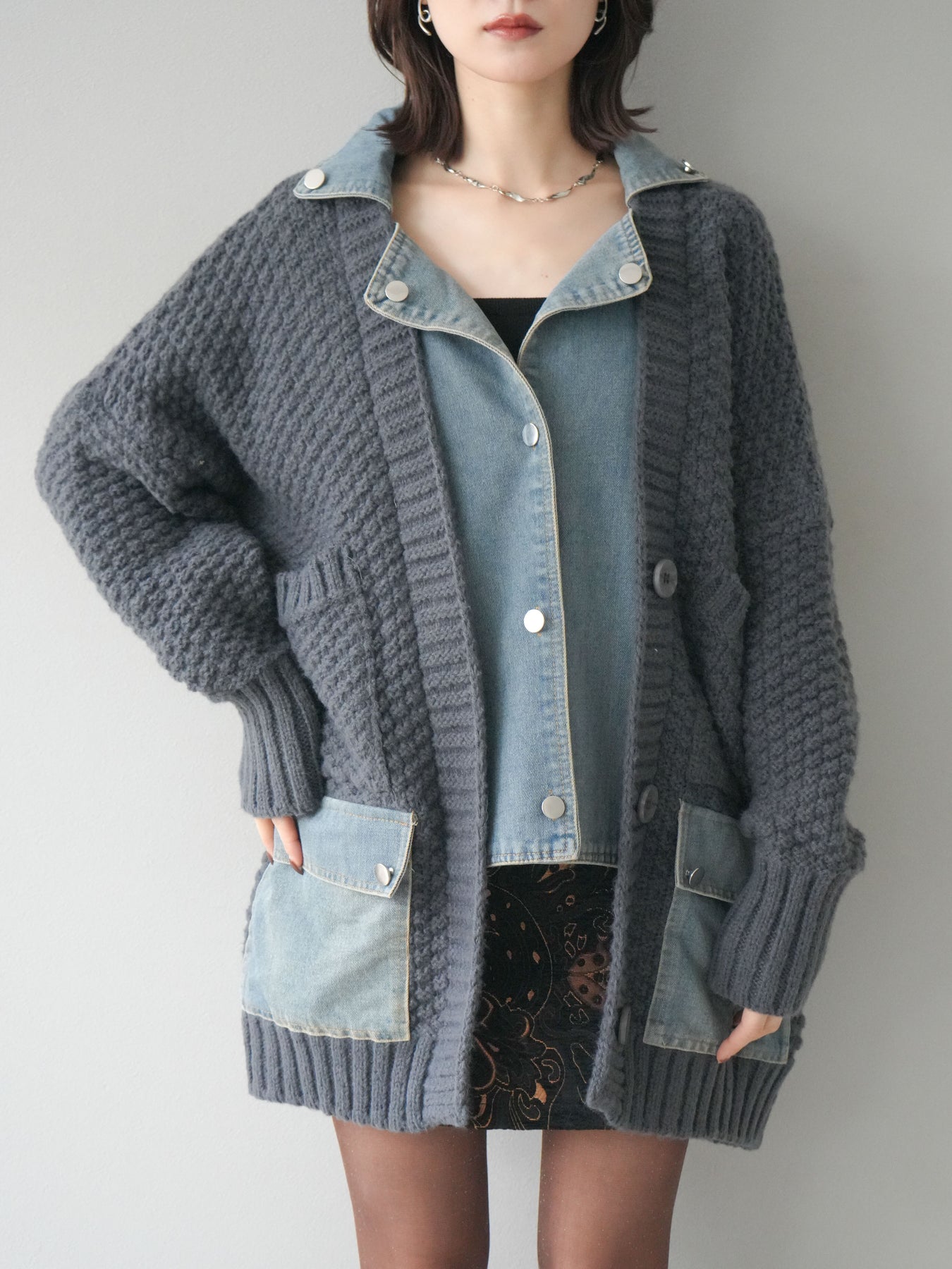 [SET]デニム襟レイヤードニットジャケット+デニム襟レイヤードニットジャケット(2set)