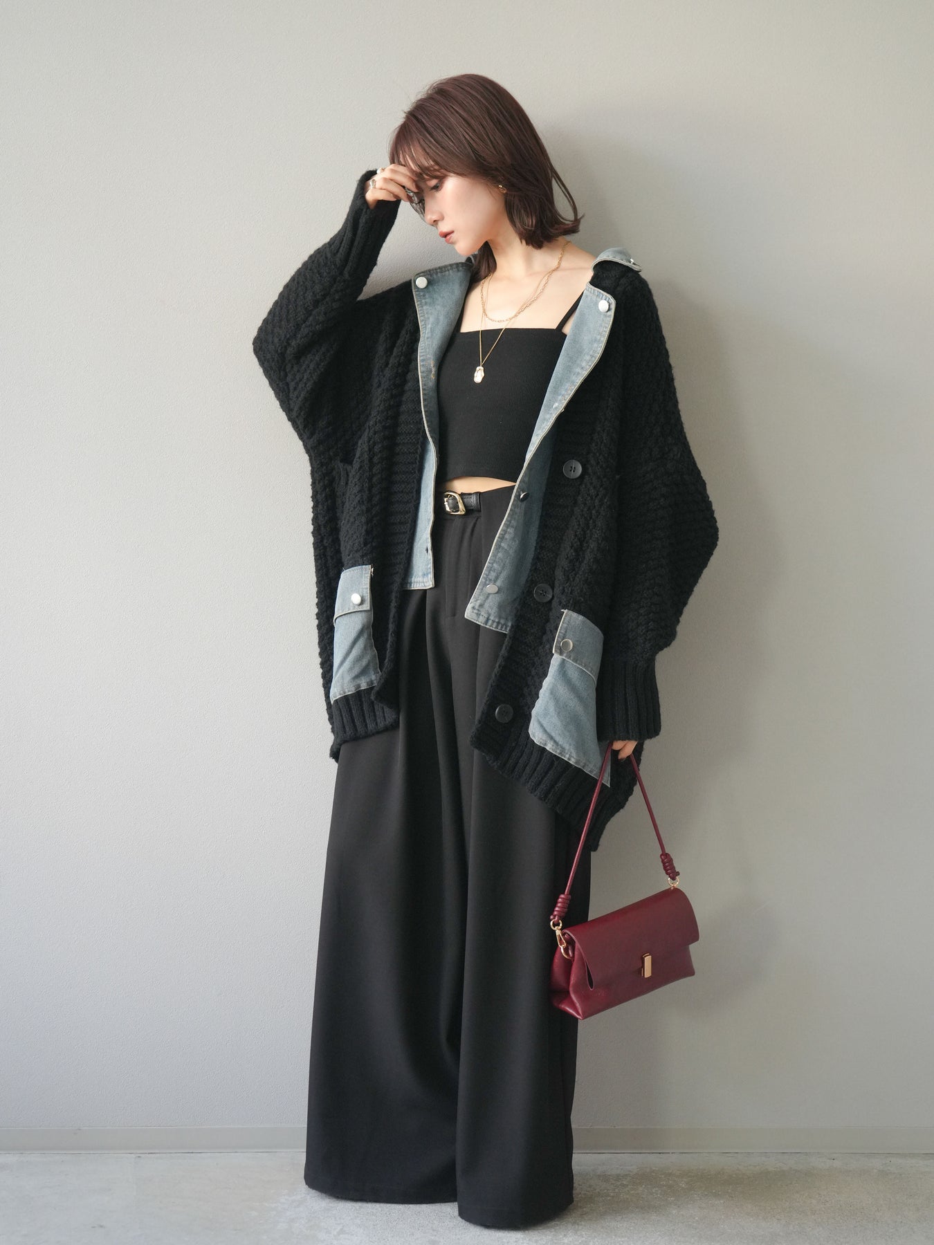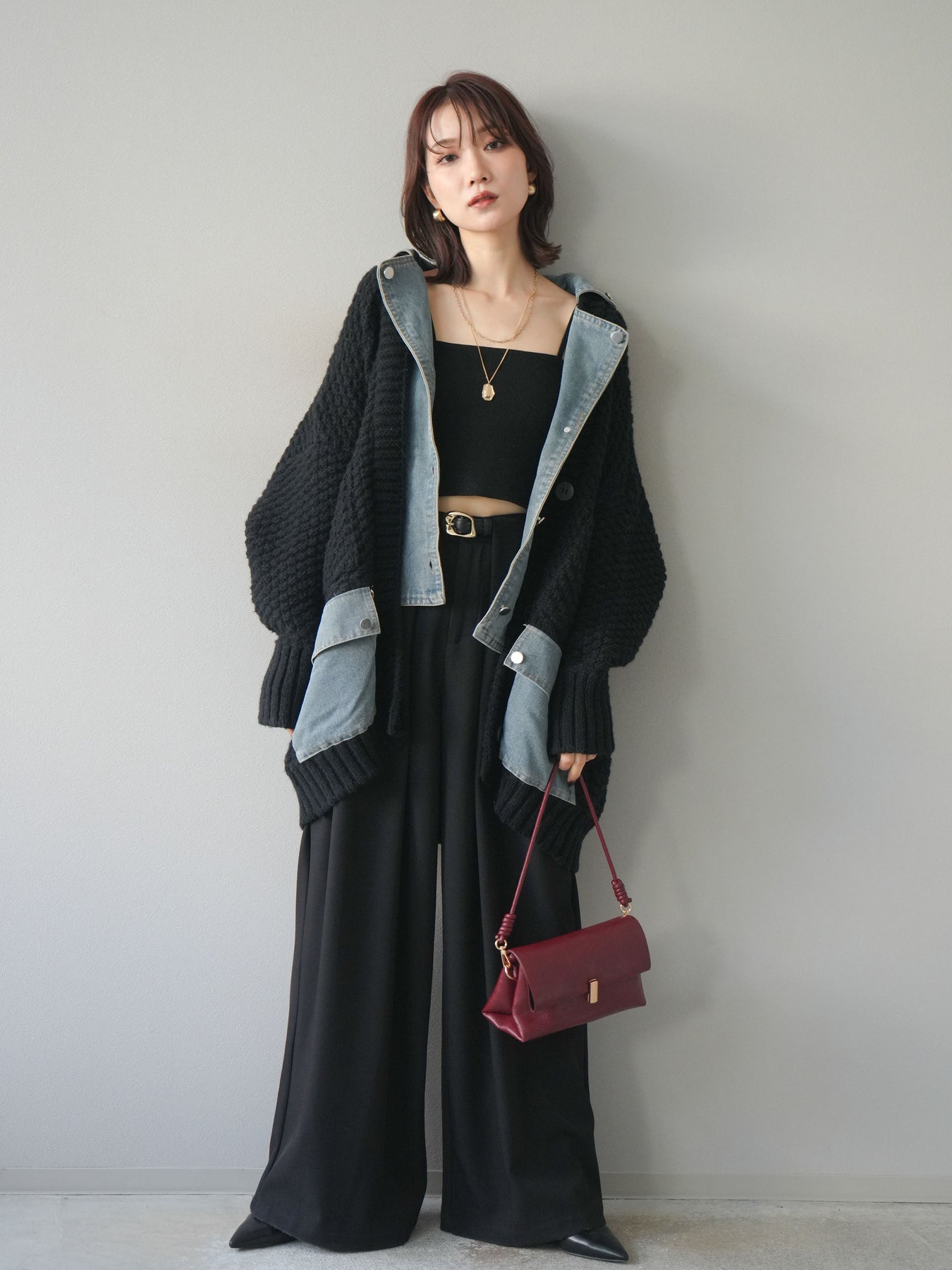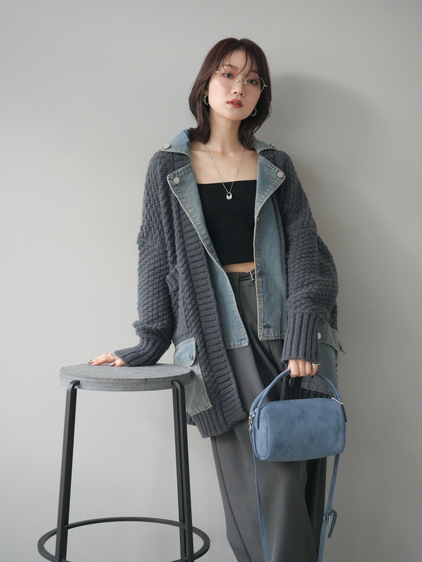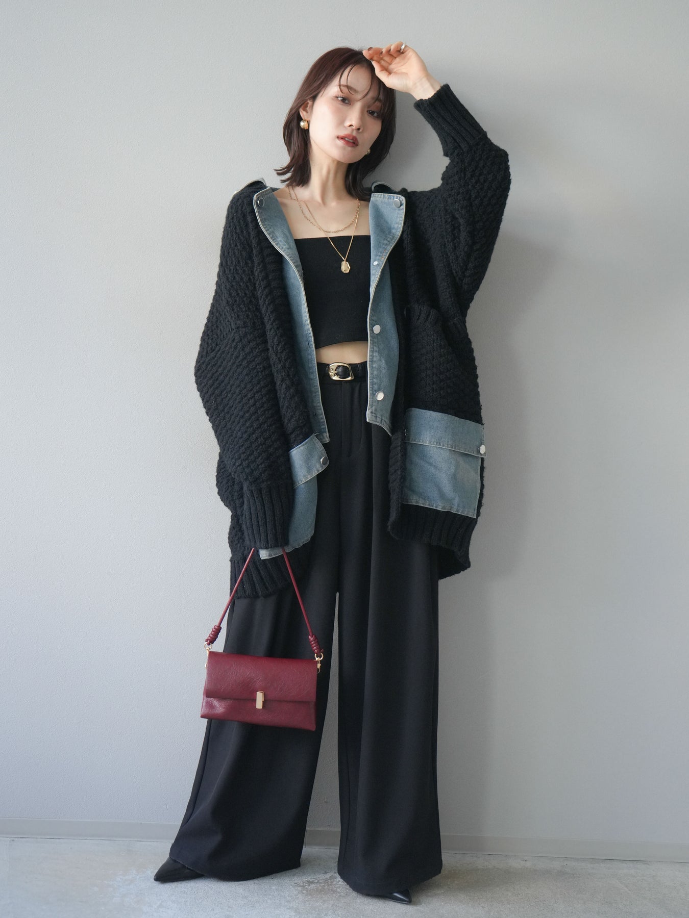 デニムとニットをドッキングした、存在感抜群のケーブルカーディガン。 ざっくりとしたケーブル編みと、デニムの切り替えが絶妙なバランスで、羽織るだけでこなれた印象を演出します。 ボリュームのあるシルエットながら軽やかな着心地で、アウターライクに使える一枚。 デニムの襟やポケットディテールがカジュアルさをプラスし、シンプルなコーディネートにも映えるデザインです。 季節の変わり目にさっと羽織れる、トレンド感のある万能アイテム。 ※ボトムス、キャミソール(インナー)以外の商品は一律でインナーは付属していません。
