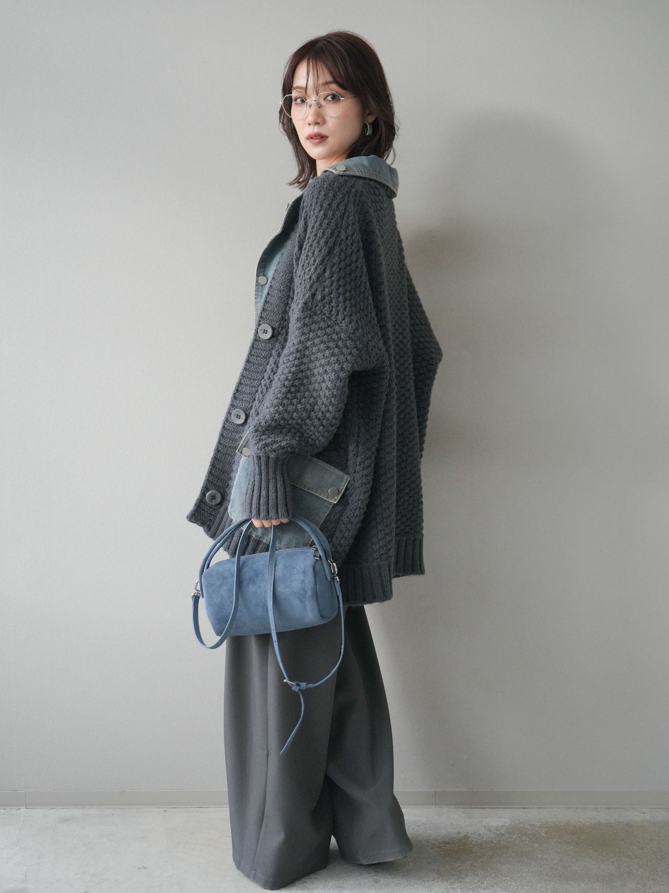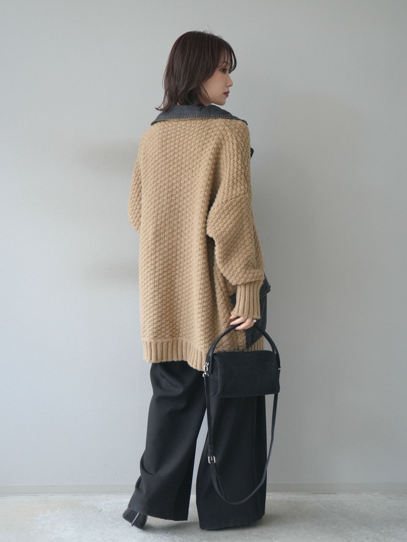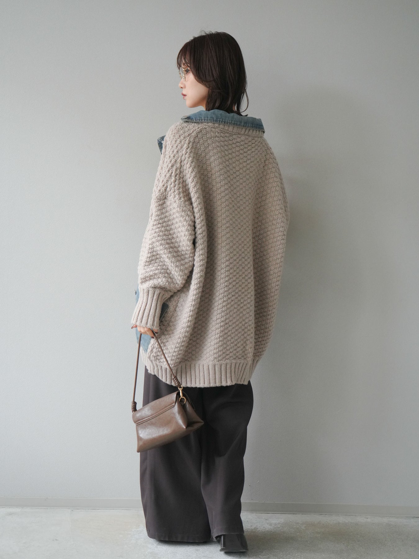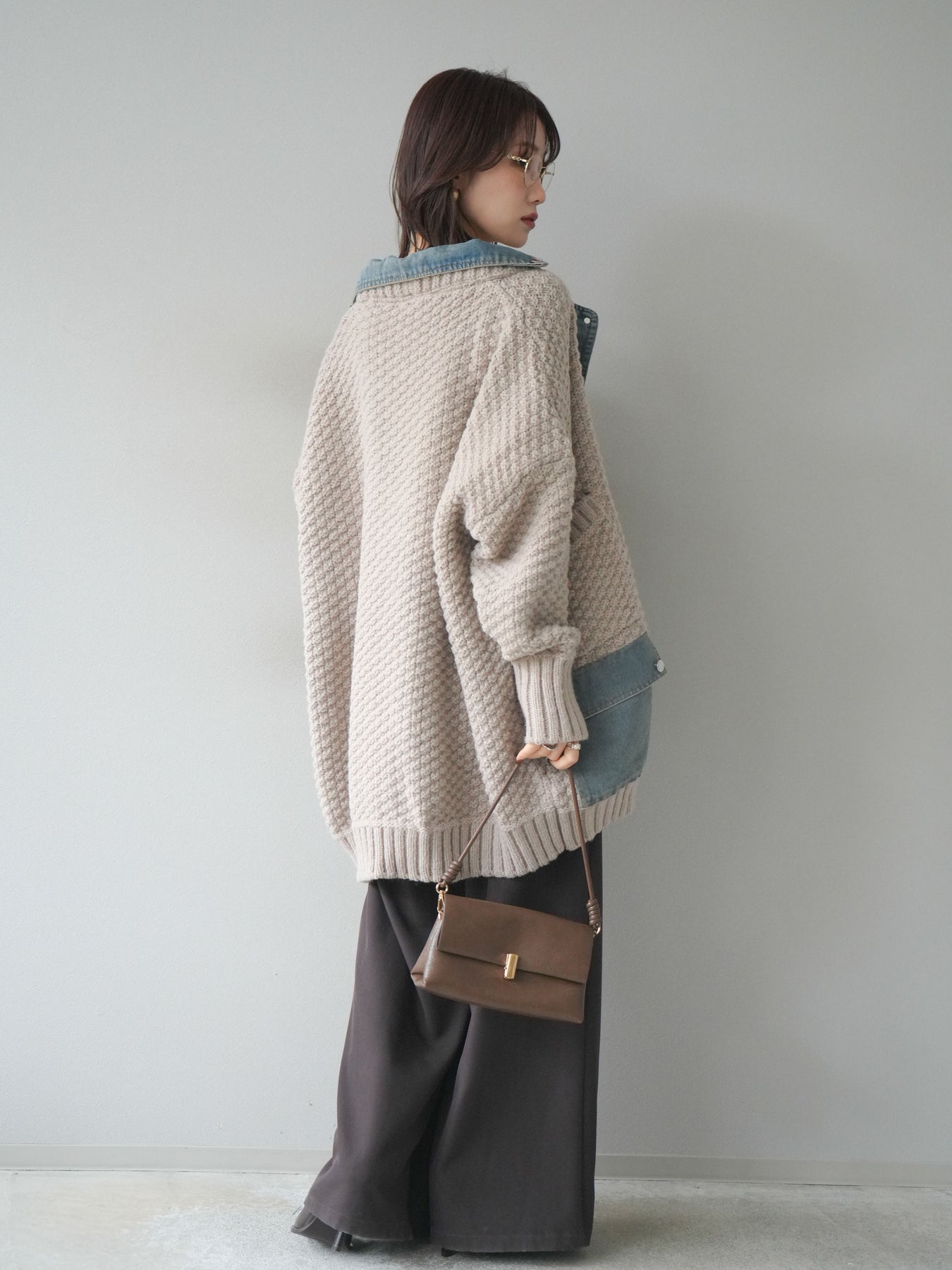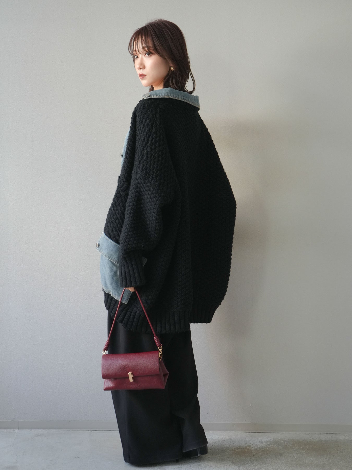 デニムとニットをドッキングした、存在感抜群のケーブルカーディガン。 ざっくりとしたケーブル編みと、デニムの切り替えが絶妙なバランスで、羽織るだけでこなれた印象を演出します。 ボリュームのあるシルエットながら軽やかな着心地で、アウターライクに使える一枚。 デニムの襟やポケットディテールがカジュアルさをプラスし、シンプルなコーディネートにも映えるデザインです。 季節の変わり目にさっと羽織れる、トレンド感のある万能アイテム。 ※ボトムス、キャミソール(インナー)以外の商品は一律でインナーは付属していません。