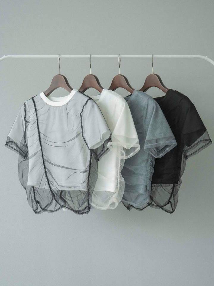 [予約]シャーリングチュールレイヤードTシャツ + [予約]シャーリングチュールレイヤードTシャツ