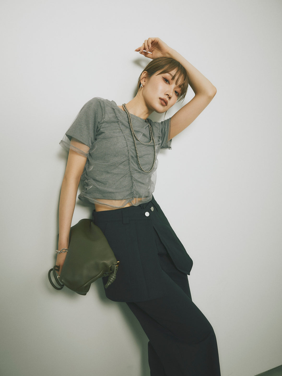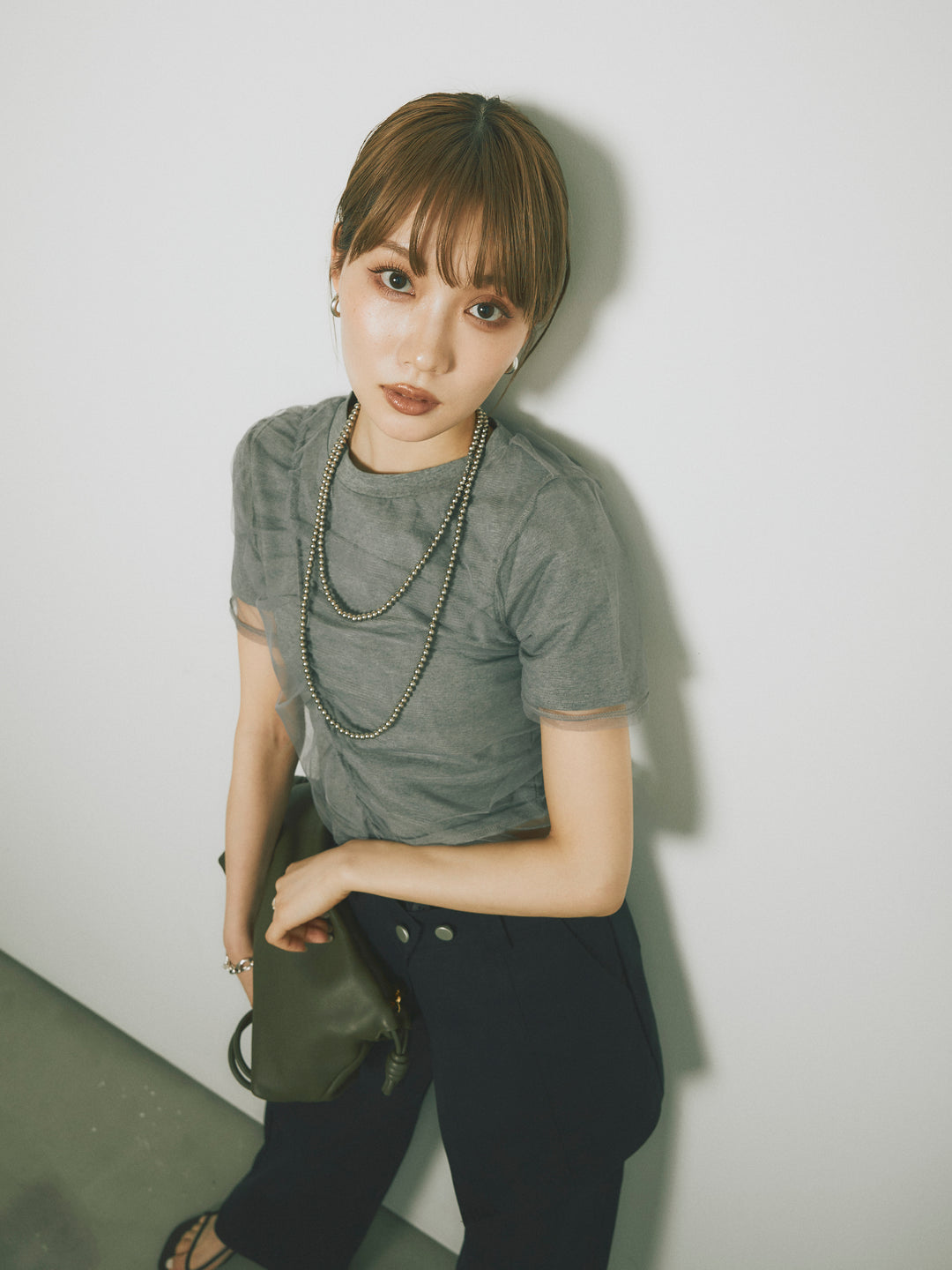 ◆ [予約]シャーリングチュールレイヤードTシャツ