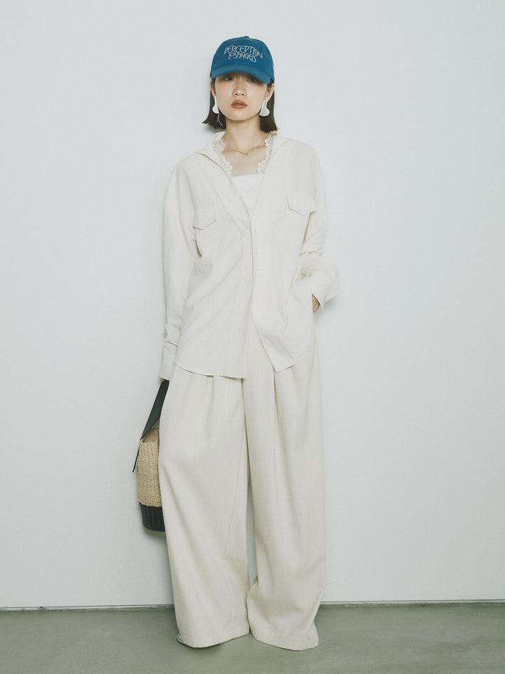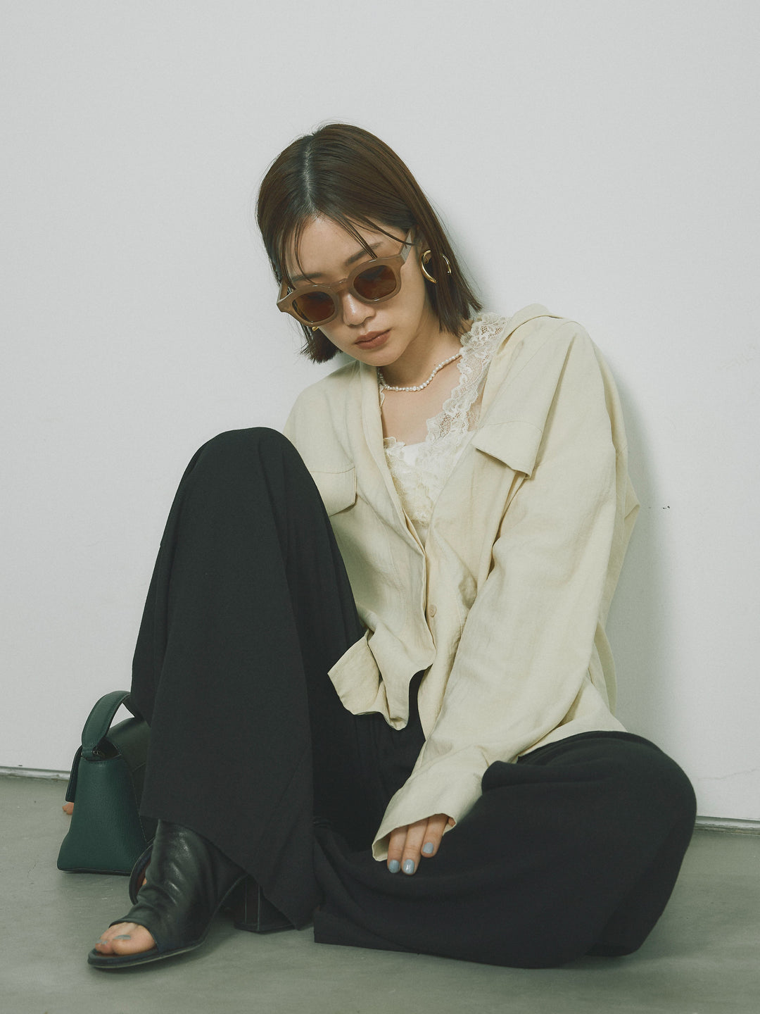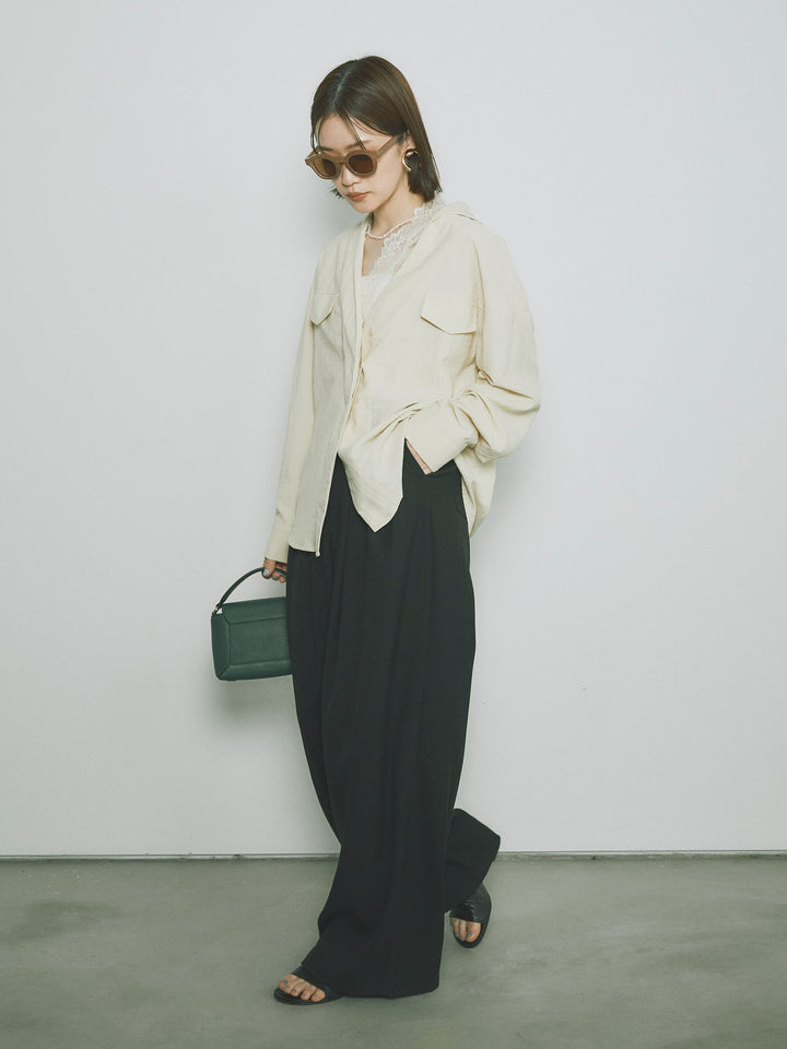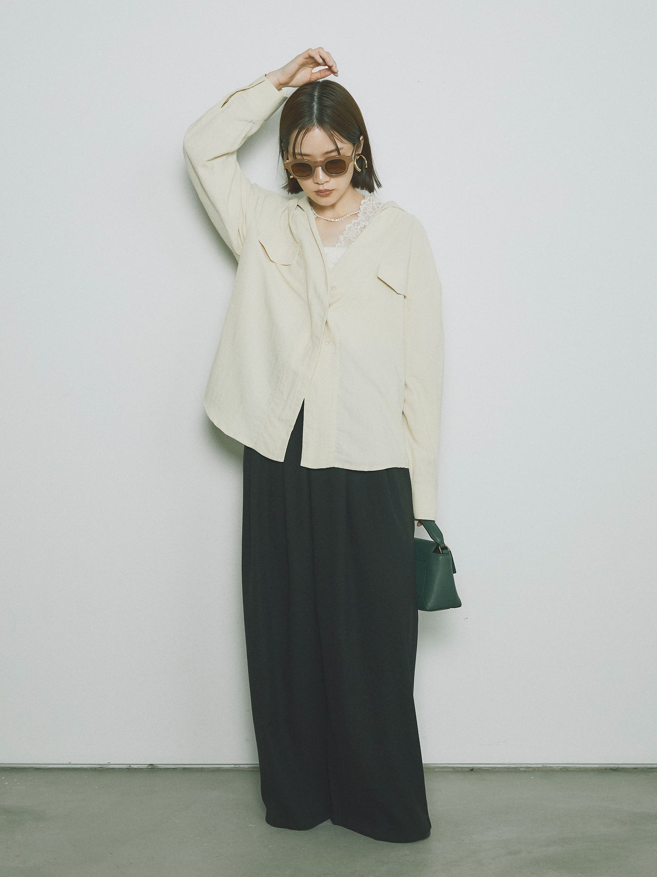 [SET]レースコンビ開襟シャツ+リネンタッチダブルタックワイドパンツ(2set)