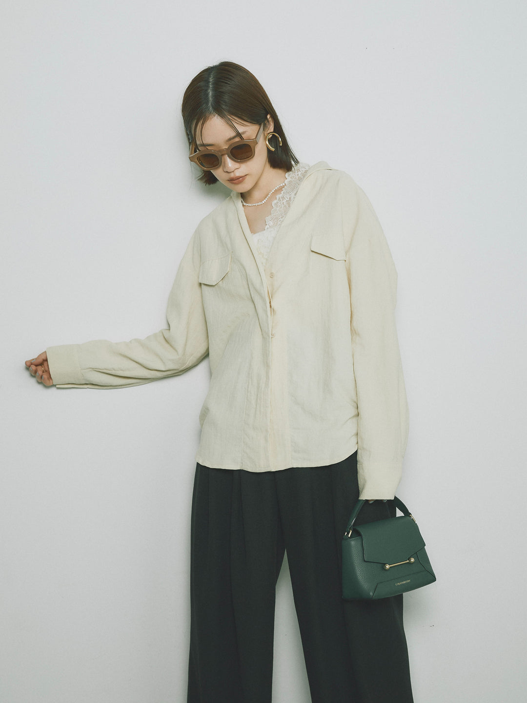フロント部分にレースをあしらった、フェミニンでエレガントな開襟シャツ。シャツのシンプルなデザインにレースのディテールが加わり、華やかさを演出します。軽やかな素材で、春夏にぴったりのアイテム。カジュアルにもきれいめにも着こなせる万能シャツです。 ※ボトムス、キャミソール(インナー)以外の商品は一律でインナーは付属していません。