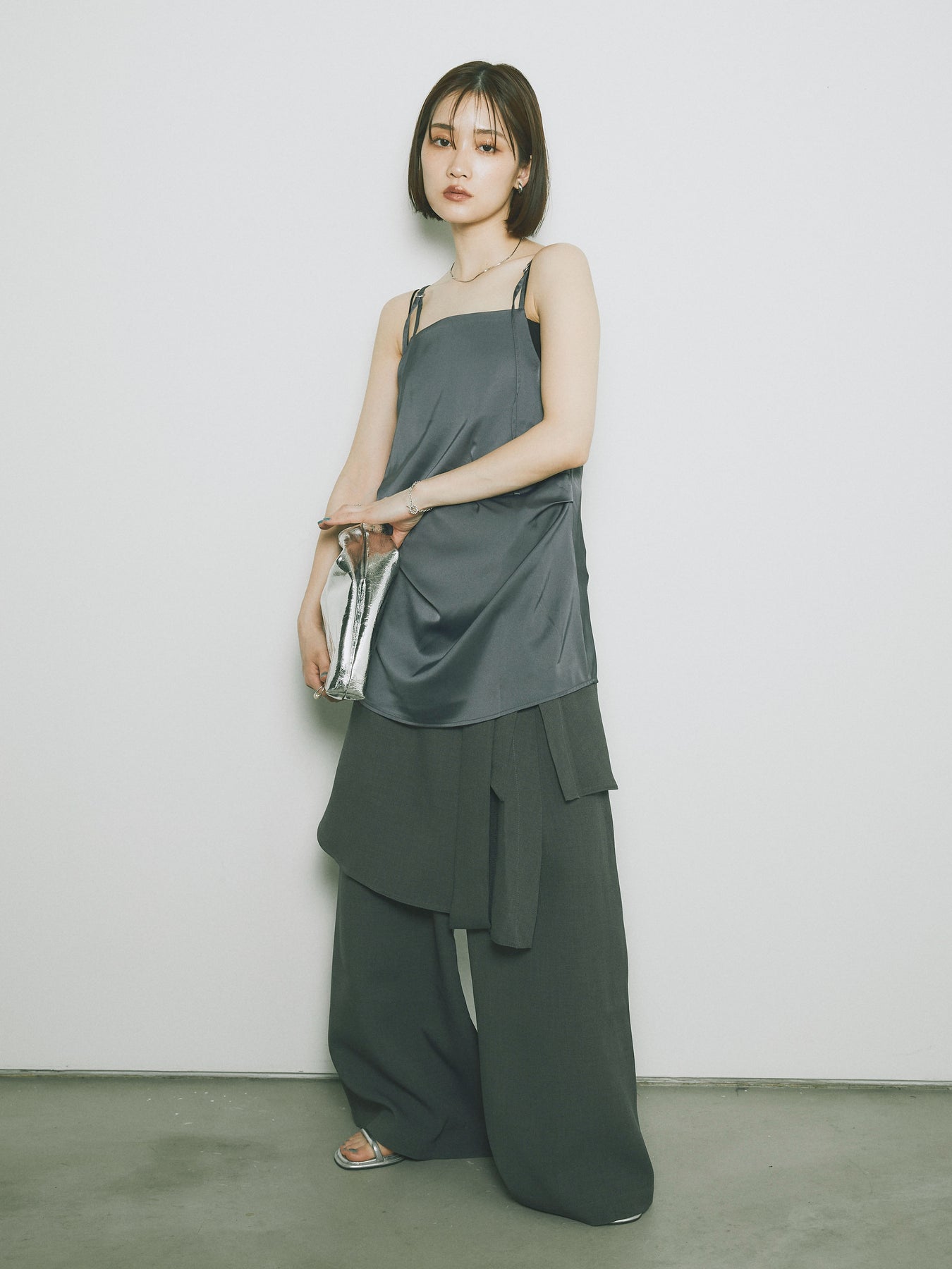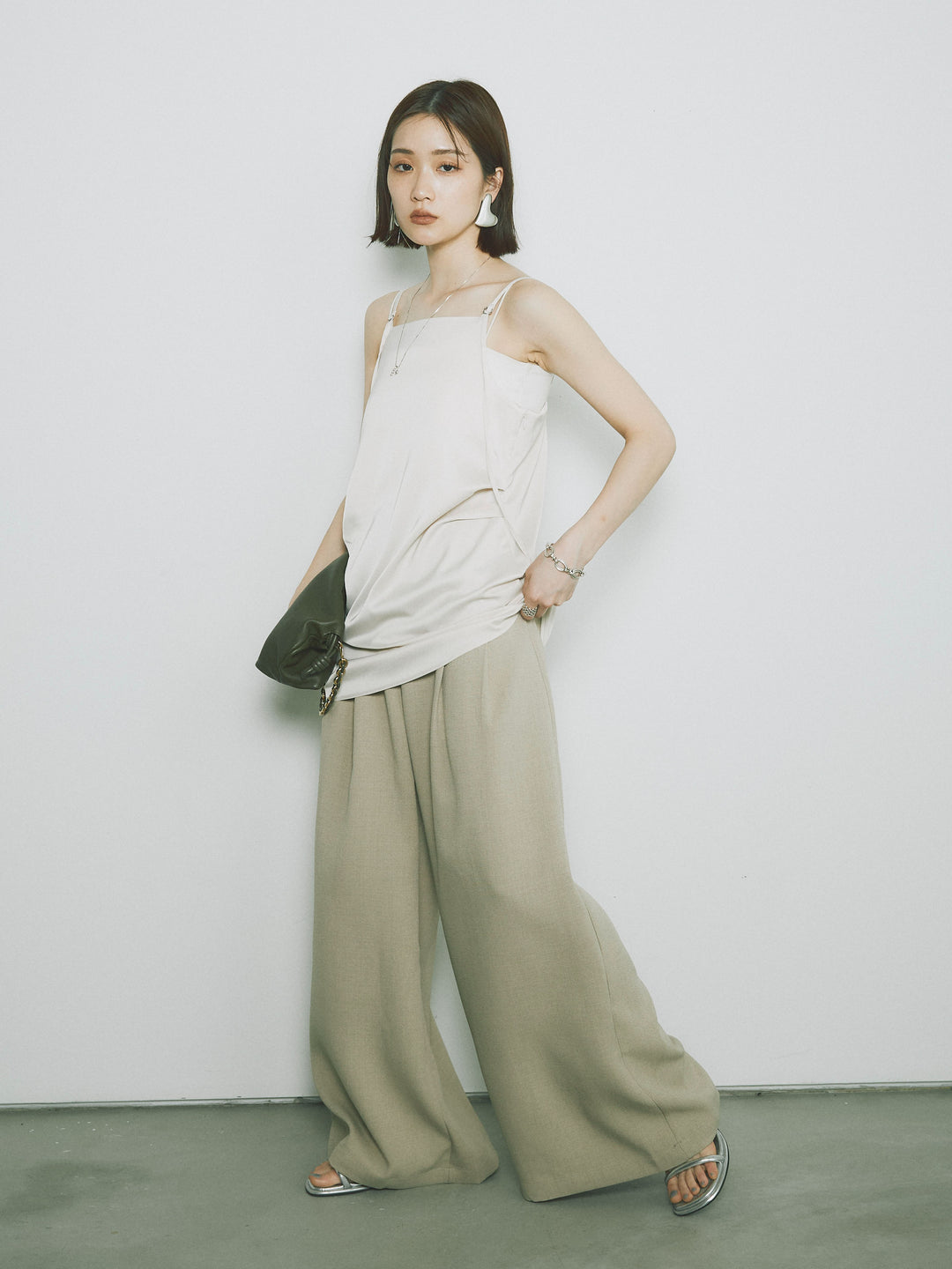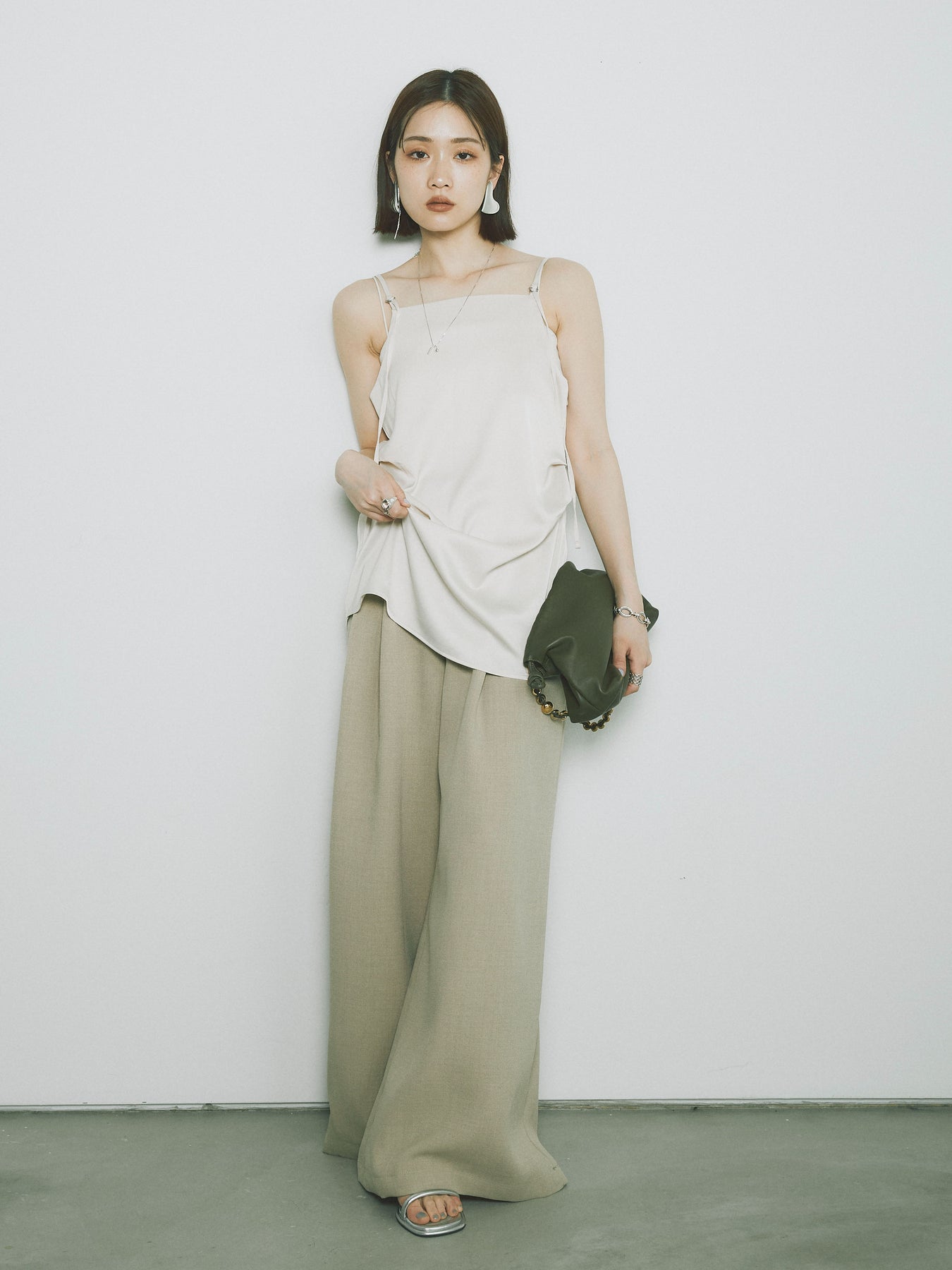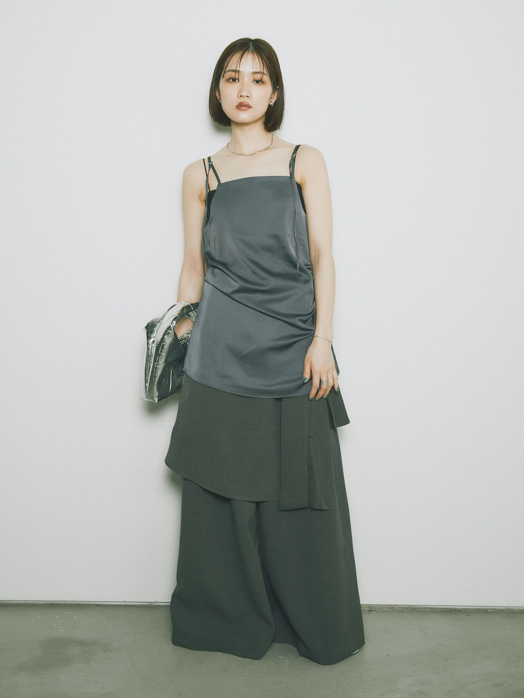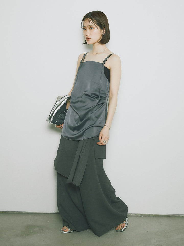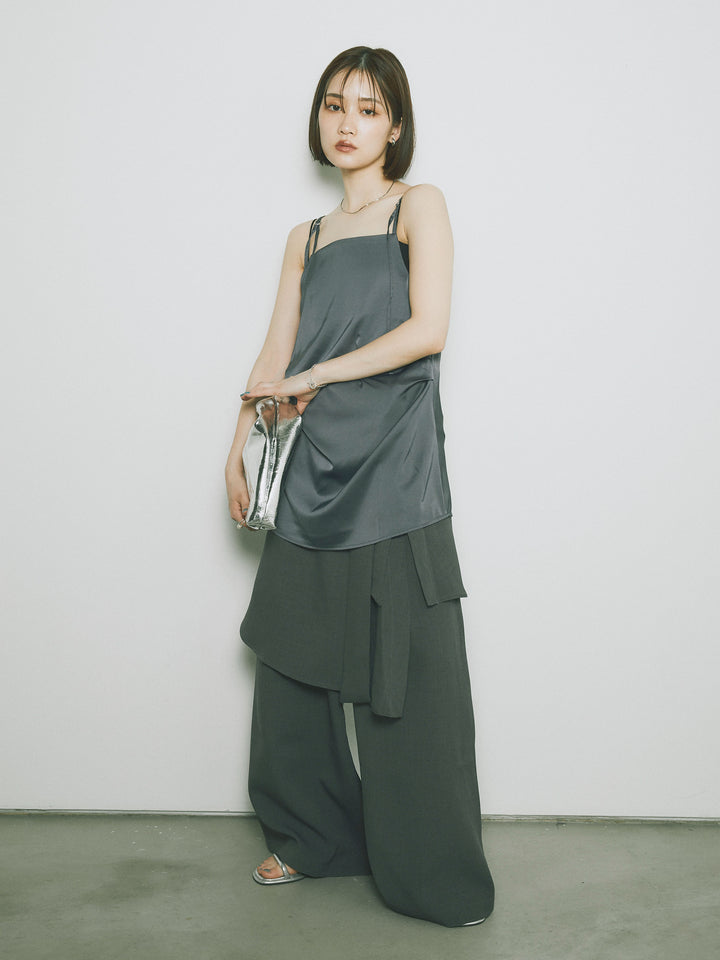 [SET]マットサテンタックデザインキャミソール+リネンタッチラップ巻きワイドパンツ(2set)