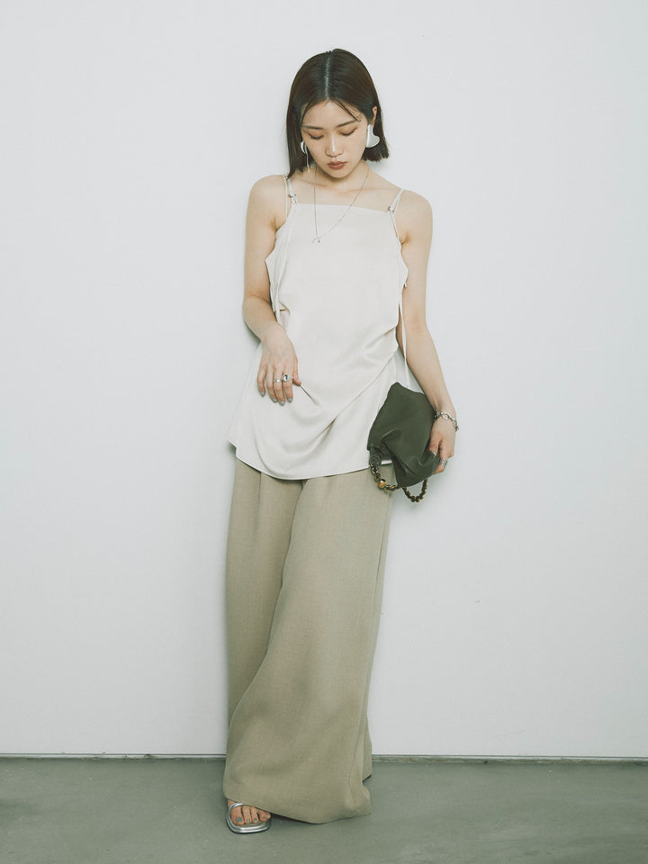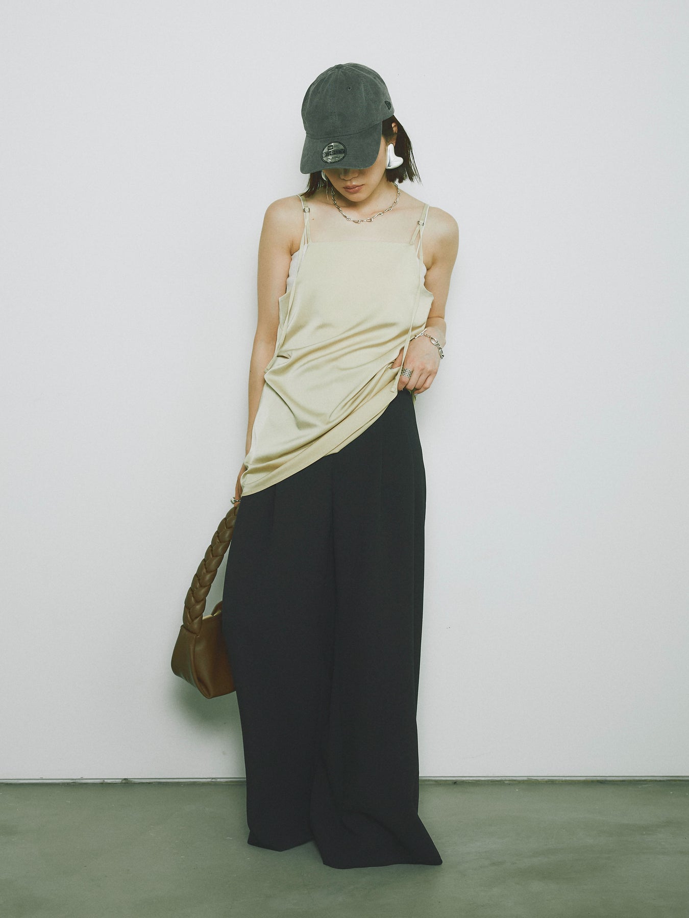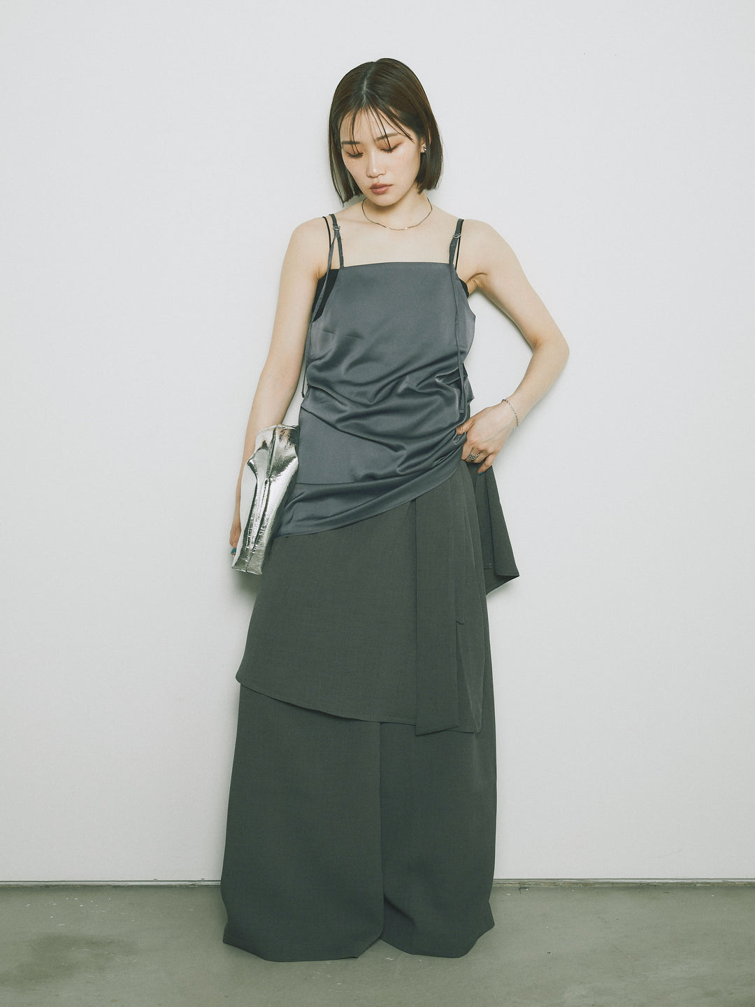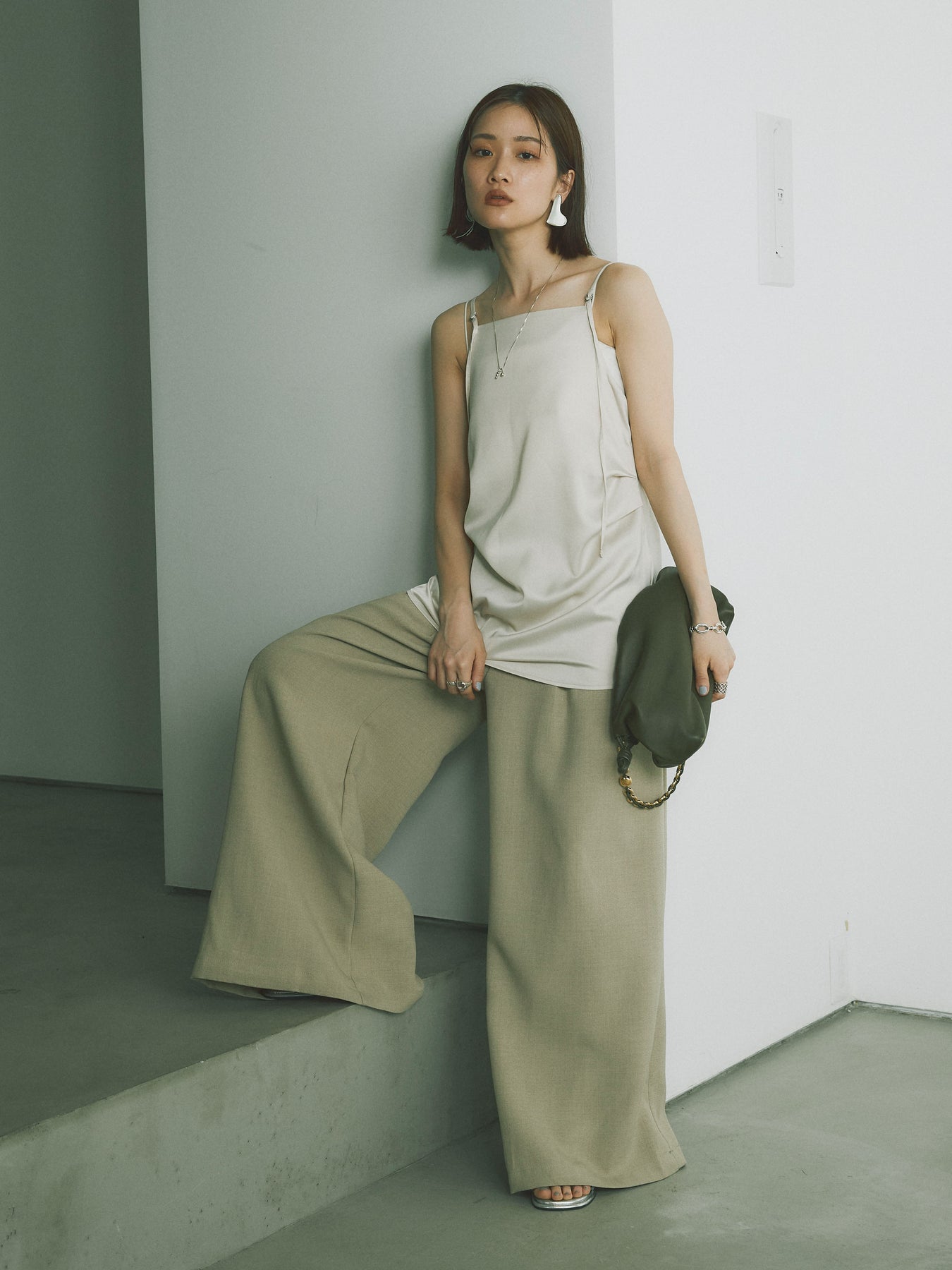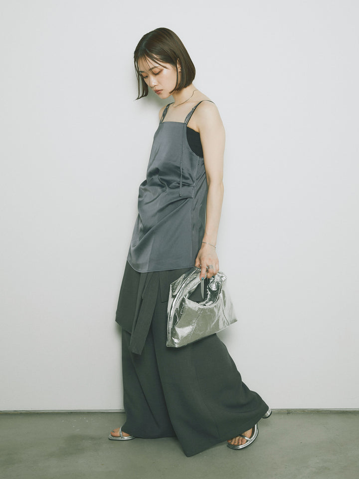[SET]マットサテンタックデザインキャミソール+リネンタッチラップ巻きワイドパンツ(2set)