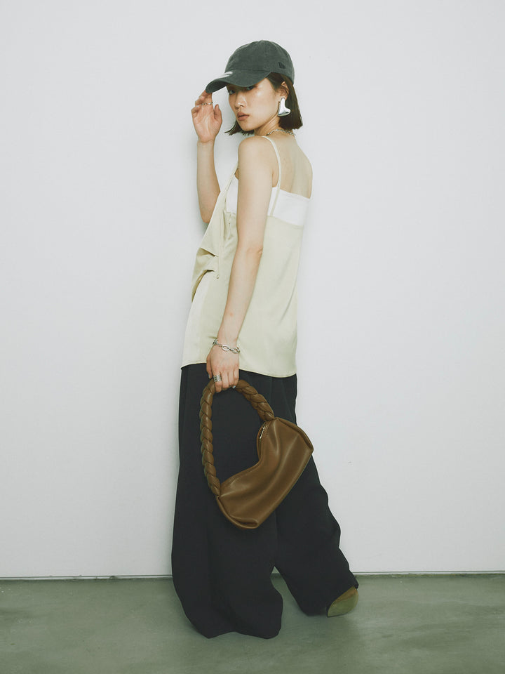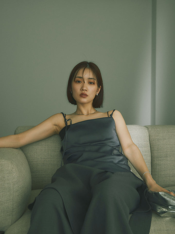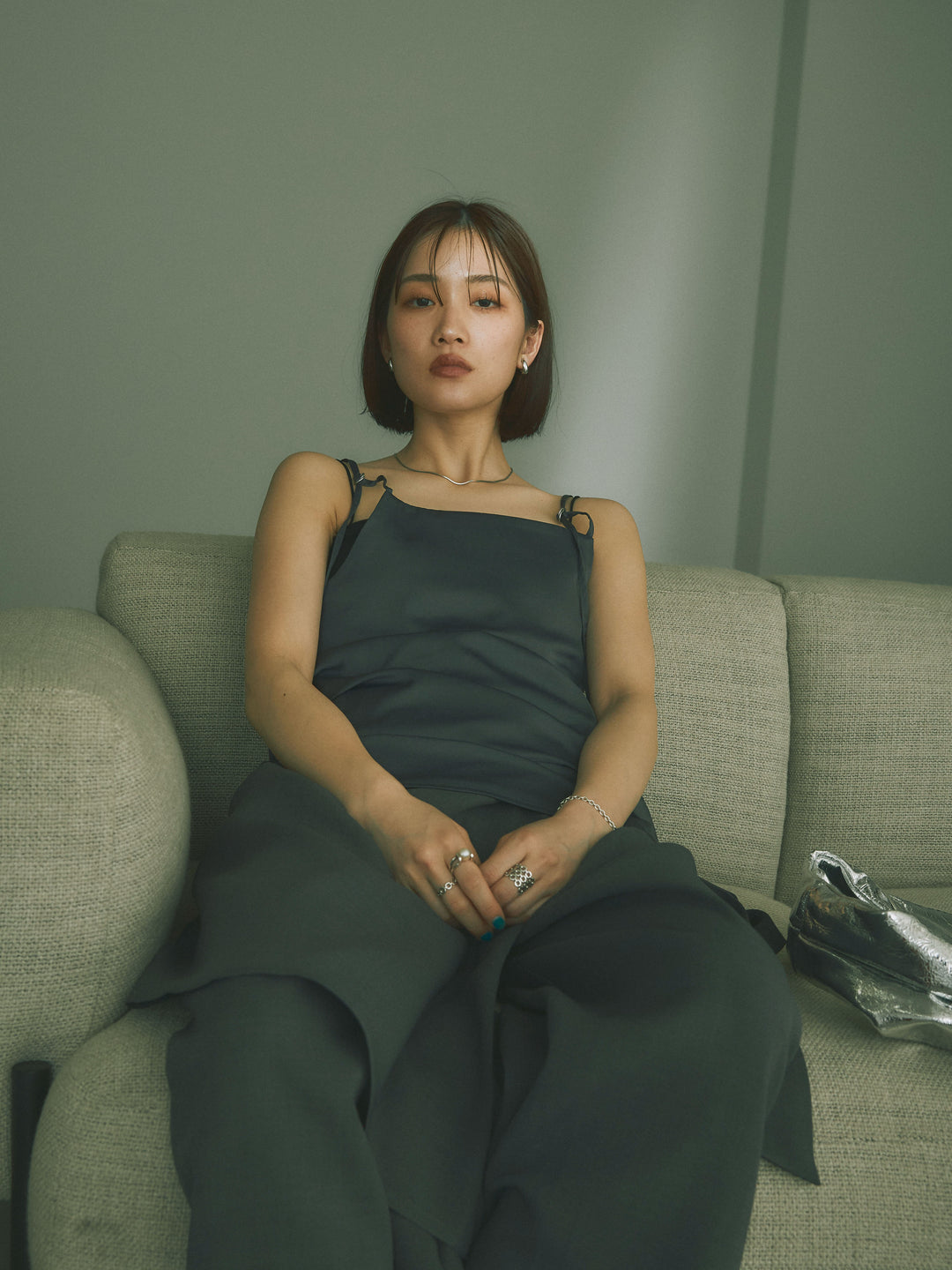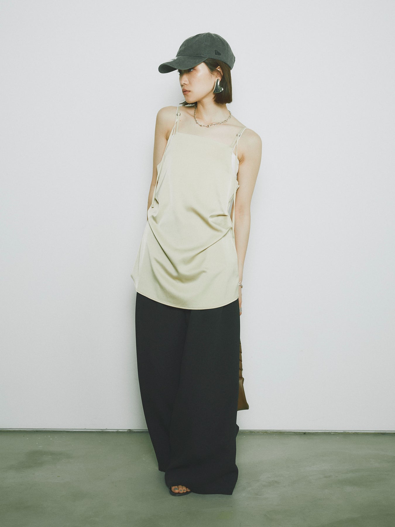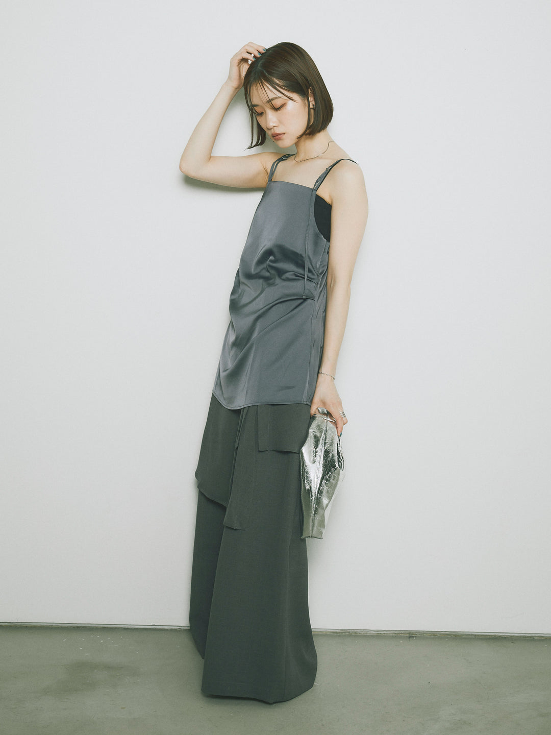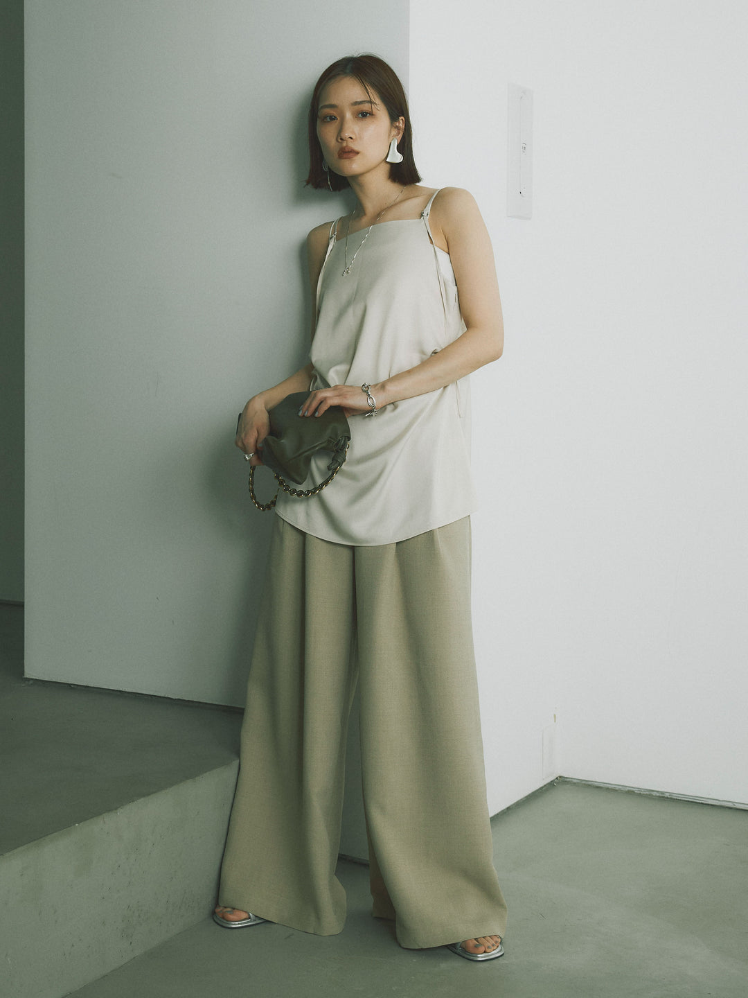 [SET]マットサテンタックデザインキャミソール+リネンタッチラップ巻きワイドパンツ(2set)