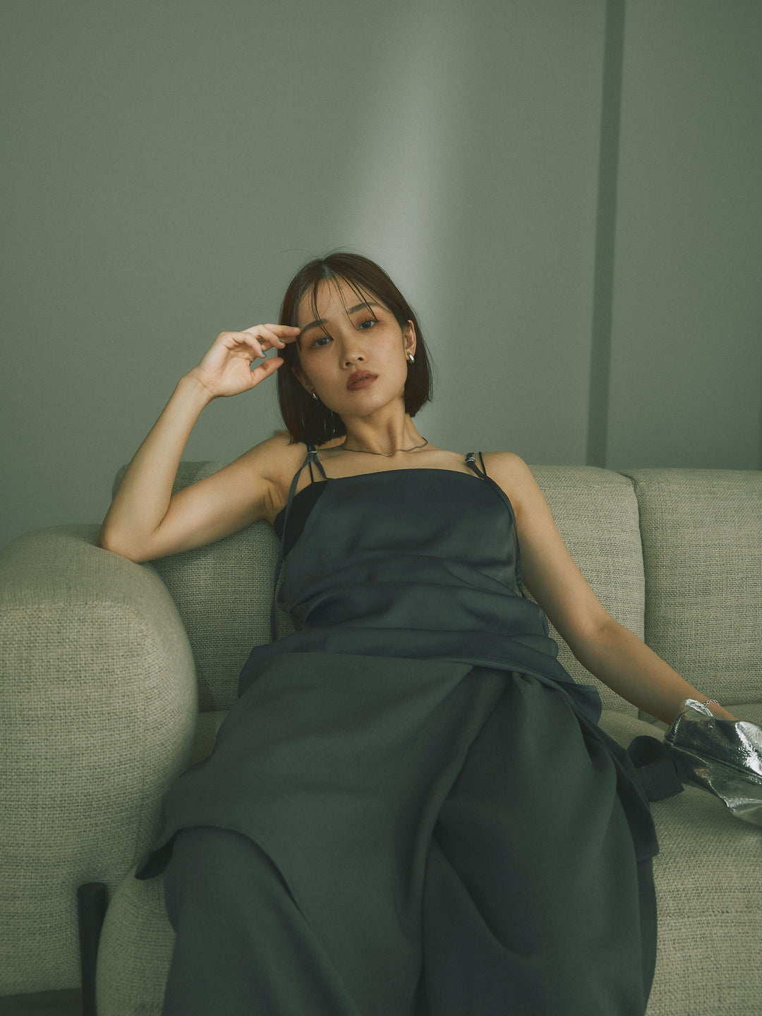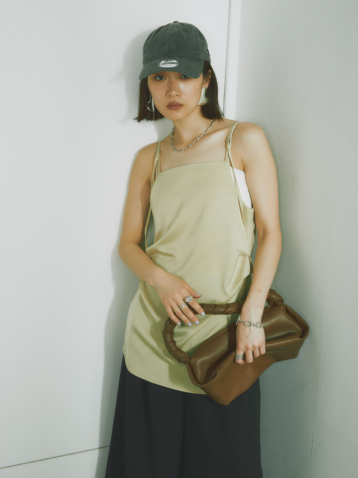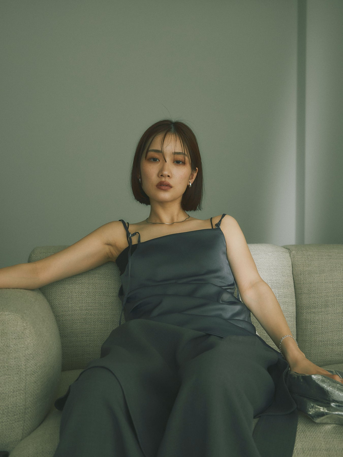 しなやかなマットサテン素材で仕立てたタックデザインのキャミソール。落ち着いた光沢感が上品さを引き立て、タックを施すことで立体的で美しいシルエットを作り出します。肩紐の調整が可能で、ぴったりとフィットしながらもリラックスした着心地を提供。シンプルながらもエレガントな印象を与え、デイリーコーディネートから特別な日まで幅広く活躍します。 ※ボトムス、キャミソール(インナー)以外の商品は一律でインナーは付属していません。