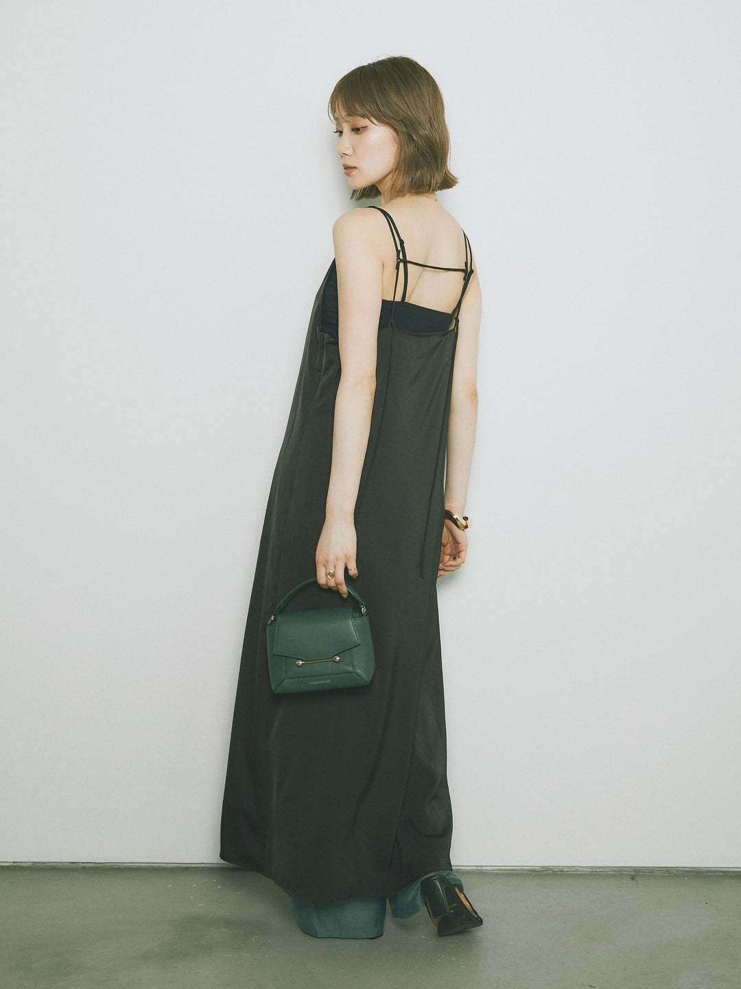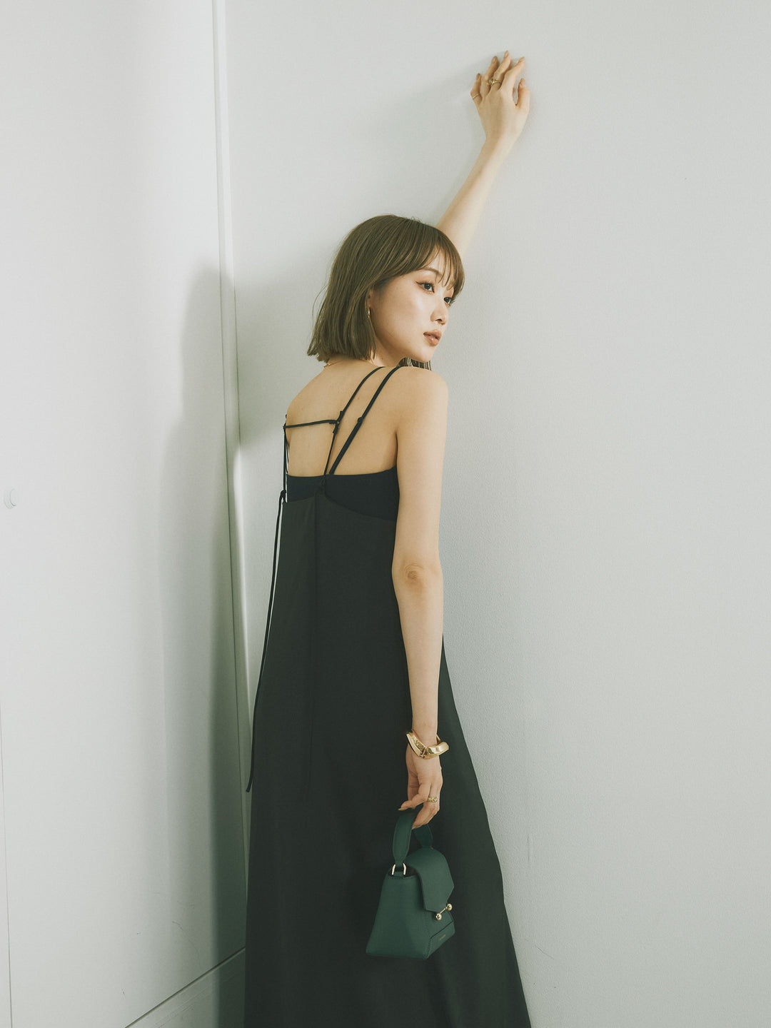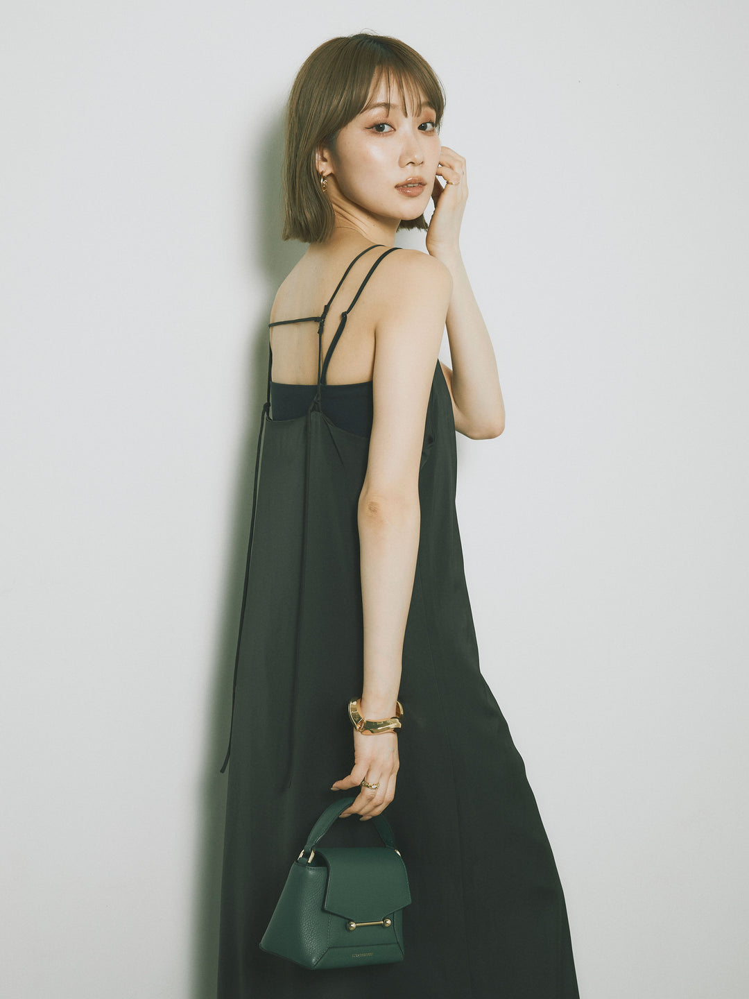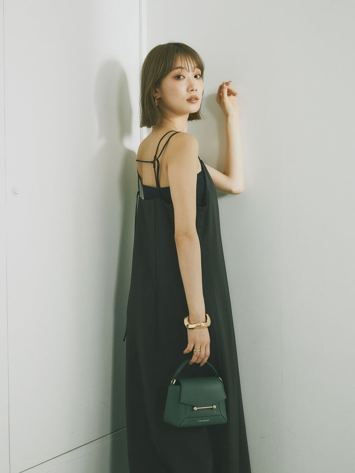 優雅なマットサテン素材で仕立てたキャミソール型のワンピース。落ち着いた光沢感があり、シンプルながらも洗練された印象を与えます。肩ひも部分は調整可能で、体型に合わせてフィット感を調整できます。リラックスしたシルエットで、デイリースタイルにも特別なシーンにもぴったり。シンプルでありながら、華やかさも感じさせる一枚です。 ※ボトムス、キャミソール(インナー)以外の商品は一律でインナーは付属していません。