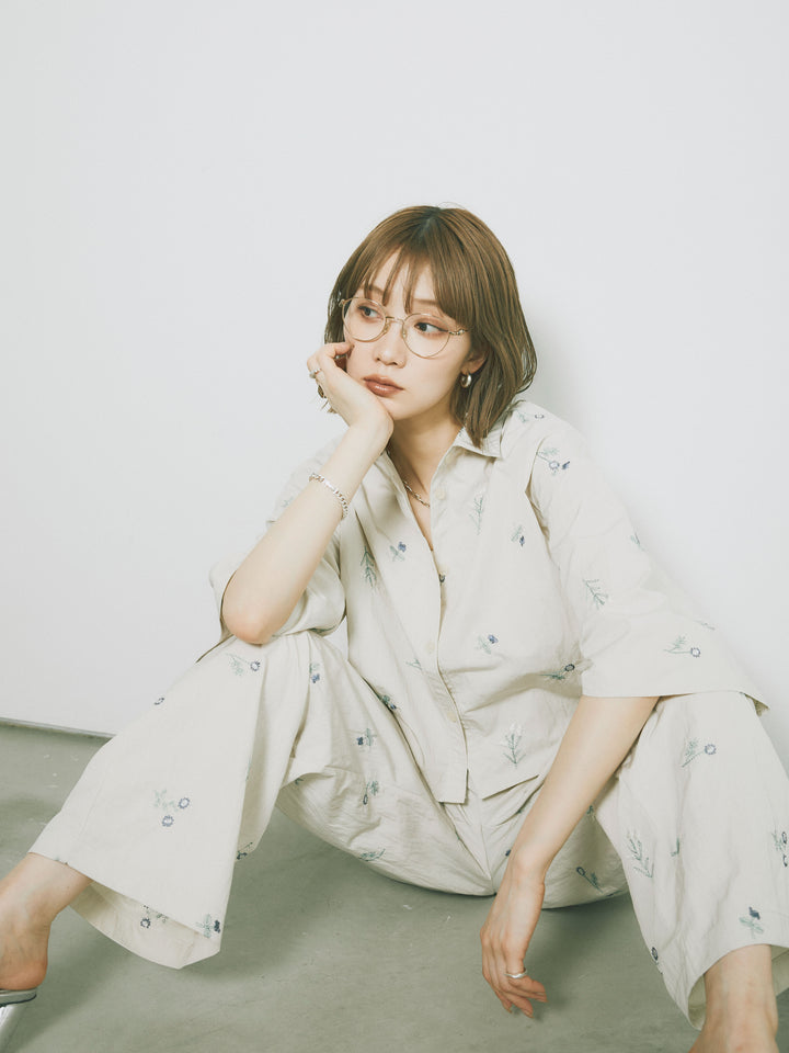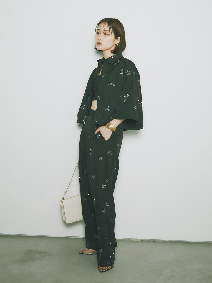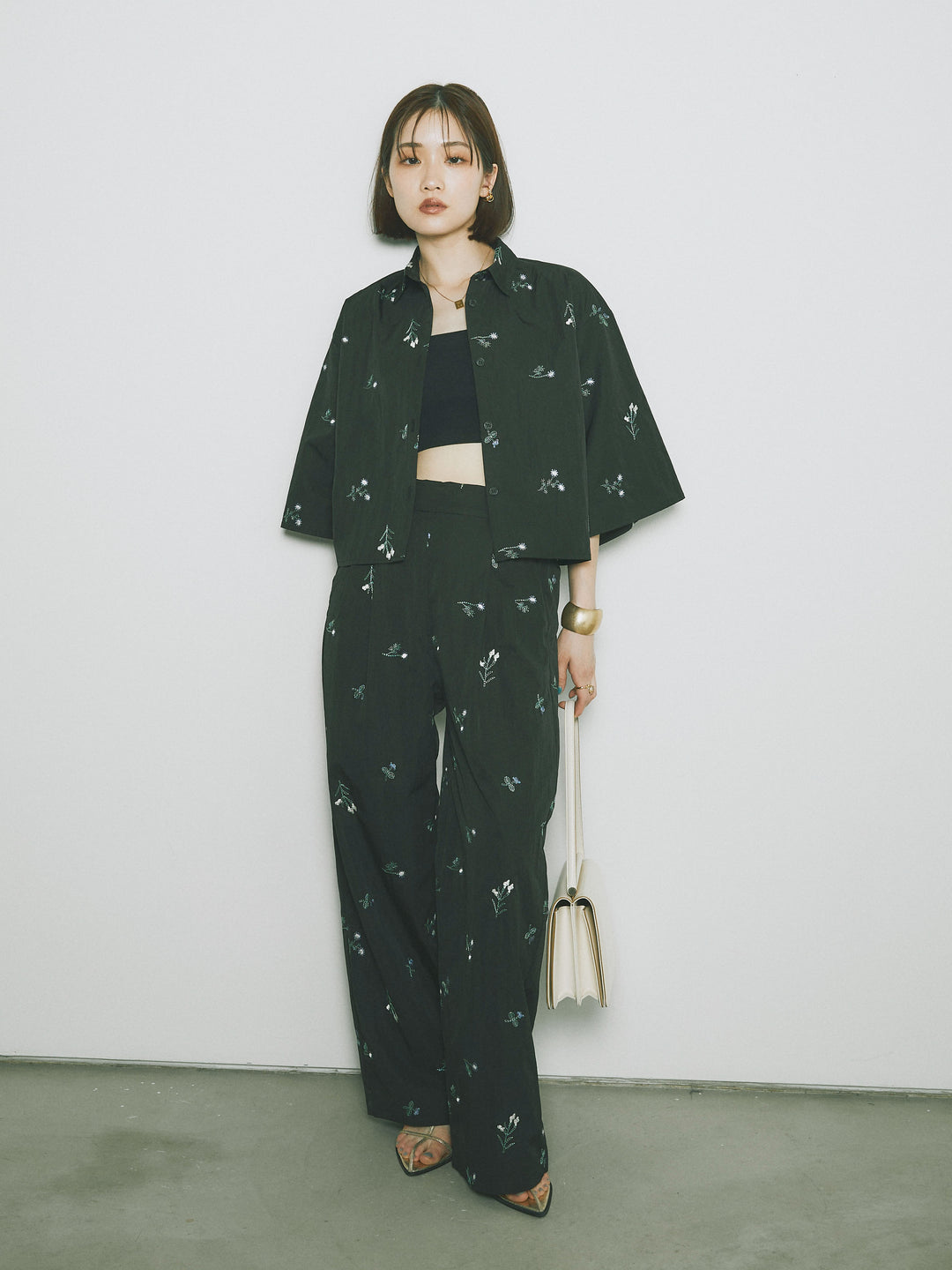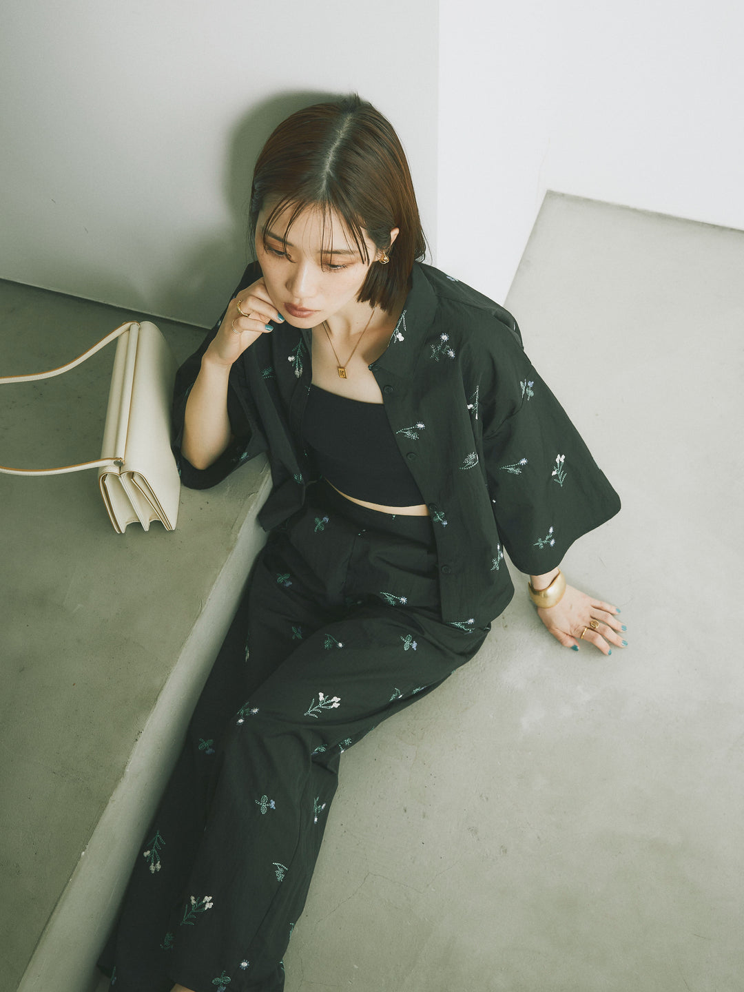[SET]フラワー刺繍タフタハーフシャツ+フラワー刺繍タフタハーフシャツ(2set)