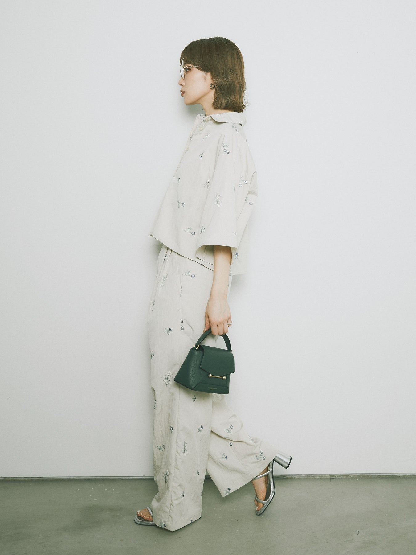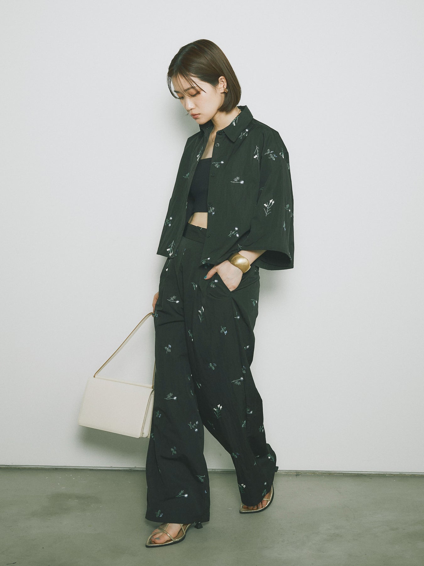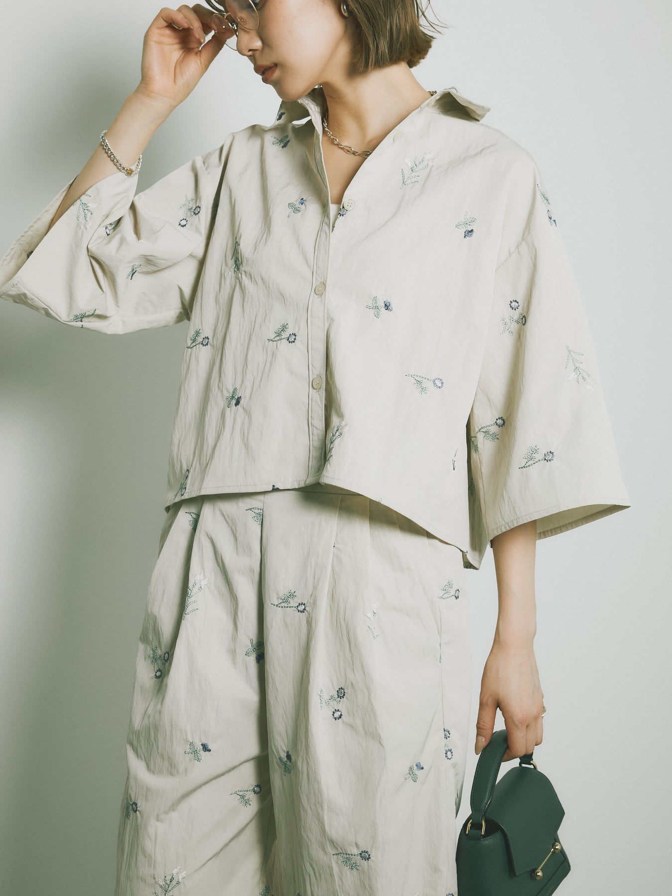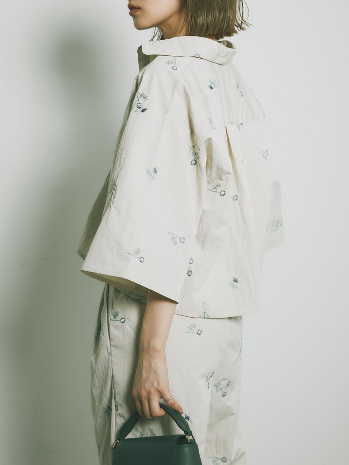 ◆ [予約]フラワー刺繍タフタハーフシャツ
