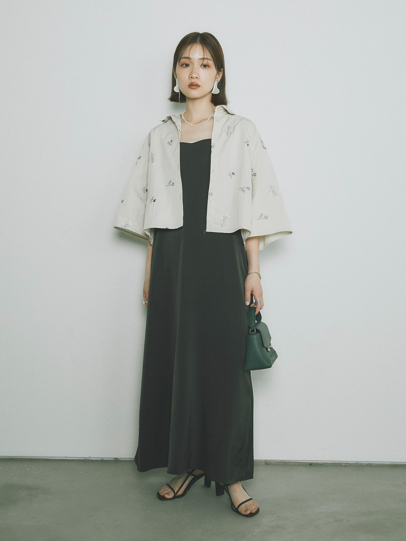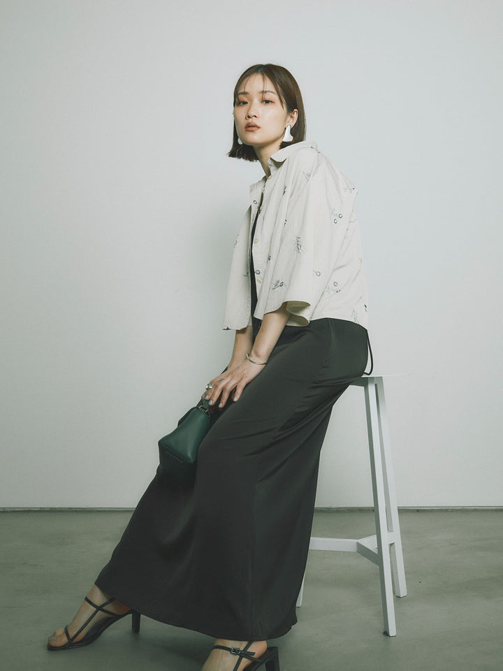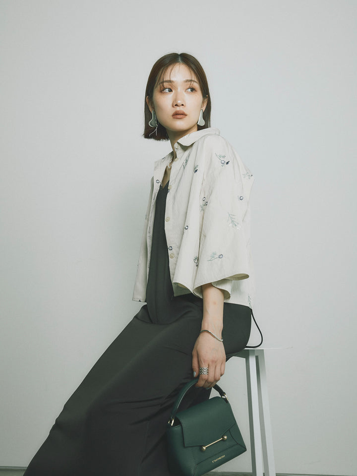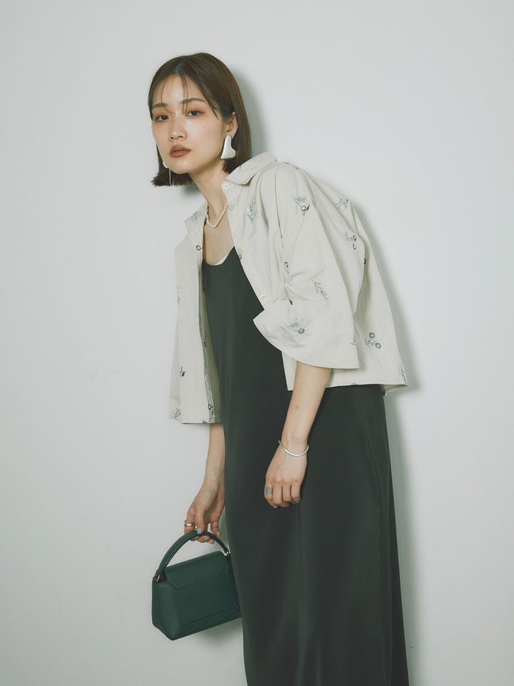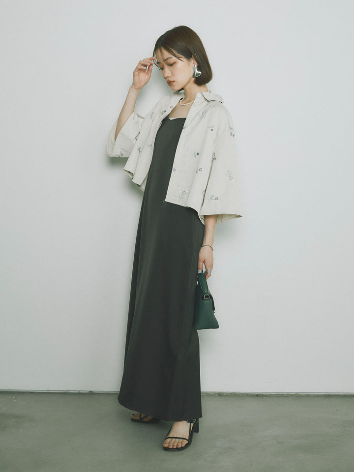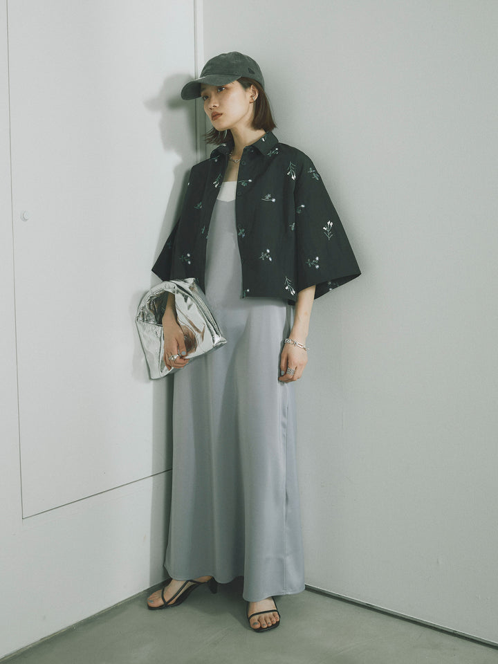 [SET]フラワー刺繍タフタハーフシャツ+マットサテンキャミワンピース(2set)