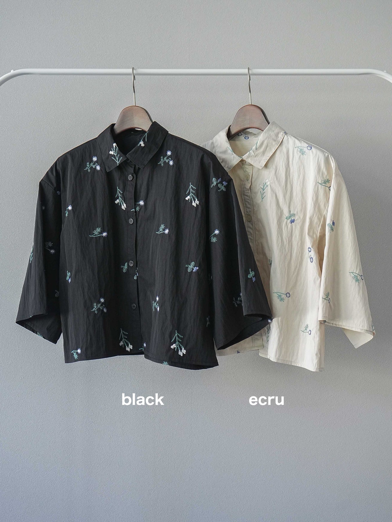 [予約]フラワー刺繍タフタハーフシャツ