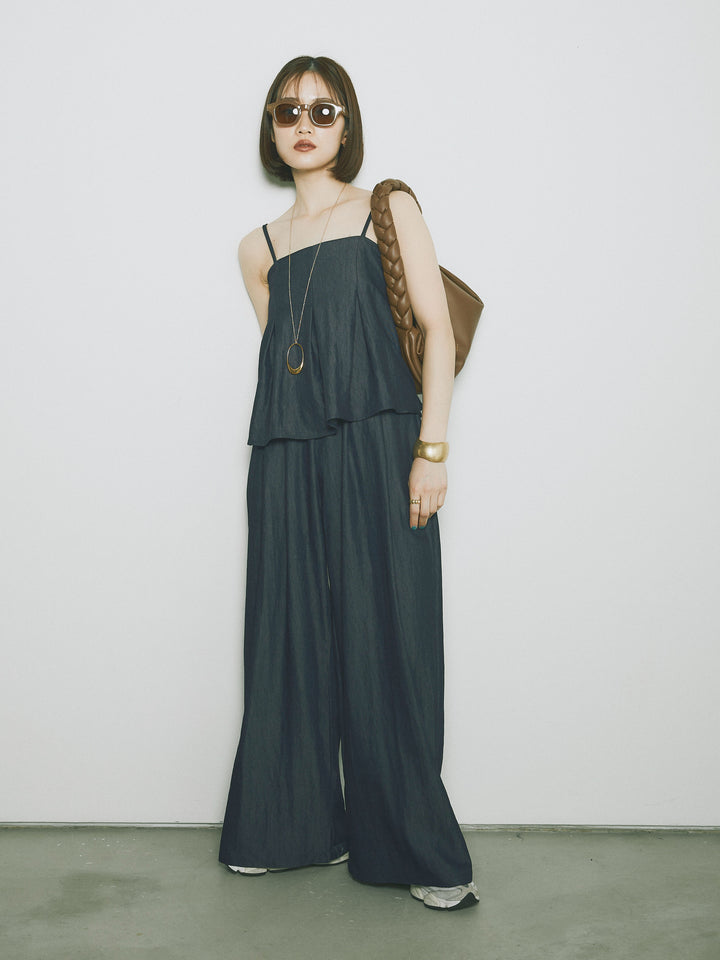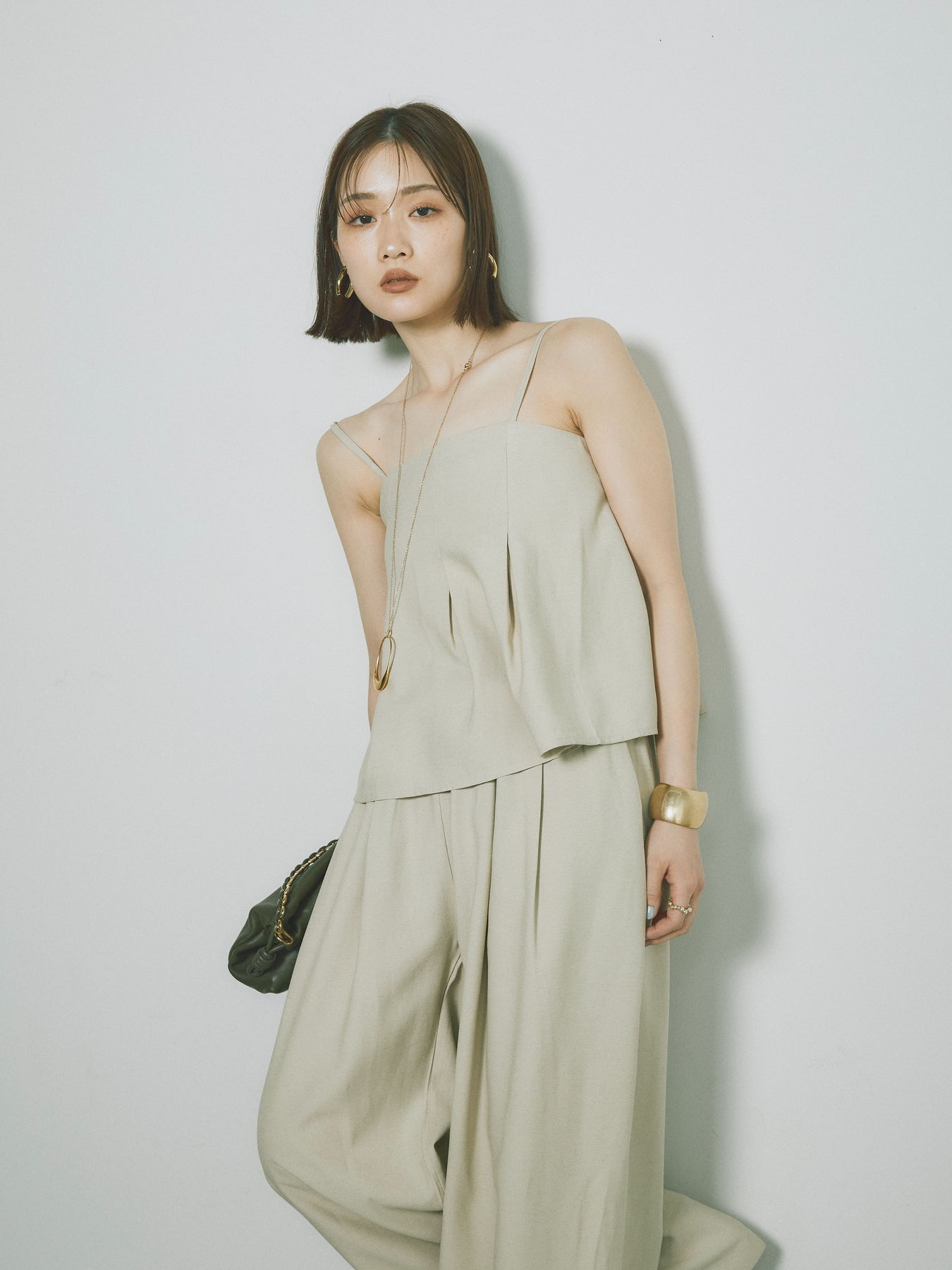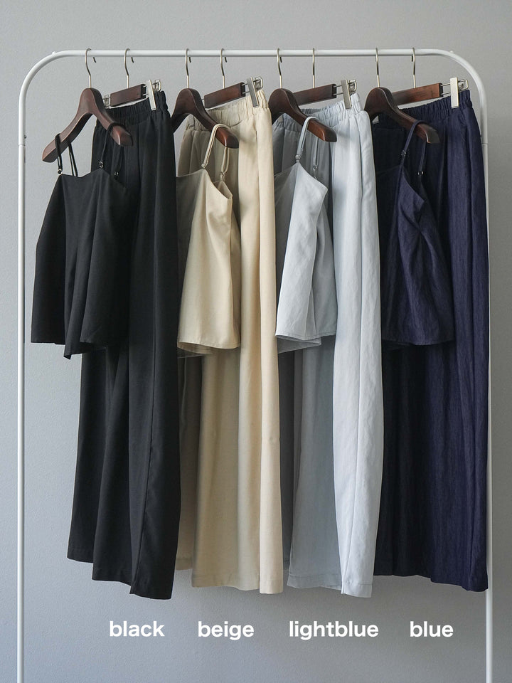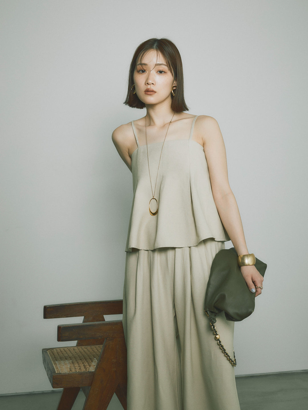 優れた肌触りと通気性を兼ね備えたテンセル素材を使用したキャミセットアップ。シンプルでありながら、リラックス感のあるシルエットが特徴で、日常使いからお出かけスタイルまで幅広く活躍します。トップスとボトムスがセットになっており、コーディネートを迷うことなく完成させます。 ※ボトムス、キャミソール(インナー)以外の商品は一律でインナーは付属していません。