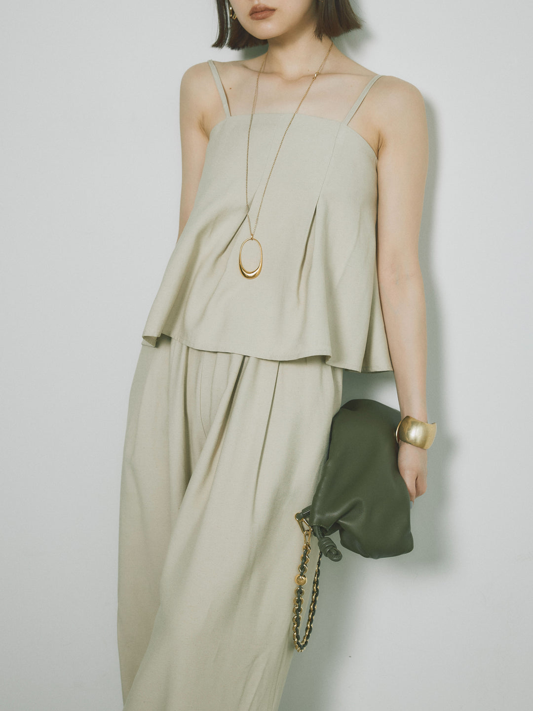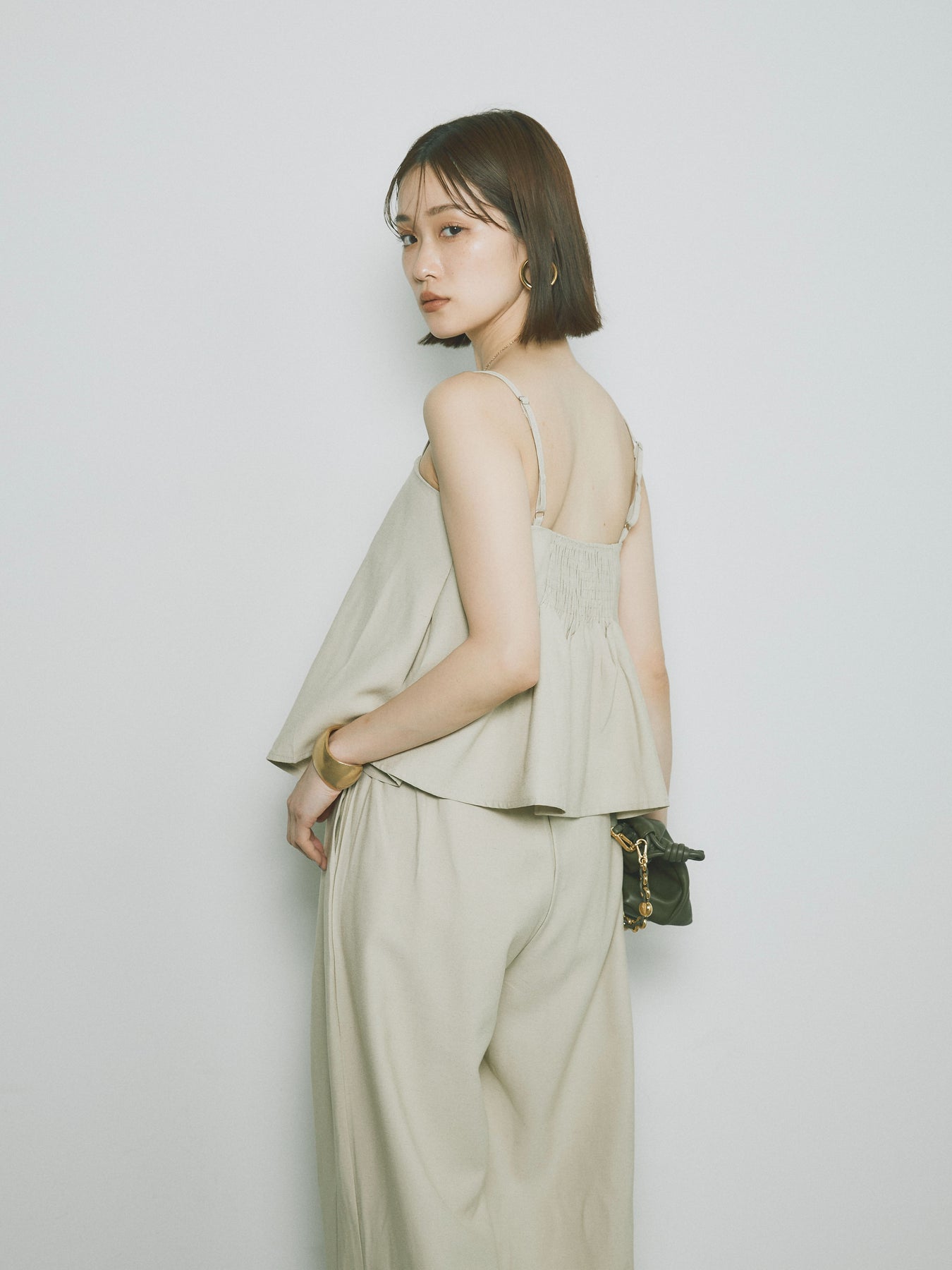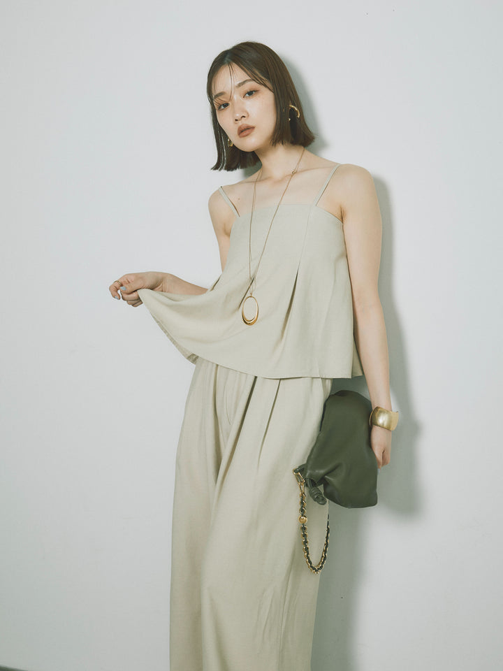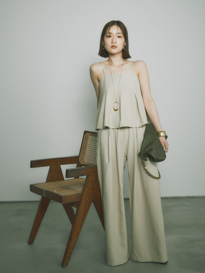 優れた肌触りと通気性を兼ね備えたテンセル素材を使用したキャミセットアップ。シンプルでありながら、リラックス感のあるシルエットが特徴で、日常使いからお出かけスタイルまで幅広く活躍します。トップスとボトムスがセットになっており、コーディネートを迷うことなく完成させます。 ※ボトムス、キャミソール(インナー)以外の商品は一律でインナーは付属していません。