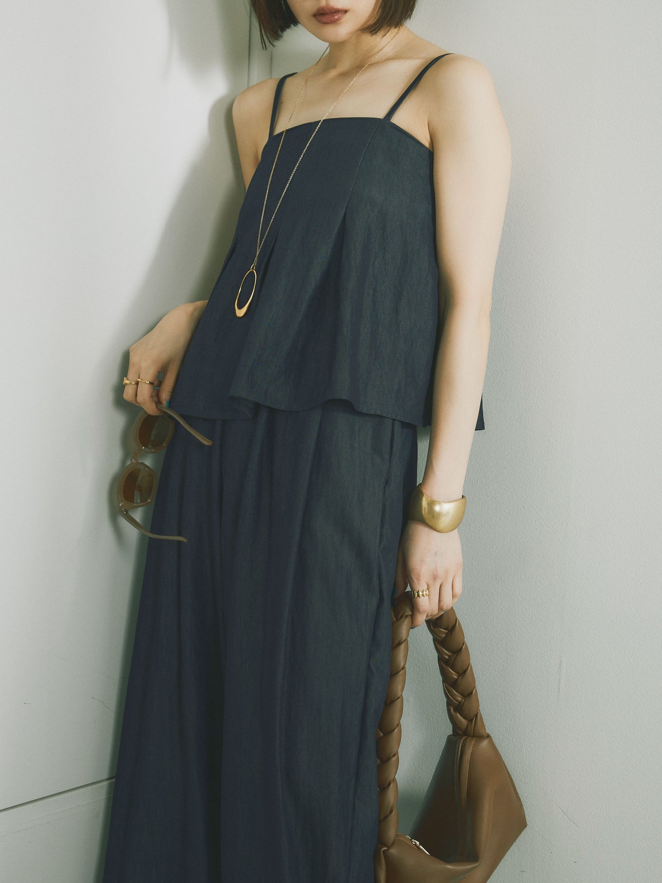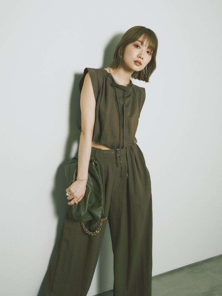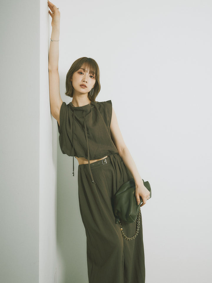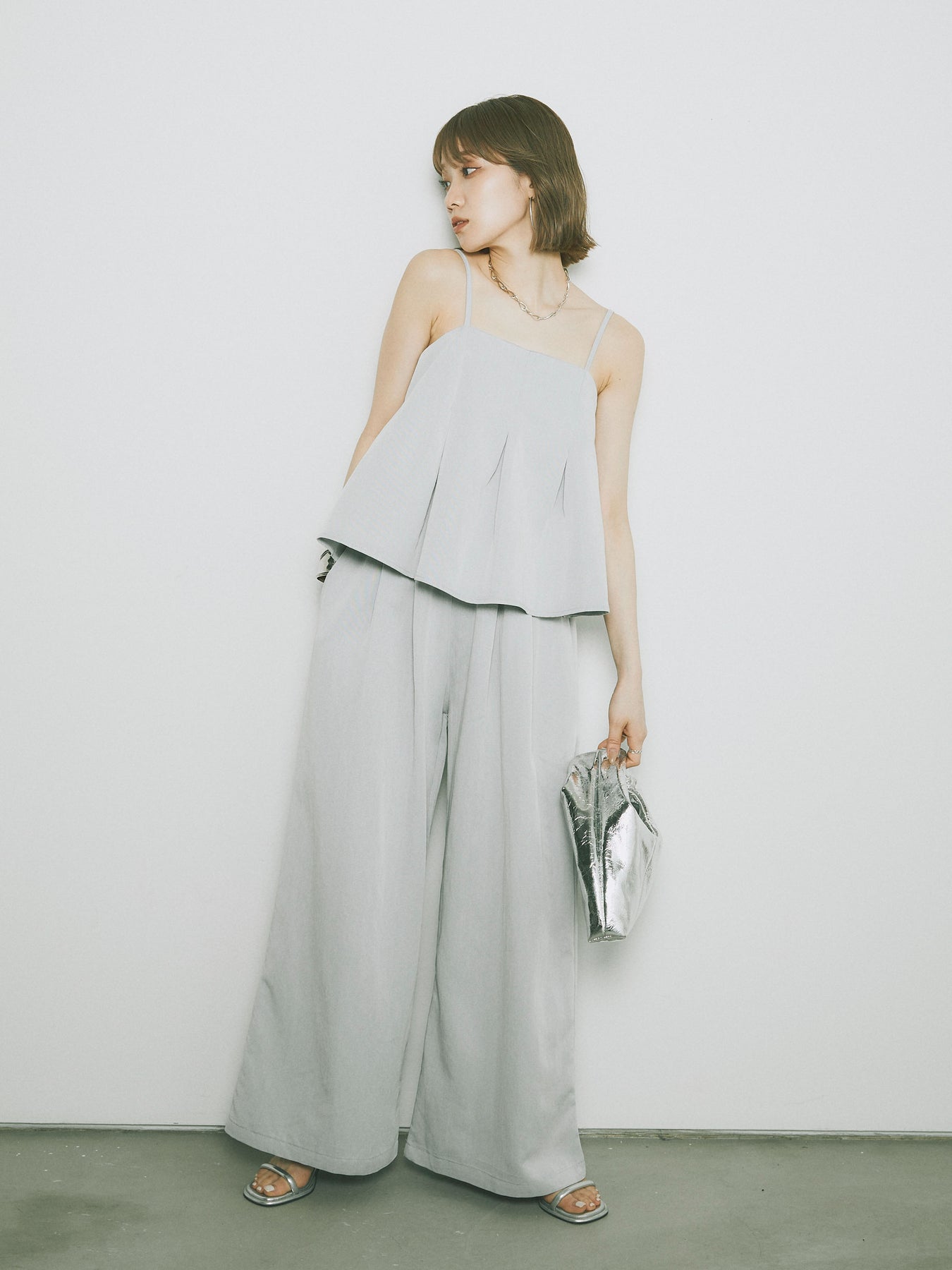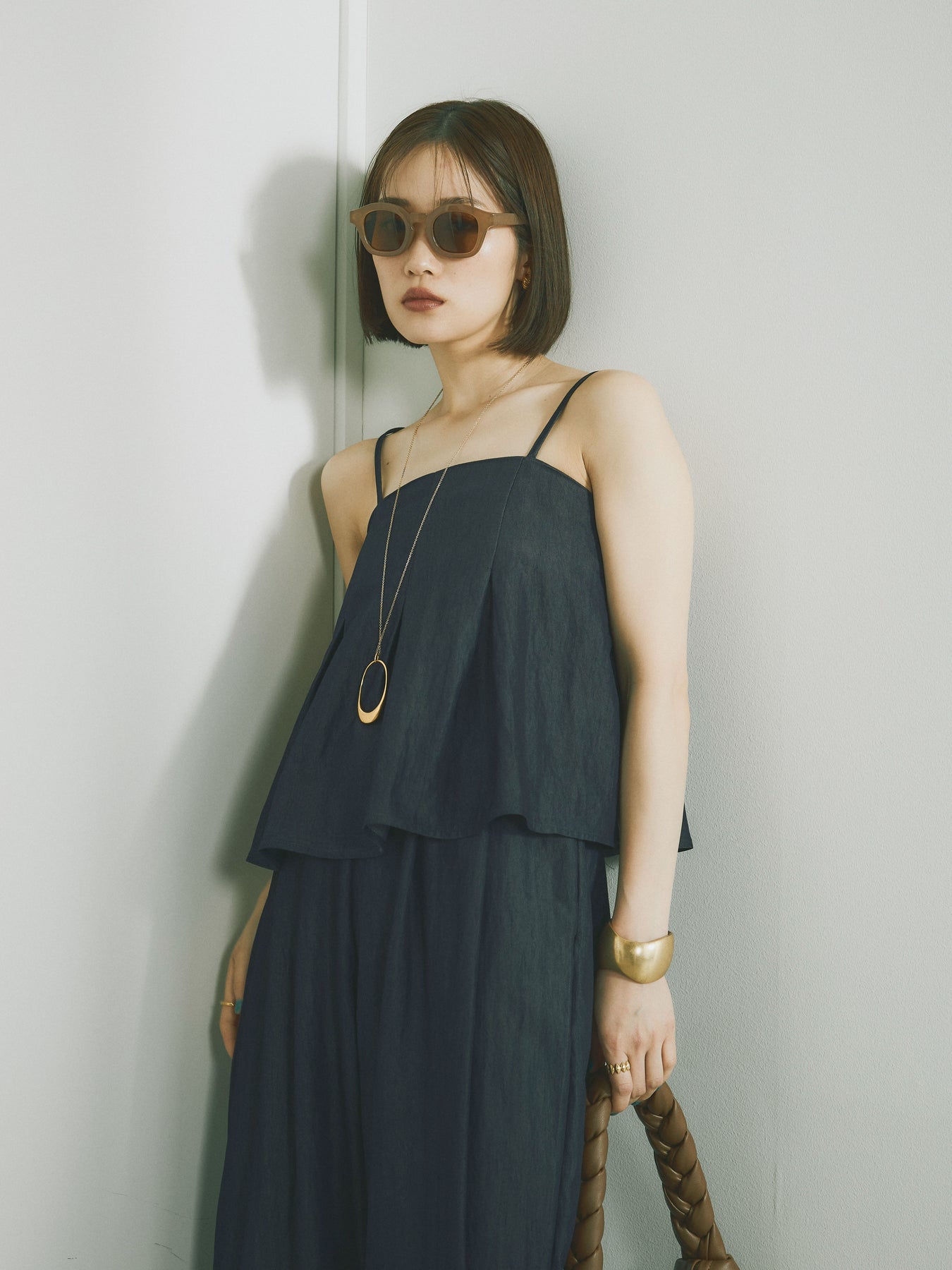 軽やかなテンセル素材で仕立てた、バルーンシルエットのトップスとパンツのセットアップ。トップスは肩紐付きのシンプルでエレガントなデザインで、リラックスしたシルエットを引き立てます。パンツはゆったりとしたバルーンシルエットで、動きやすさと快適さを兼ね備えています。セットアップとしてはもちろん、単品でも使える万能アイテムです。ナチュラルな色合いで、春夏にぴったりのスタイルを完成させます。 ※ボトムス、キャミソール(インナー)以外の商品は一律でインナーは付属していません。