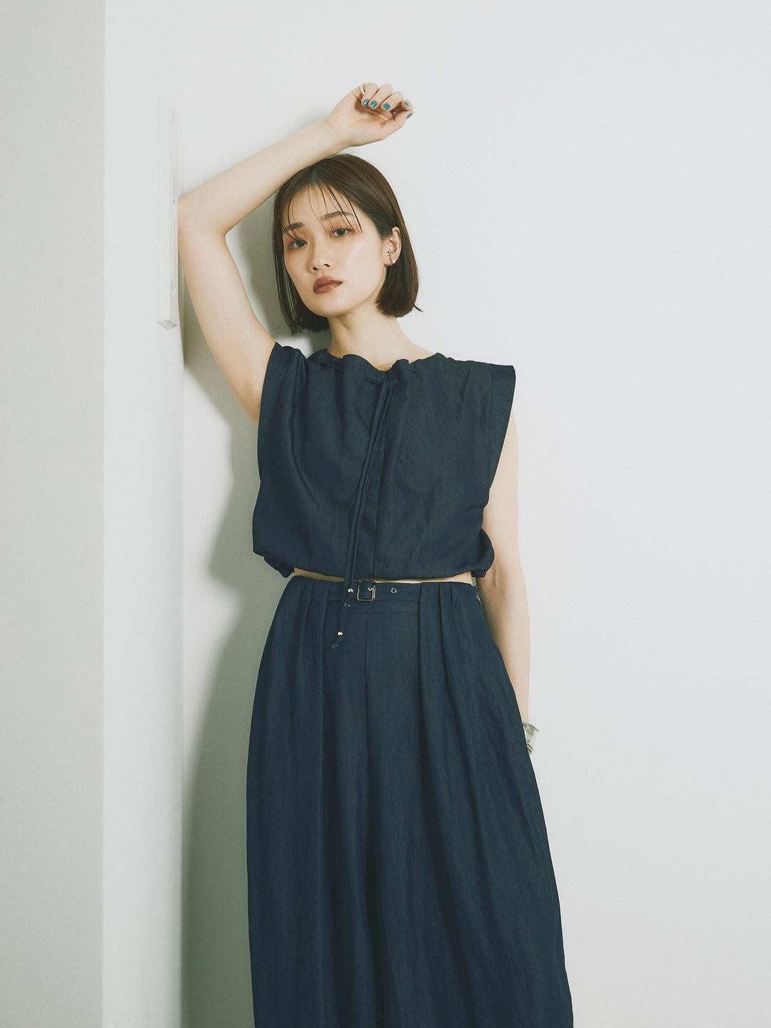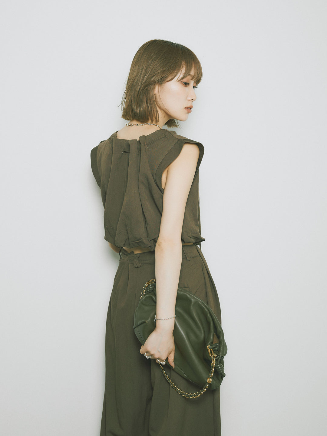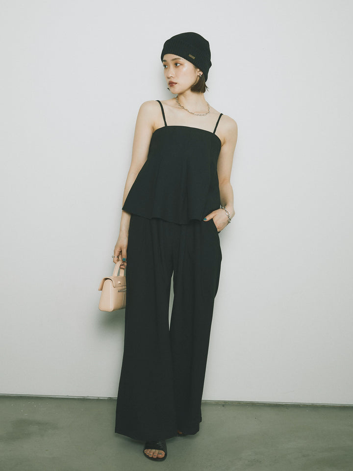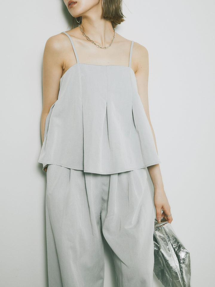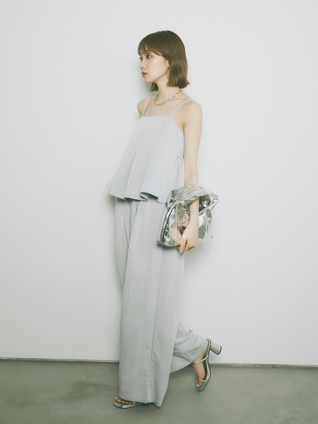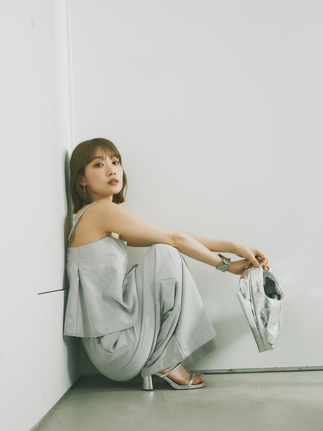 軽やかなテンセル素材で仕立てた、バルーンシルエットのトップスとパンツのセットアップ。トップスは肩紐付きのシンプルでエレガントなデザインで、リラックスしたシルエットを引き立てます。パンツはゆったりとしたバルーンシルエットで、動きやすさと快適さを兼ね備えています。セットアップとしてはもちろん、単品でも使える万能アイテムです。ナチュラルな色合いで、春夏にぴったりのスタイルを完成させます。 ※ボトムス、キャミソール(インナー)以外の商品は一律でインナーは付属していません。
