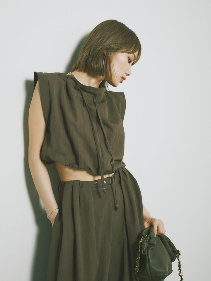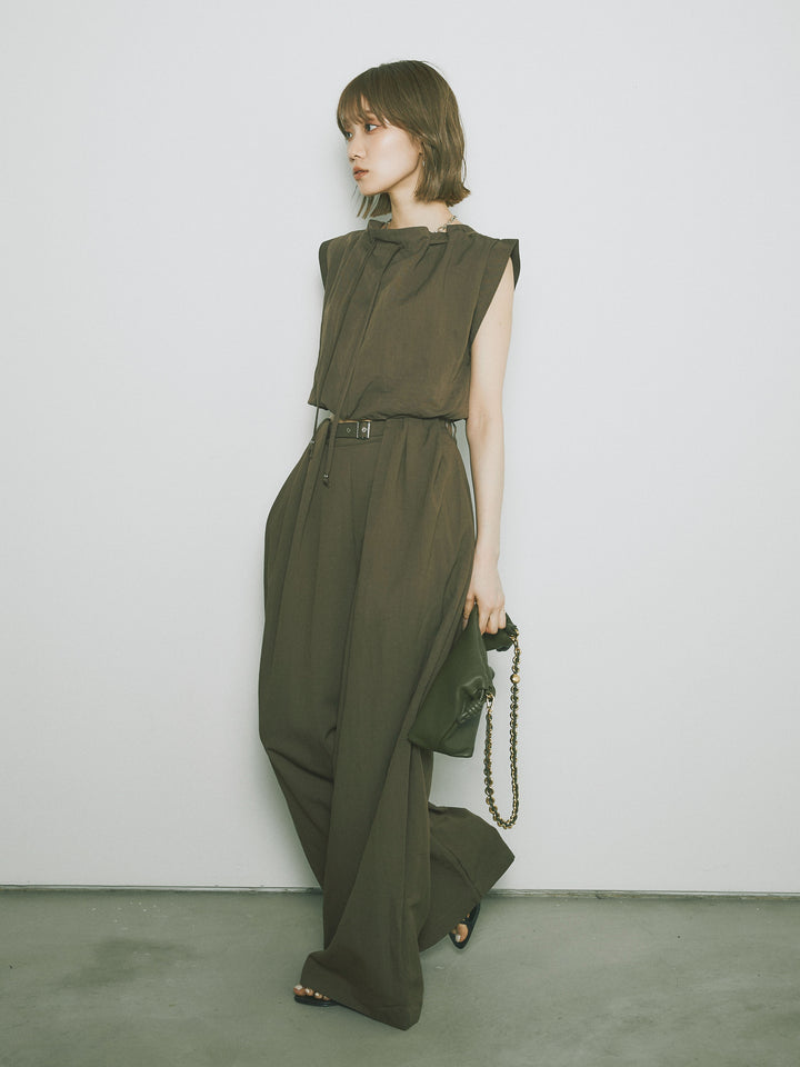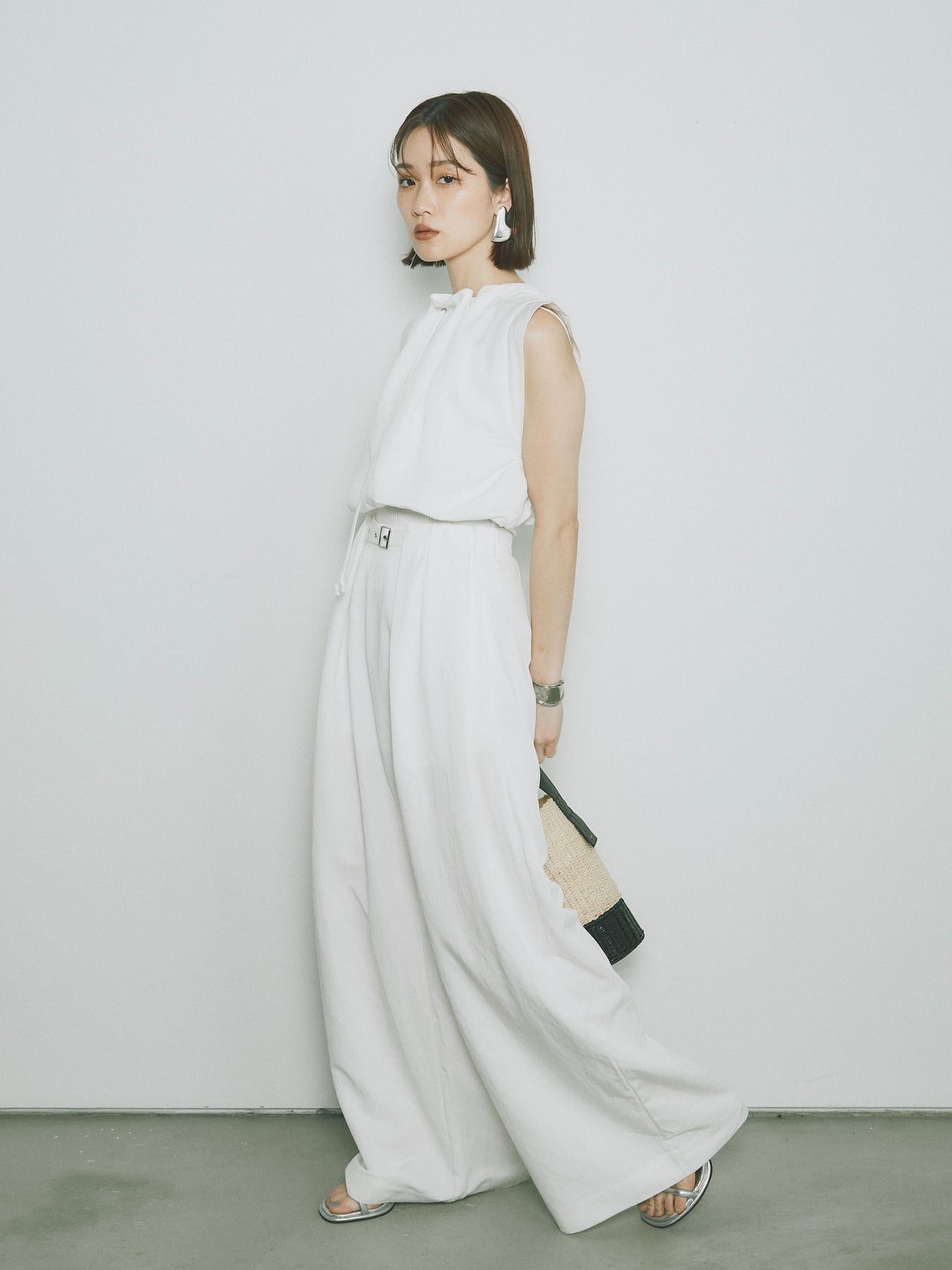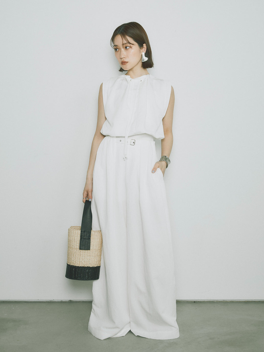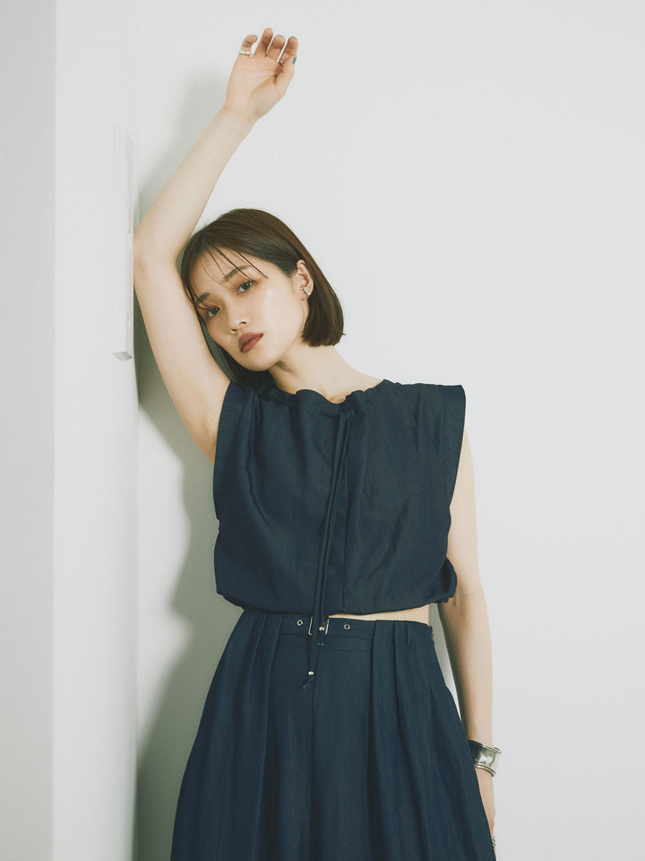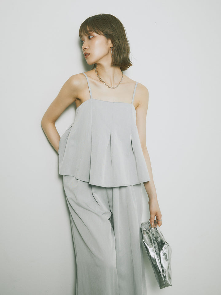 軽やかなテンセル素材で仕立てた、バルーンシルエットのトップスとパンツのセットアップ。トップスは肩紐付きのシンプルでエレガントなデザインで、リラックスしたシルエットを引き立てます。パンツはゆったりとしたバルーンシルエットで、動きやすさと快適さを兼ね備えています。セットアップとしてはもちろん、単品でも使える万能アイテムです。ナチュラルな色合いで、春夏にぴったりのスタイルを完成させます。 ※ボトムス、キャミソール(インナー)以外の商品は一律でインナーは付属していません。