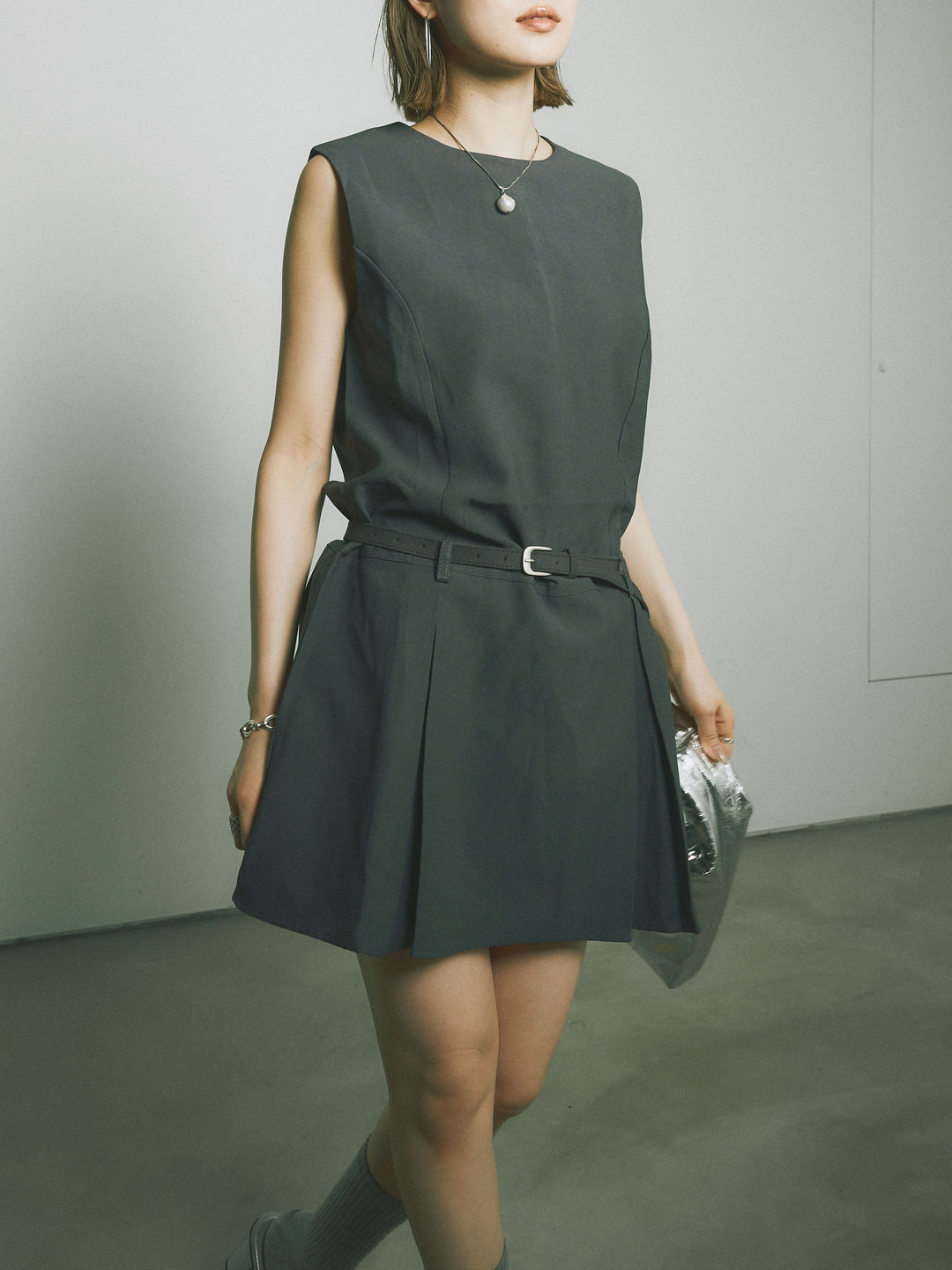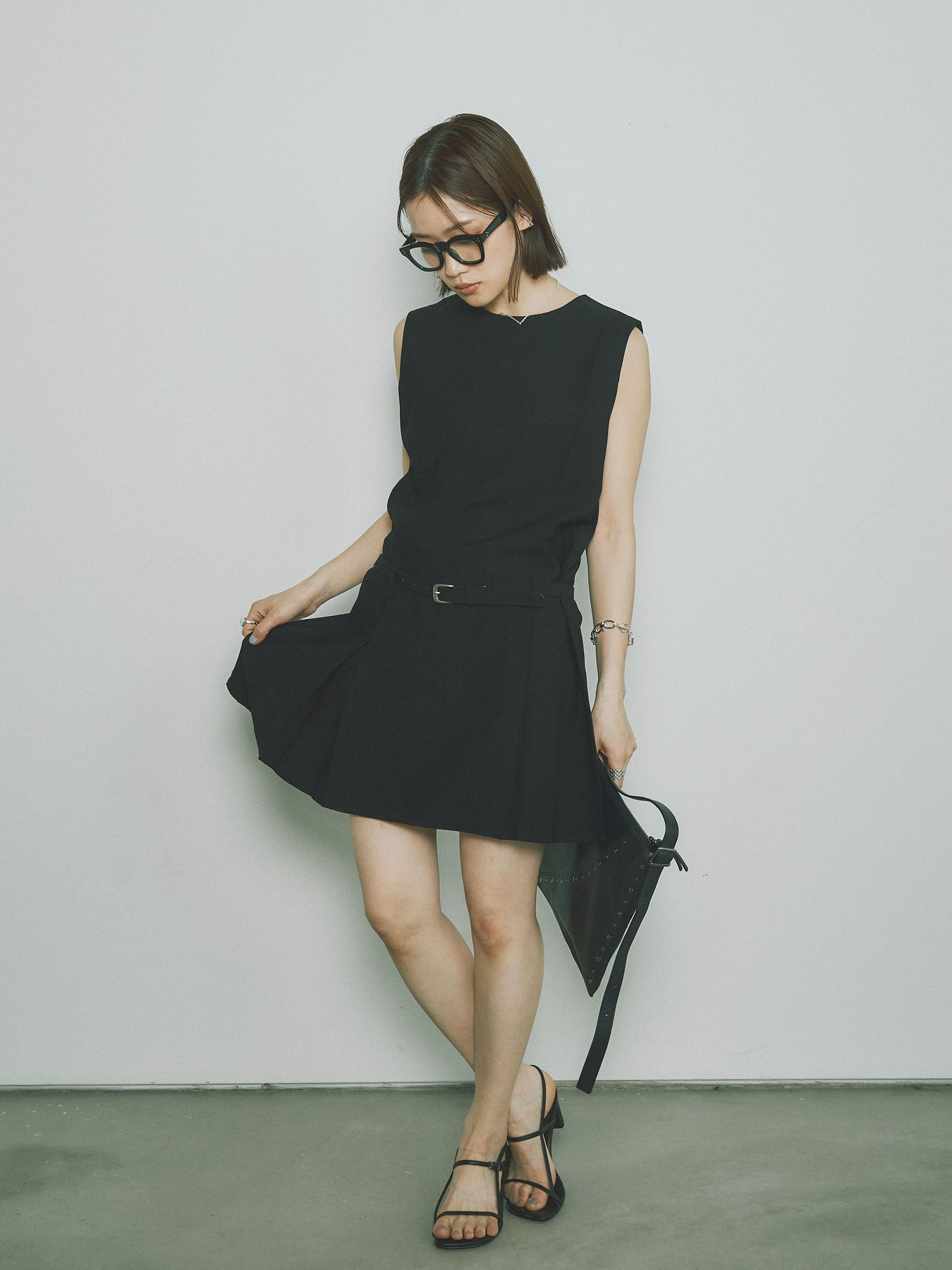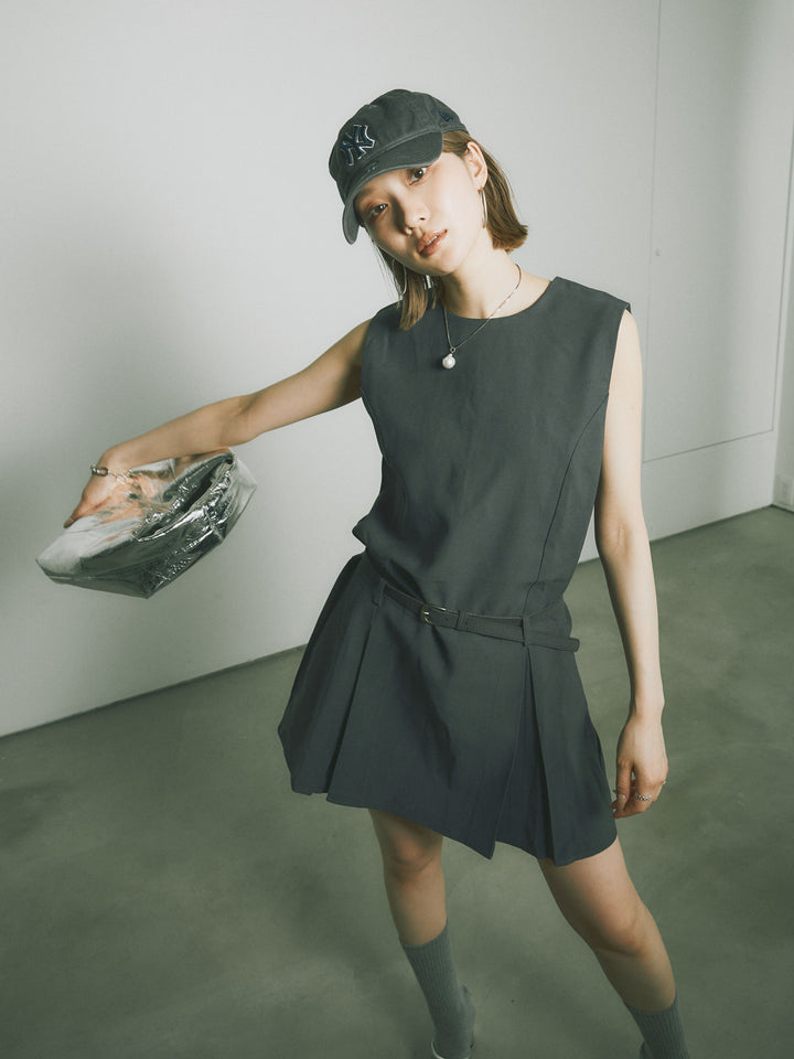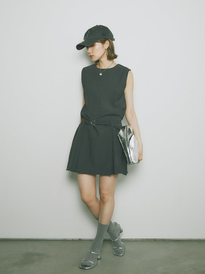 シンプルながらも洗練された印象を与えるタックデザインのコンビネゾン。ウエスト部分のベルトがアクセントとなり、スタイルを引き立てます。フレアシルエットが女性らしさを際立たせ、シンプルでありながらエレガントな印象を与えます。カジュアルからドレッシーまで、幅広いシーンで活躍するアイテムです。 ※ボトムス、キャミソール(インナー)以外の商品は一律でインナーは付属していません。