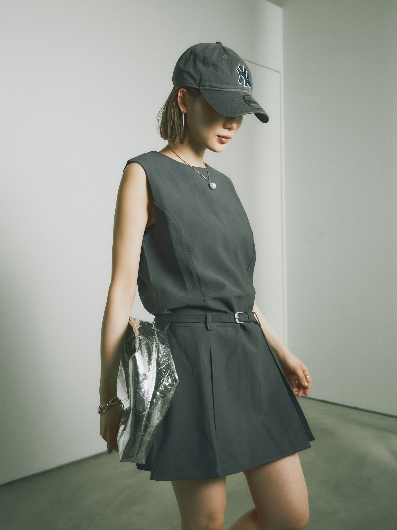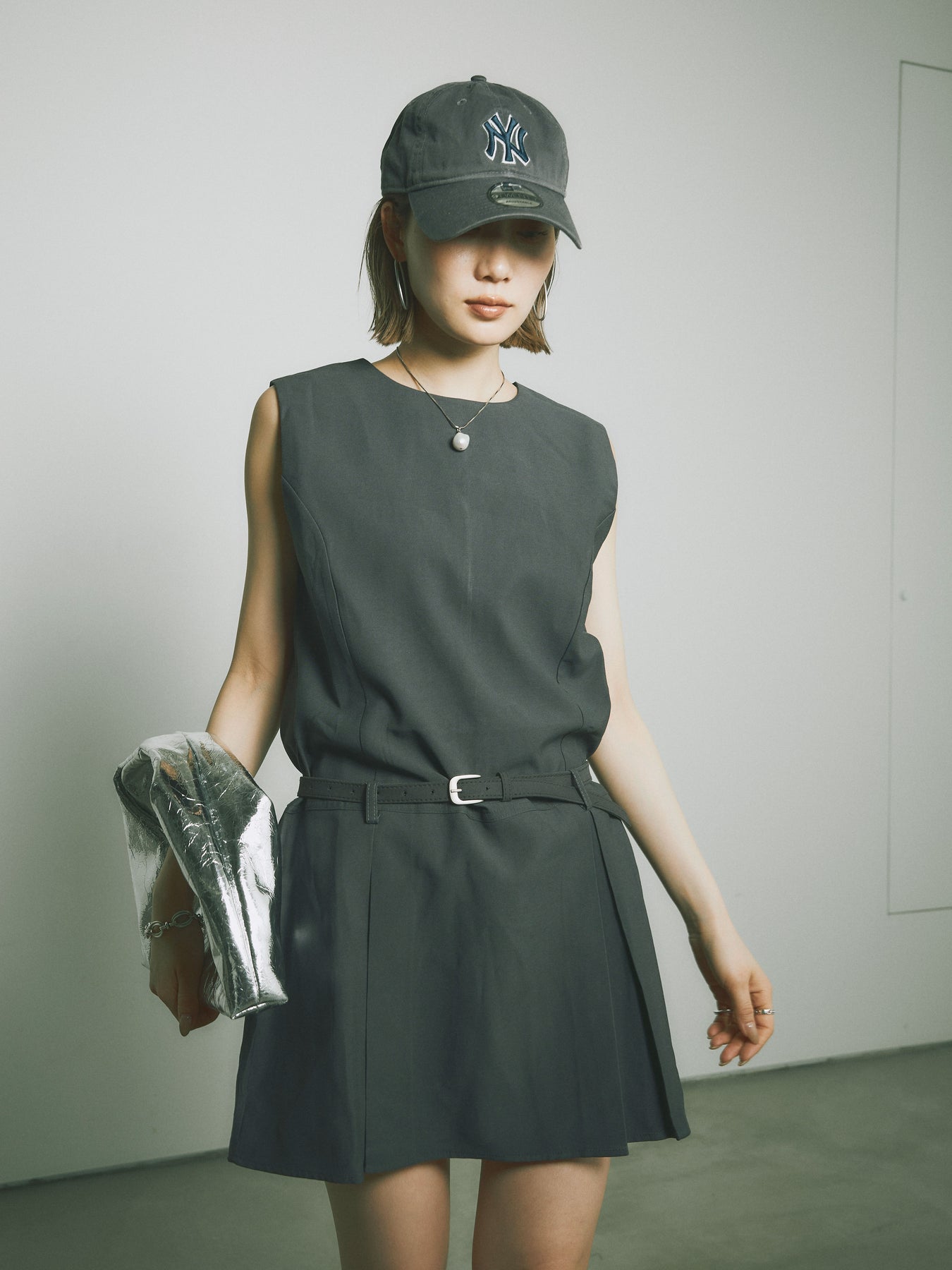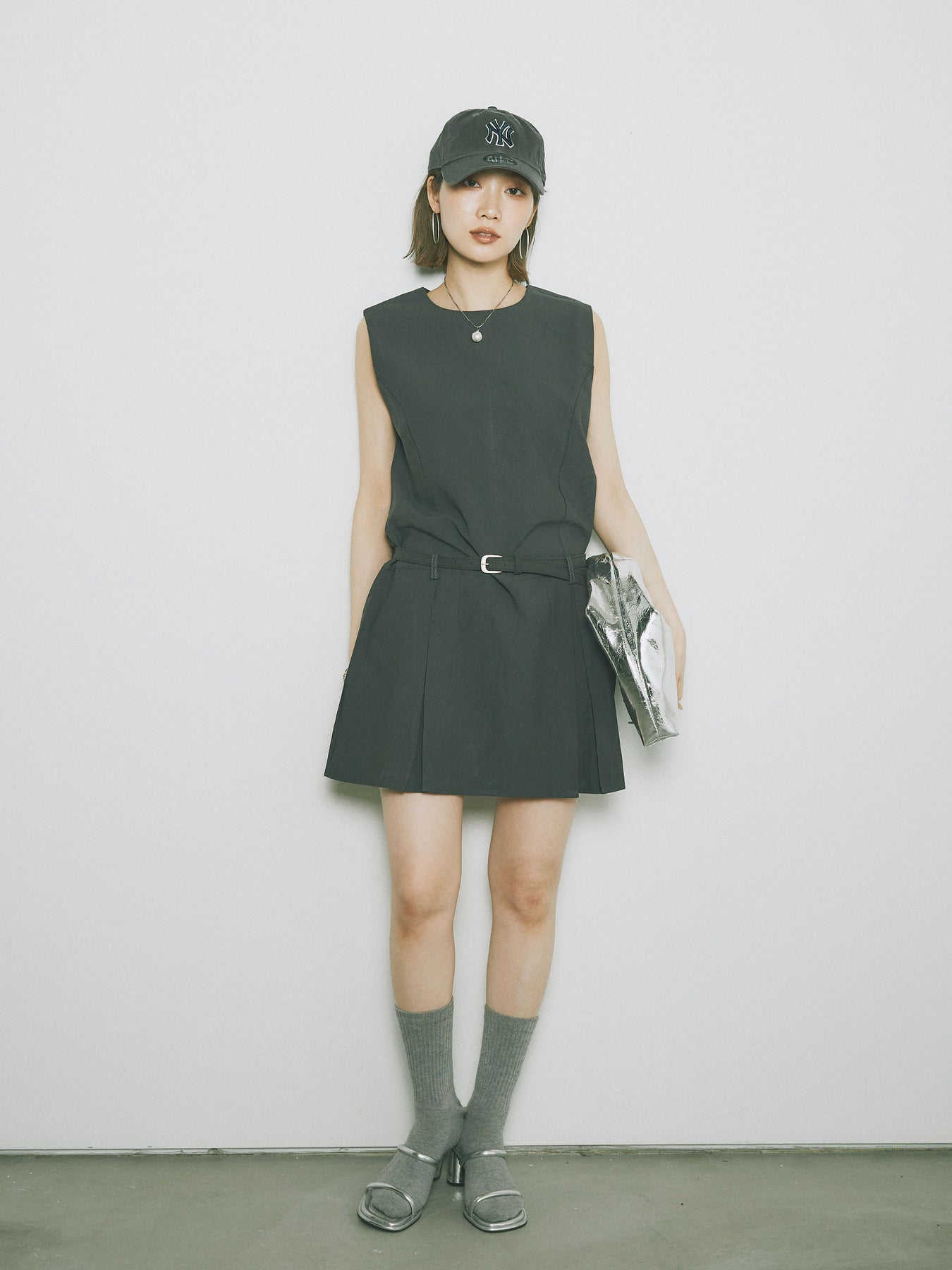 シンプルながらも洗練された印象を与えるタックデザインのコンビネゾン。ウエスト部分のベルトがアクセントとなり、スタイルを引き立てます。フレアシルエットが女性らしさを際立たせ、シンプルでありながらエレガントな印象を与えます。カジュアルからドレッシーまで、幅広いシーンで活躍するアイテムです。 ※ボトムス、キャミソール(インナー)以外の商品は一律でインナーは付属していません。