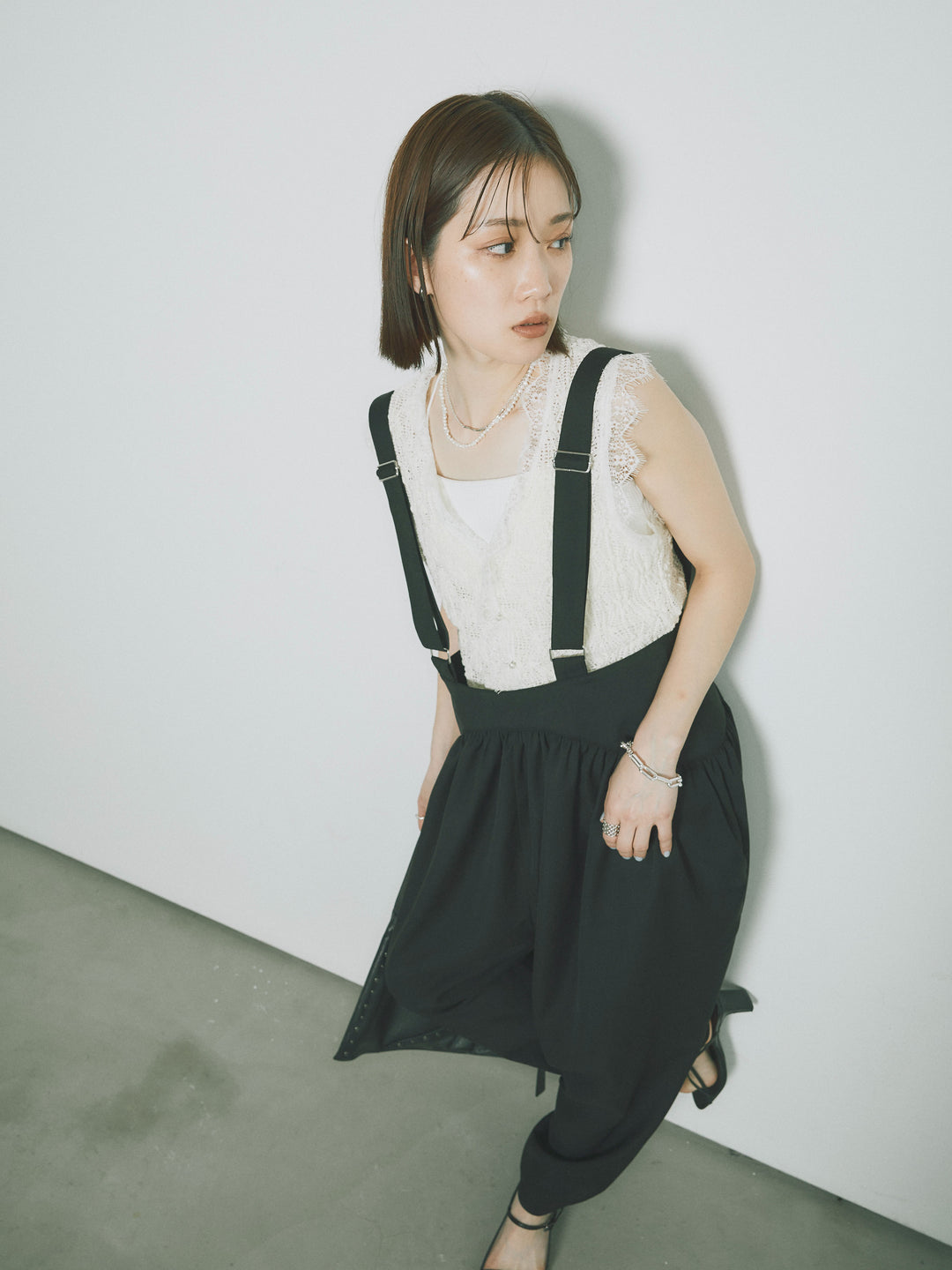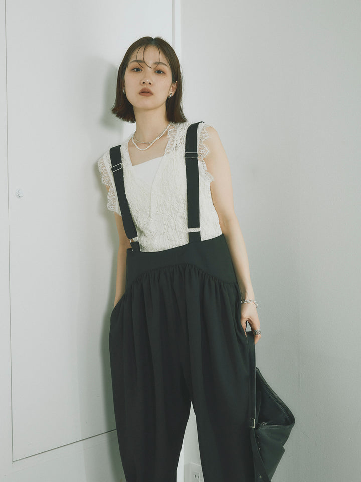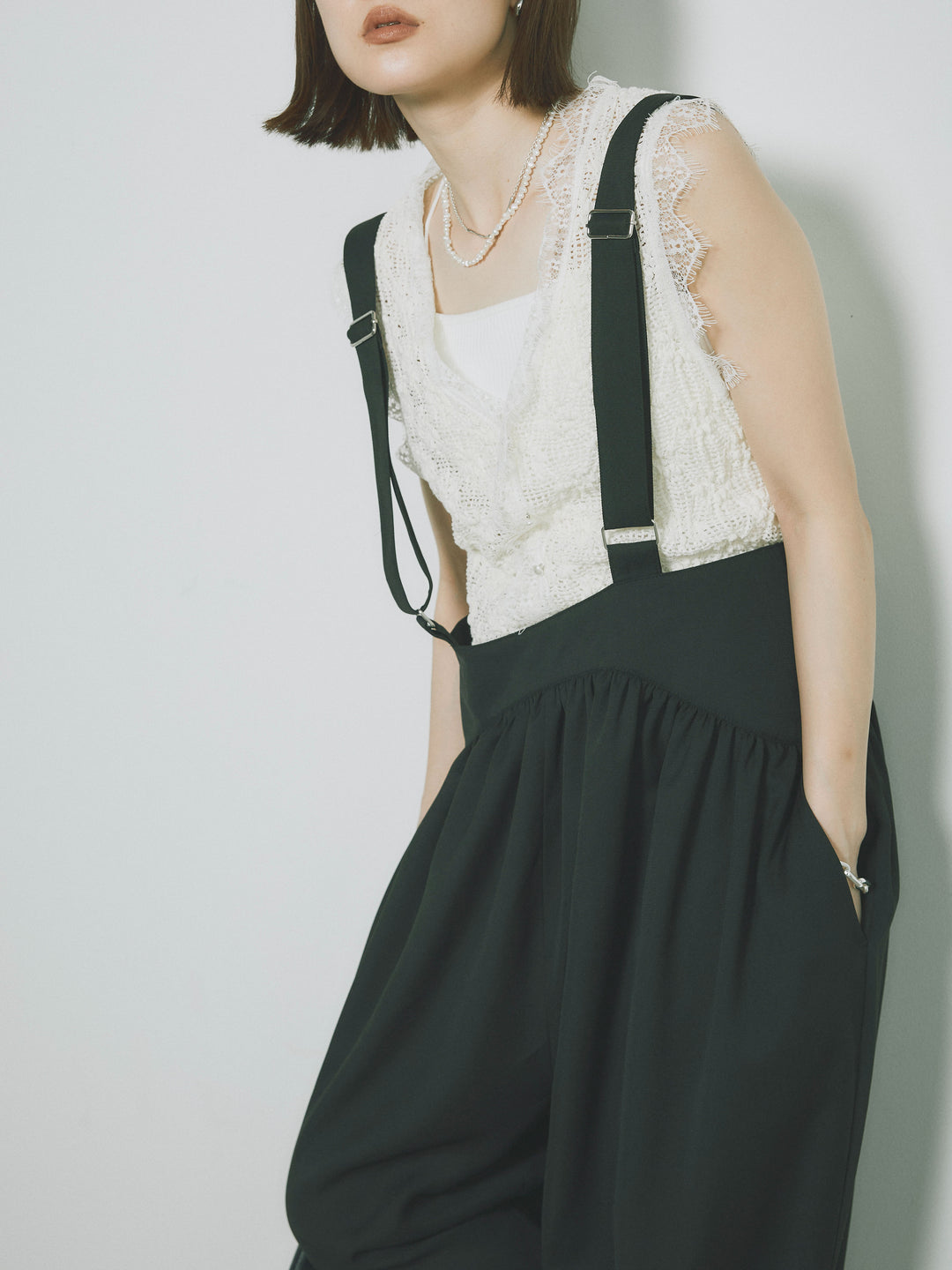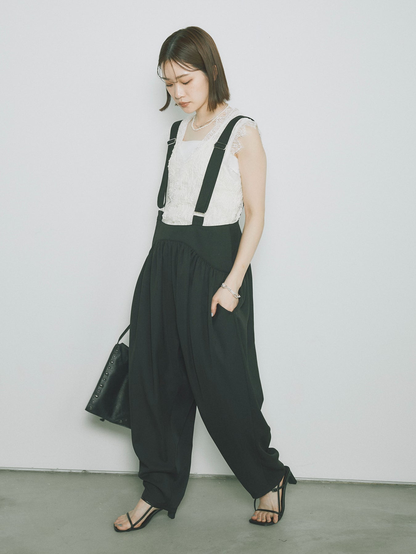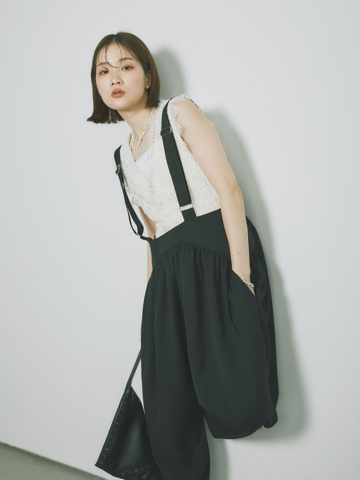 [SET]レース切替テープヤーンノースリーブトップス+サスペンダーバルーンパンツ(2set)