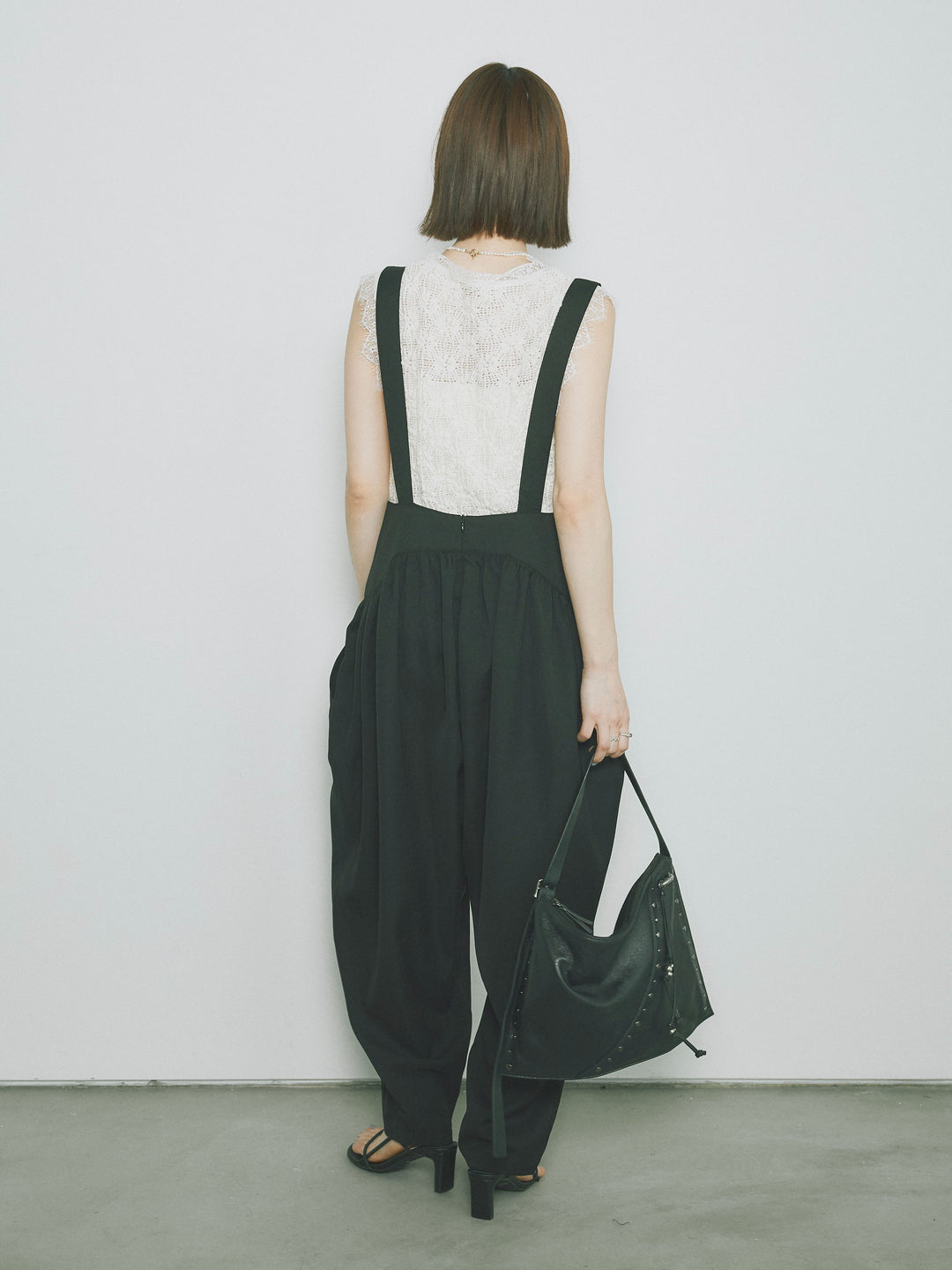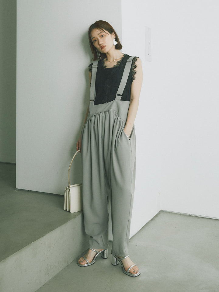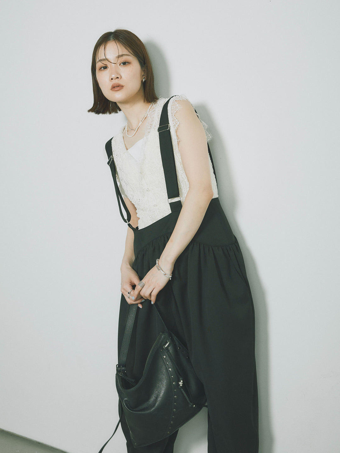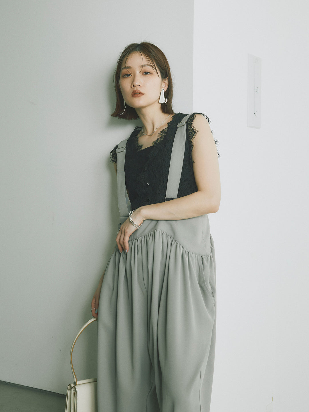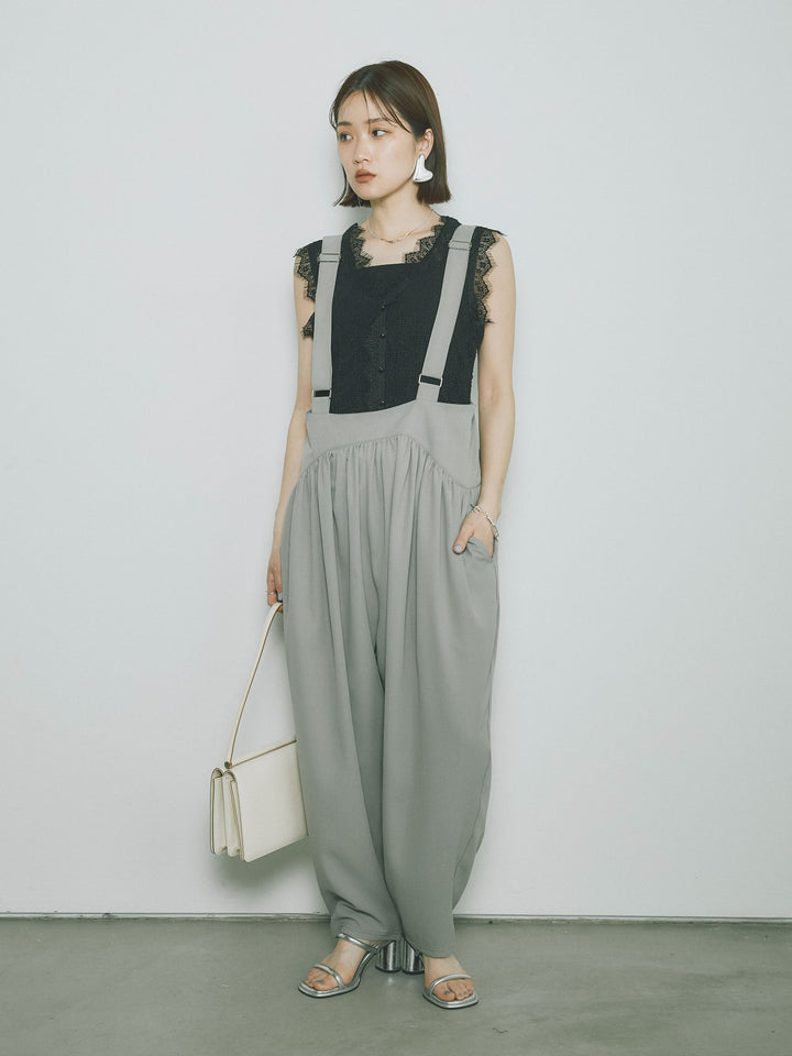 [SET]レース切替テープヤーンノースリーブトップス+サスペンダーバルーンパンツ(2set)