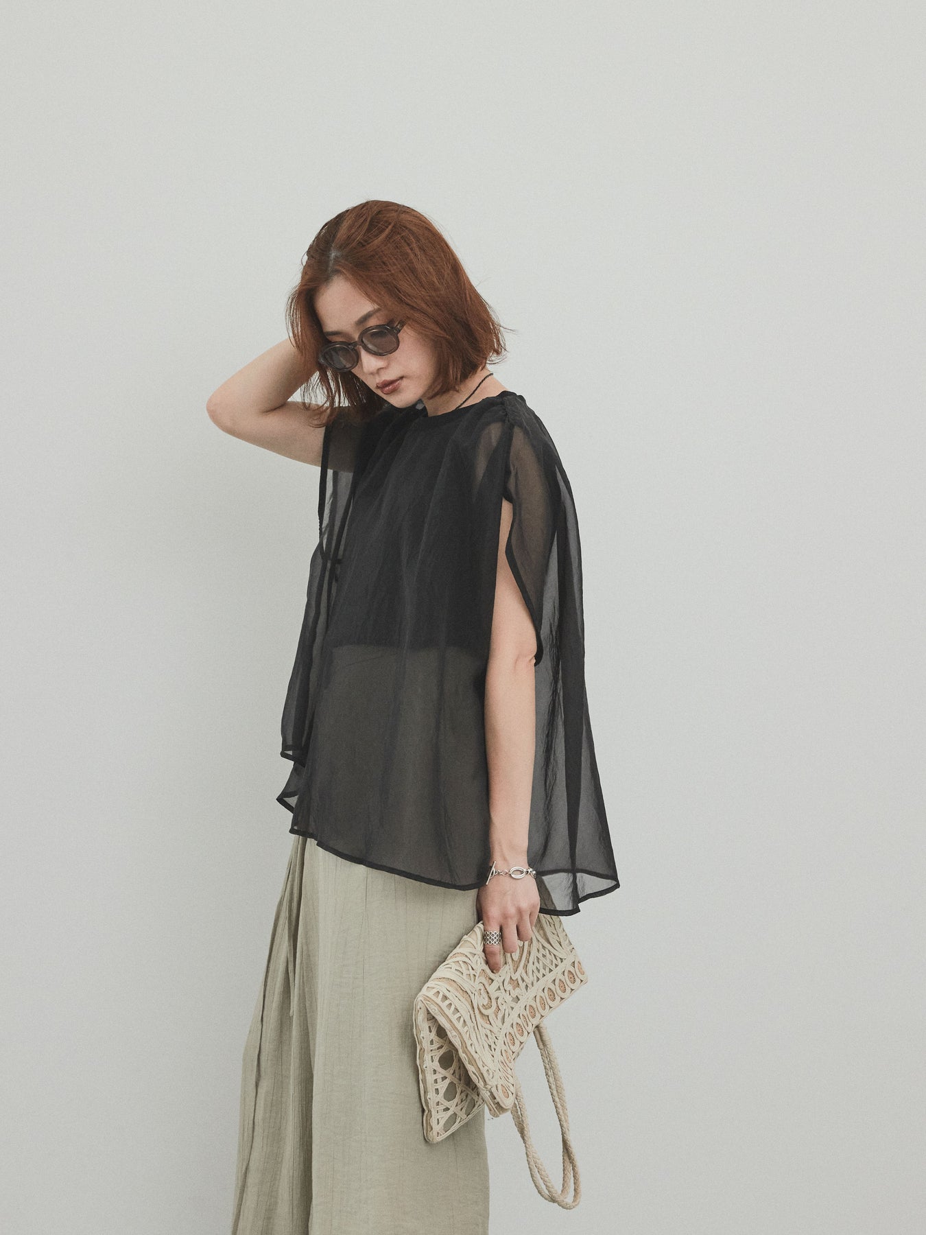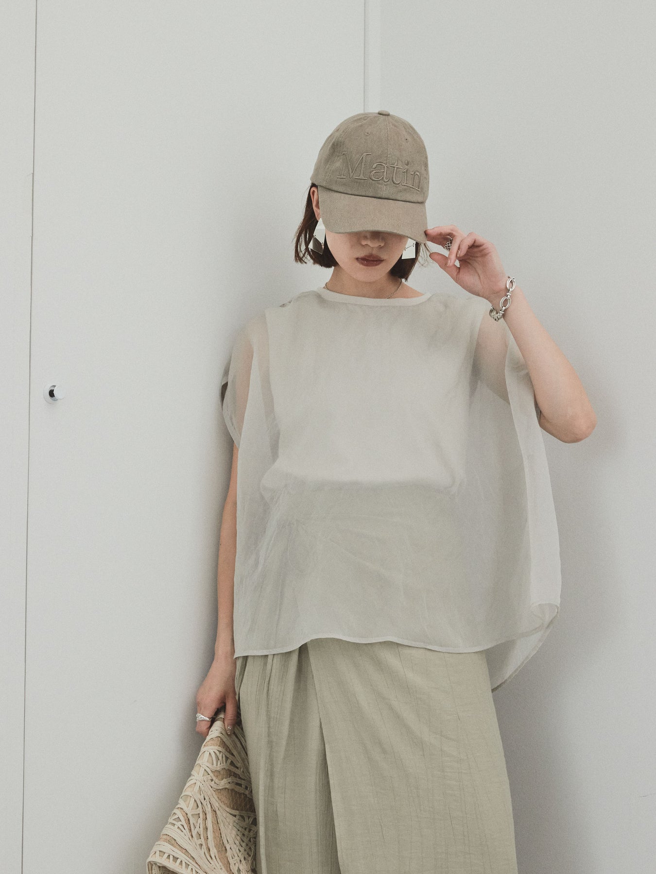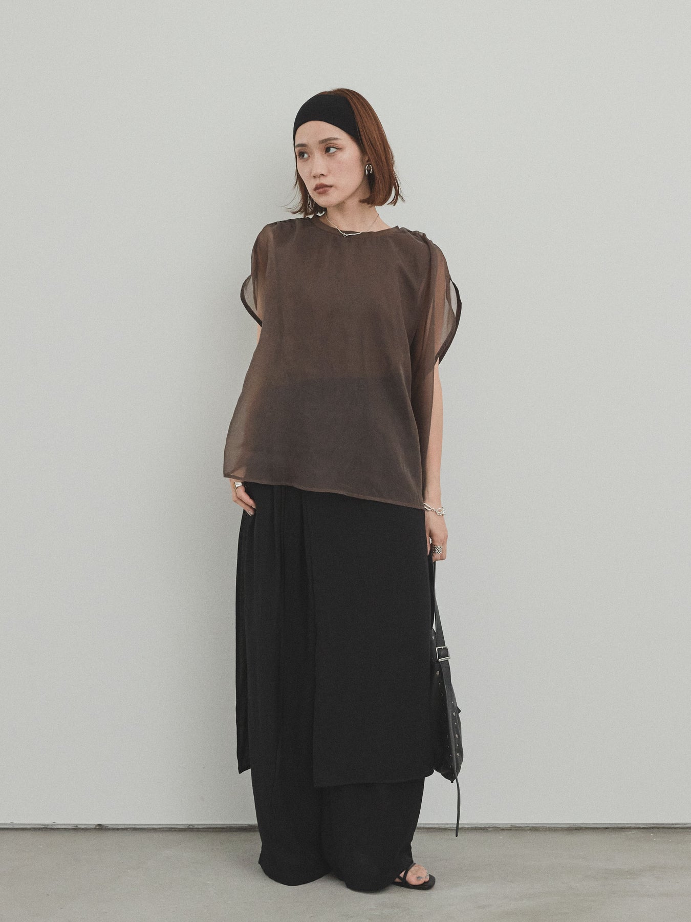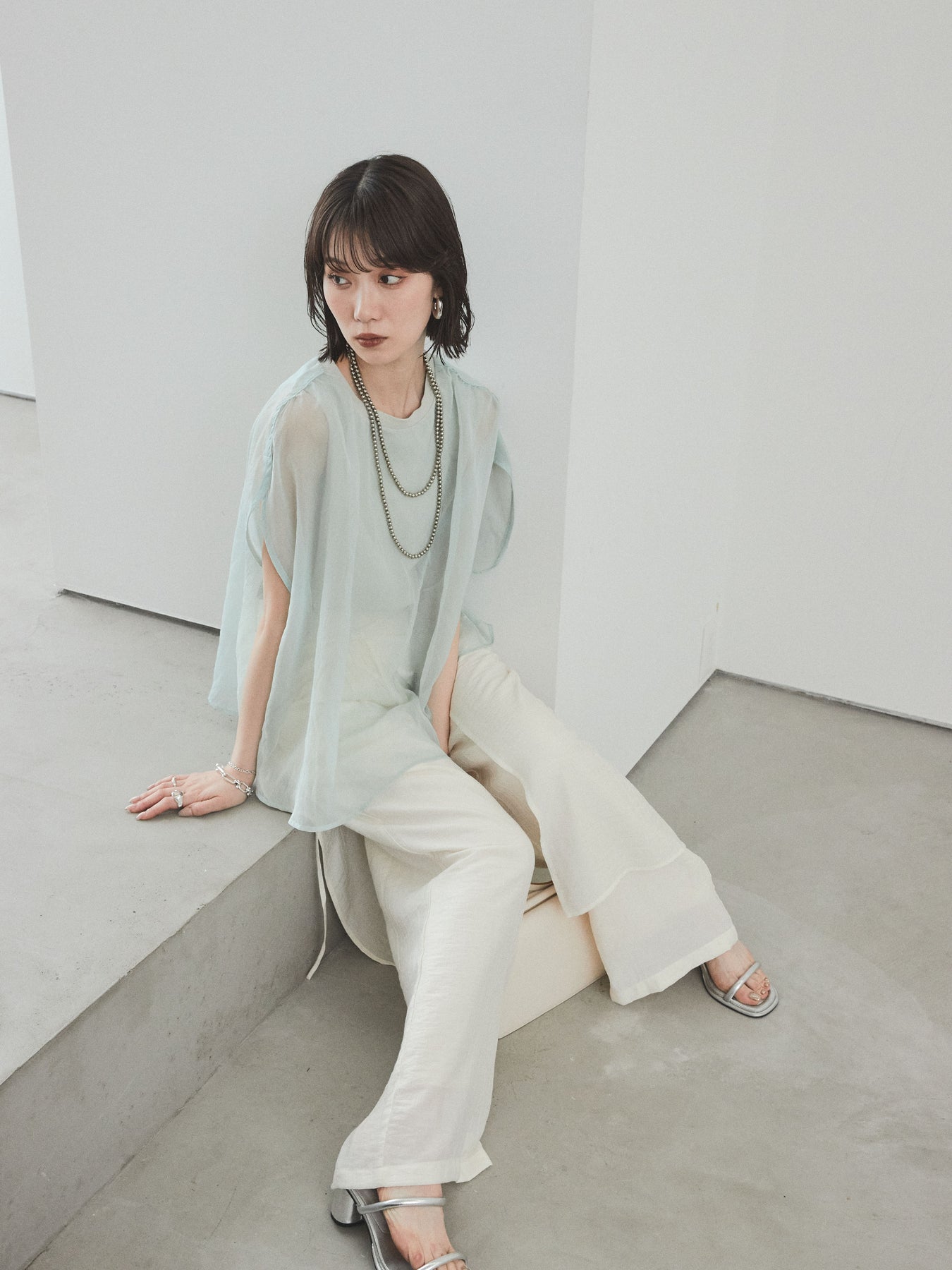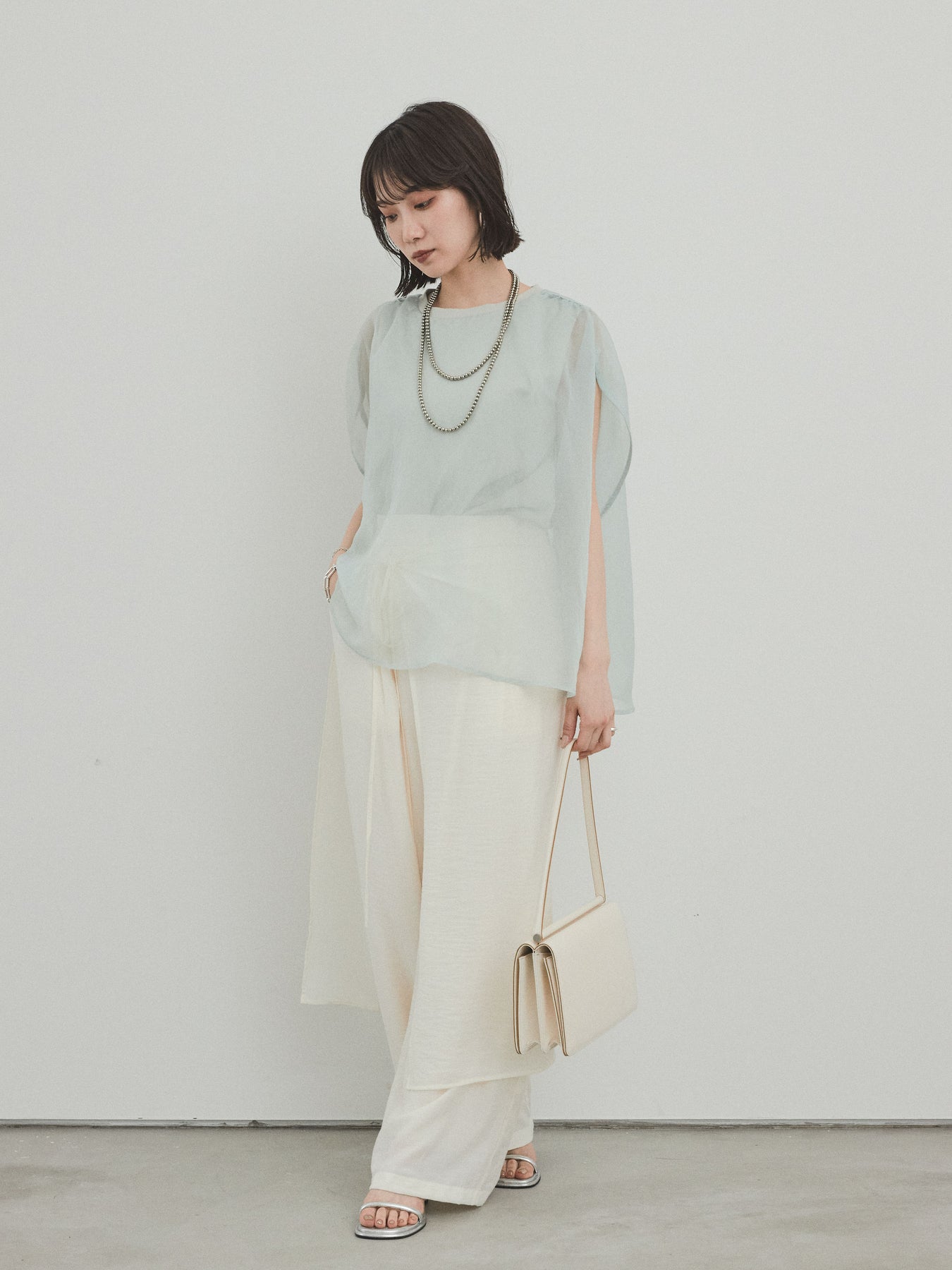 さらっとした肌触りのコンパクトスムース素材に、シアー感のある生地を重ねたレイヤードトップス。透け感のある軽やかな素材が女性らしい抜け感を演出し、インナーとの組み合わせで表情の変化も楽しめます。ややルーズなシルエットでリラクシーな着心地ながら、きちんと感もある上品な仕上がり。パンツやスカートはもちろん、ジャンスカやキャミワンピのインナーとしてもおすすめです。シーズンレスに活躍する、着回し力抜群の一着。 ※ボトムス、キャミソール(インナー)以外の商品は一律でインナーは付属していません。