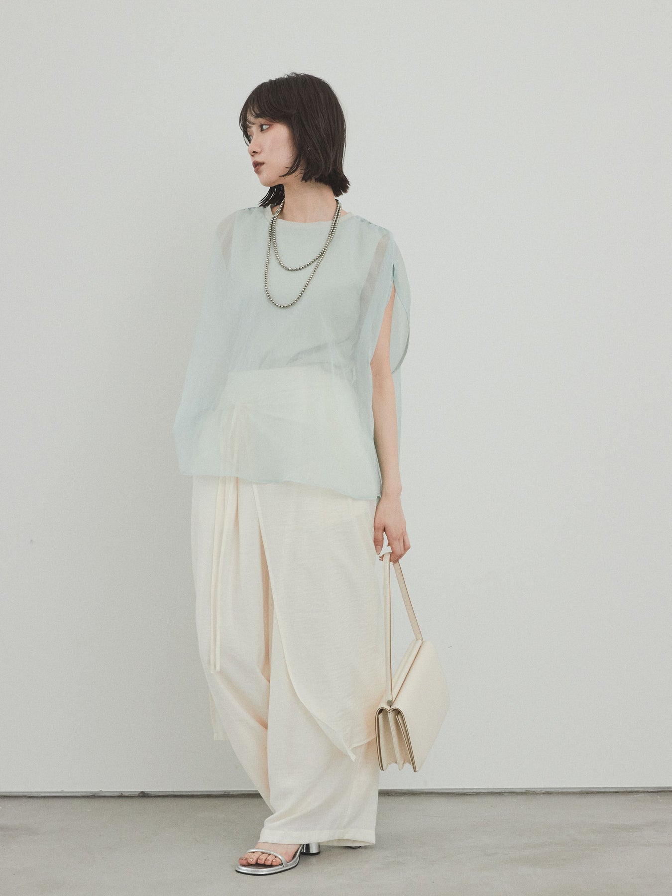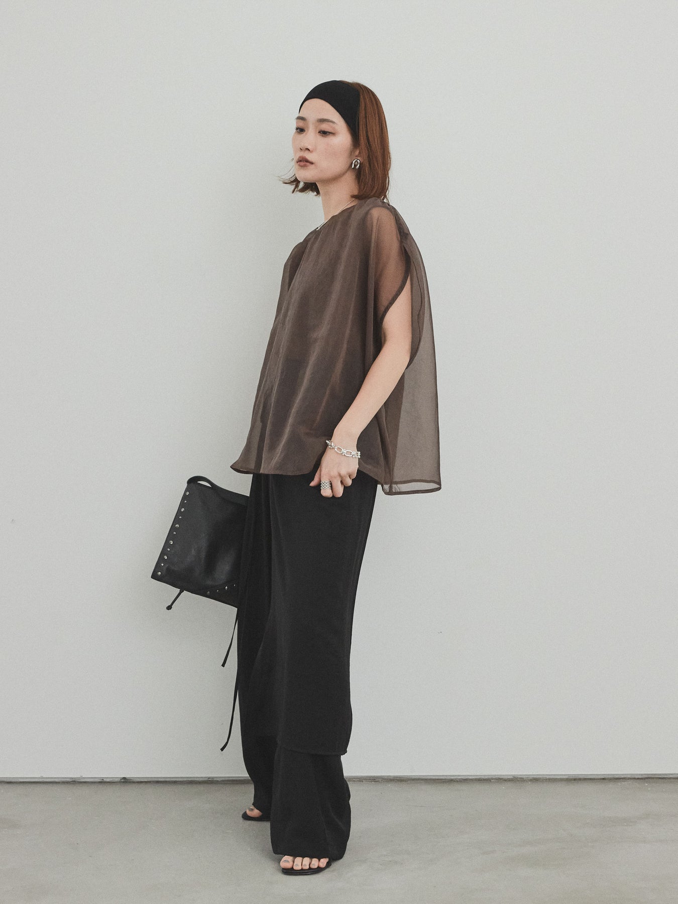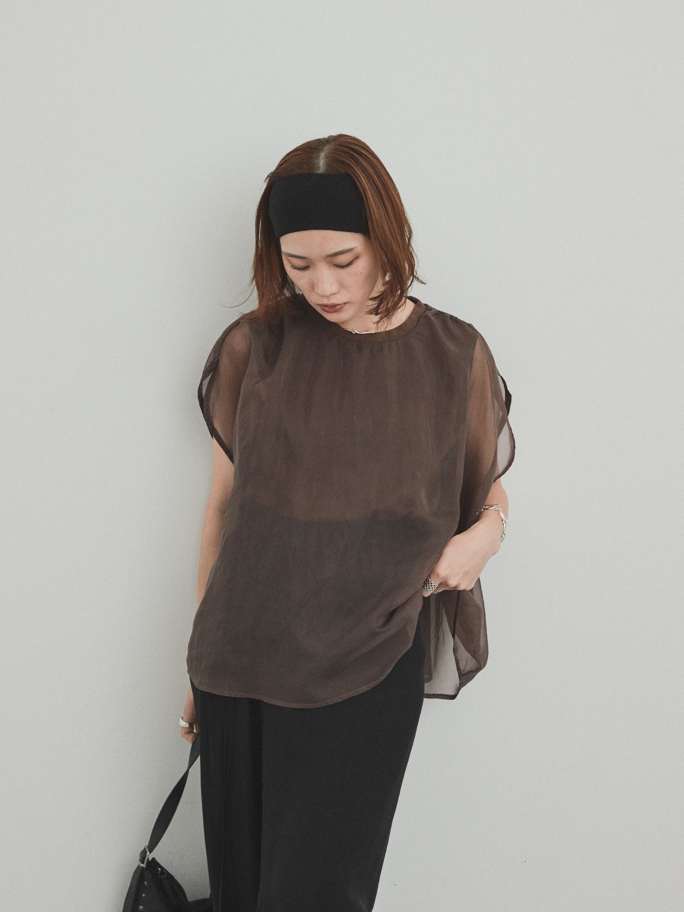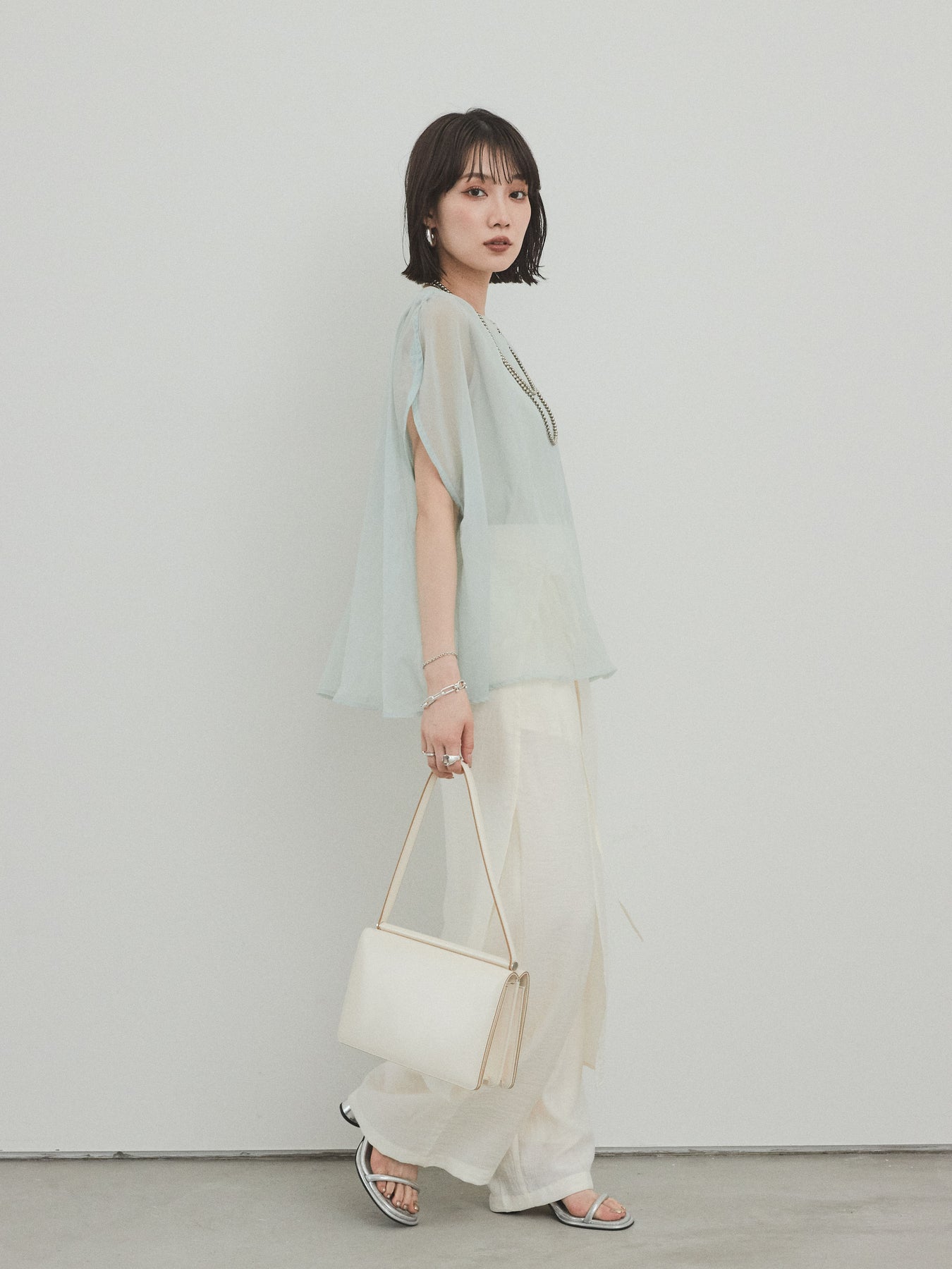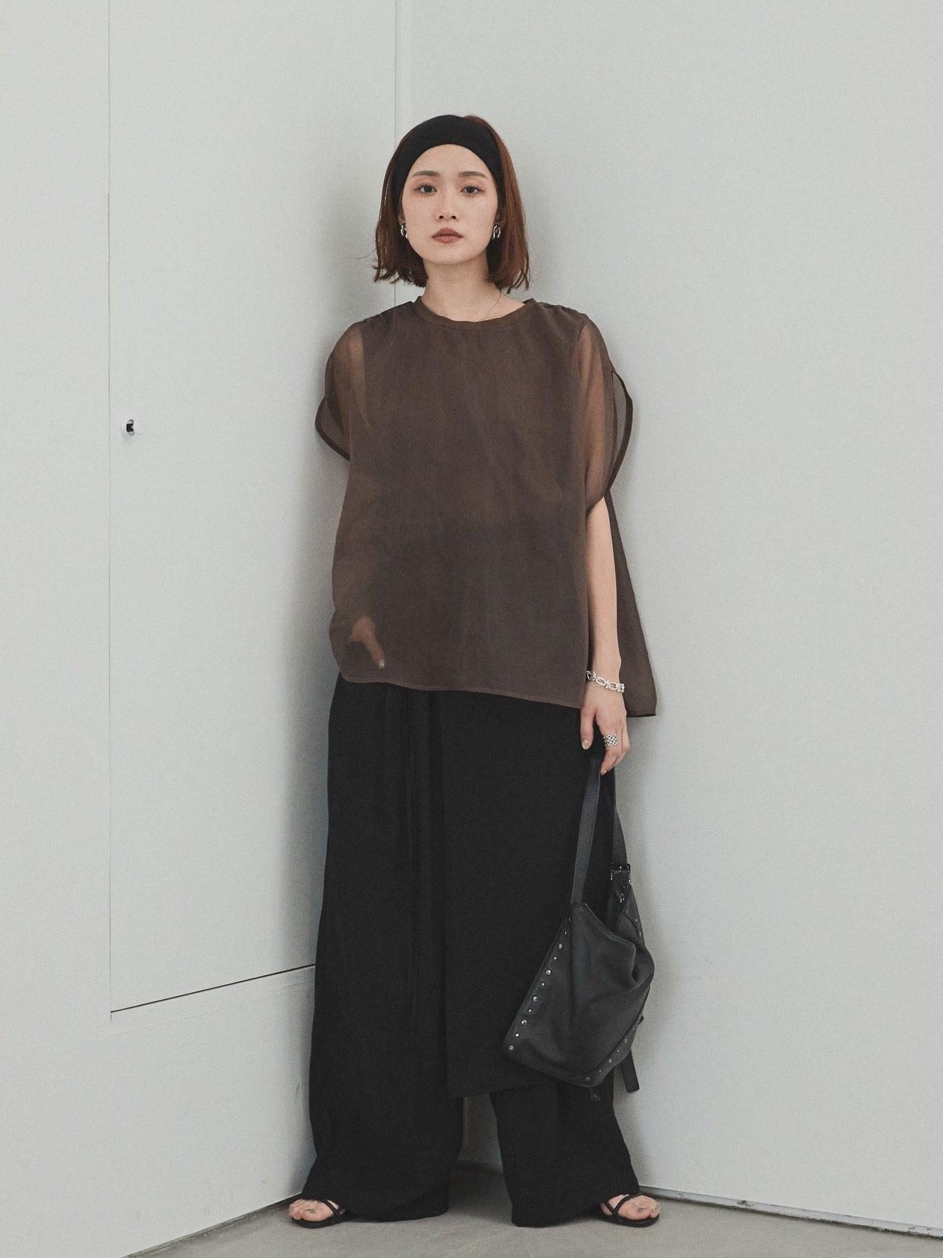 さらっとした肌触りのコンパクトスムース素材に、シアー感のある生地を重ねたレイヤードトップス。透け感のある軽やかな素材が女性らしい抜け感を演出し、インナーとの組み合わせで表情の変化も楽しめます。ややルーズなシルエットでリラクシーな着心地ながら、きちんと感もある上品な仕上がり。パンツやスカートはもちろん、ジャンスカやキャミワンピのインナーとしてもおすすめです。シーズンレスに活躍する、着回し力抜群の一着。 ※ボトムス、キャミソール(インナー)以外の商品は一律でインナーは付属していません。