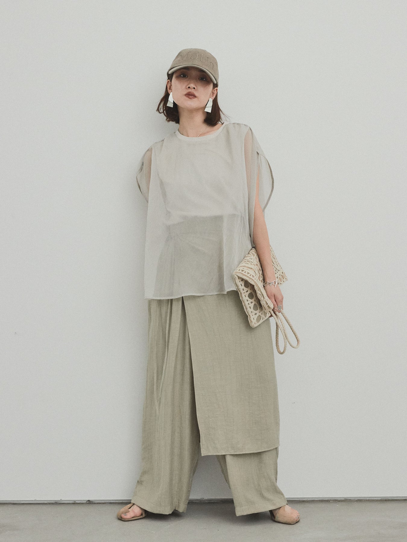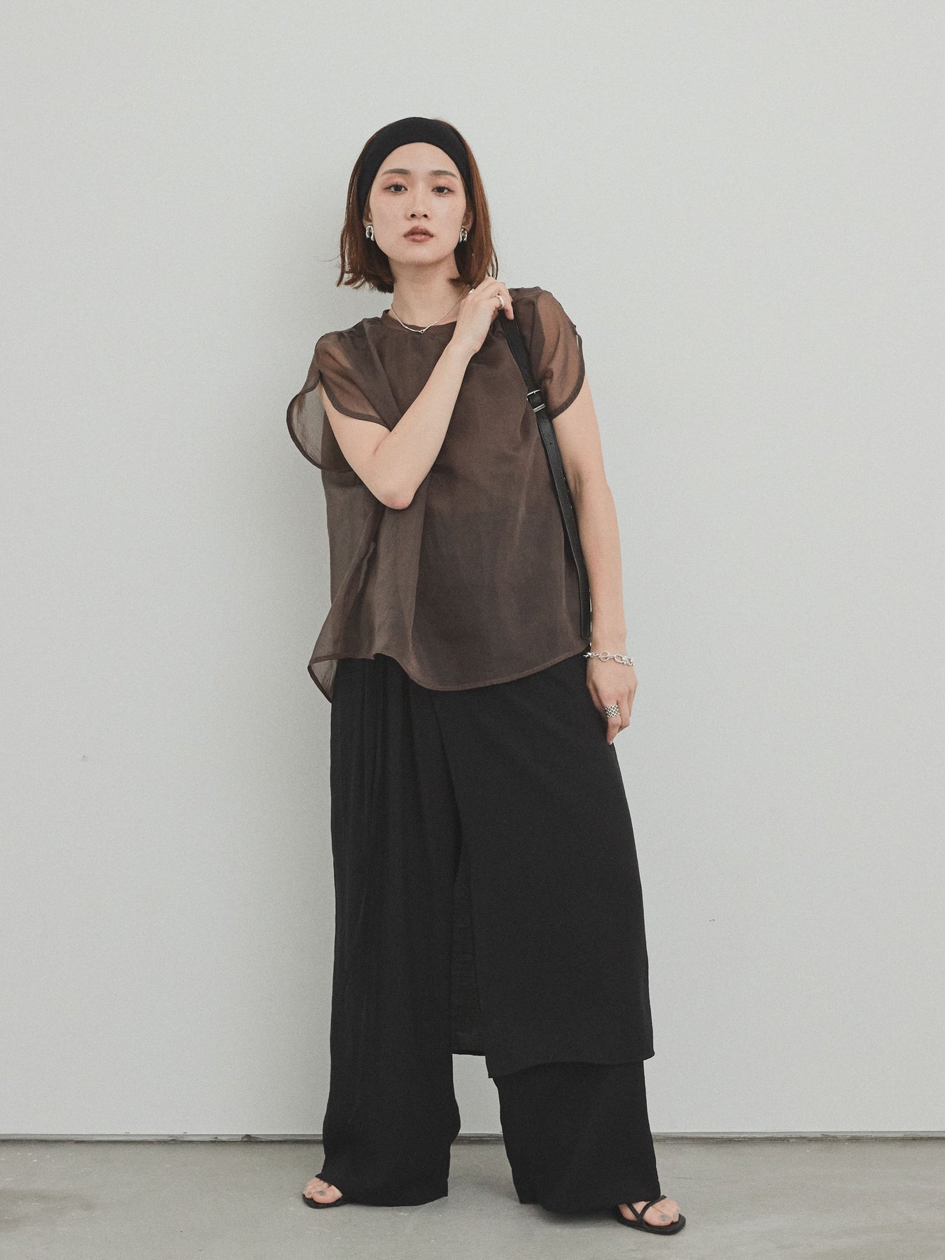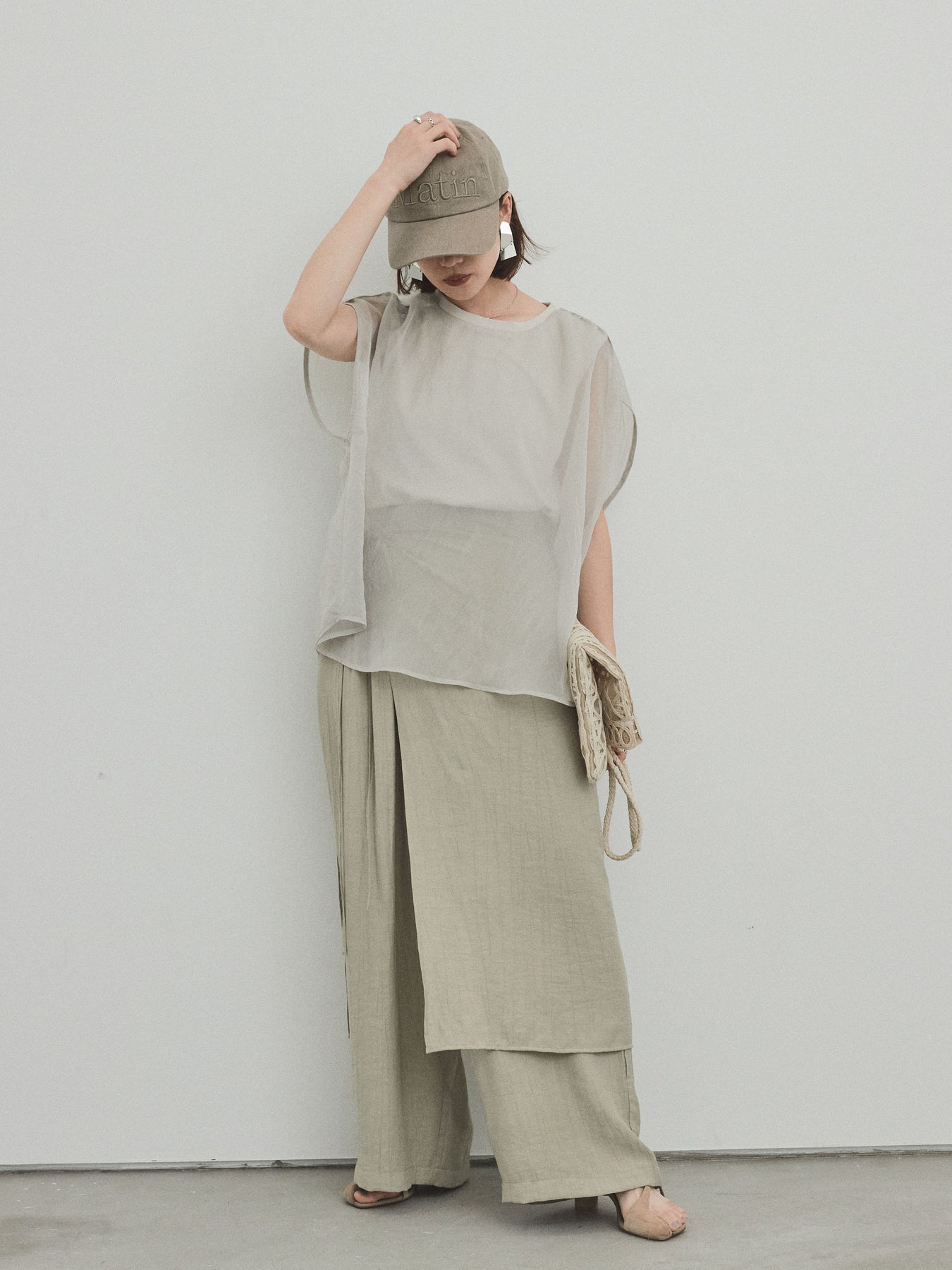 [SET]コンパクトスムースシアーレイヤードトップス+ワッシャーサテンレイヤードスカートパンツ(2set)
